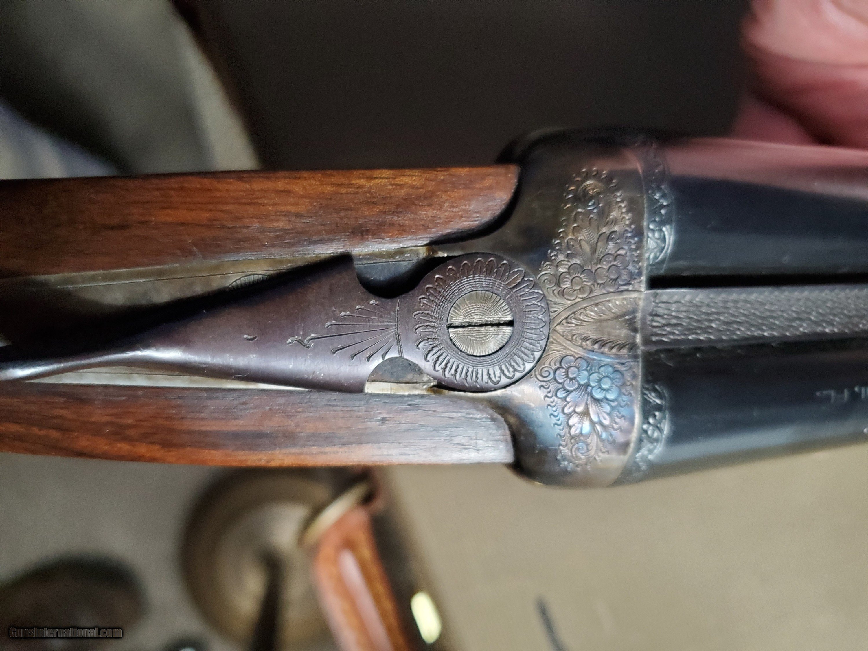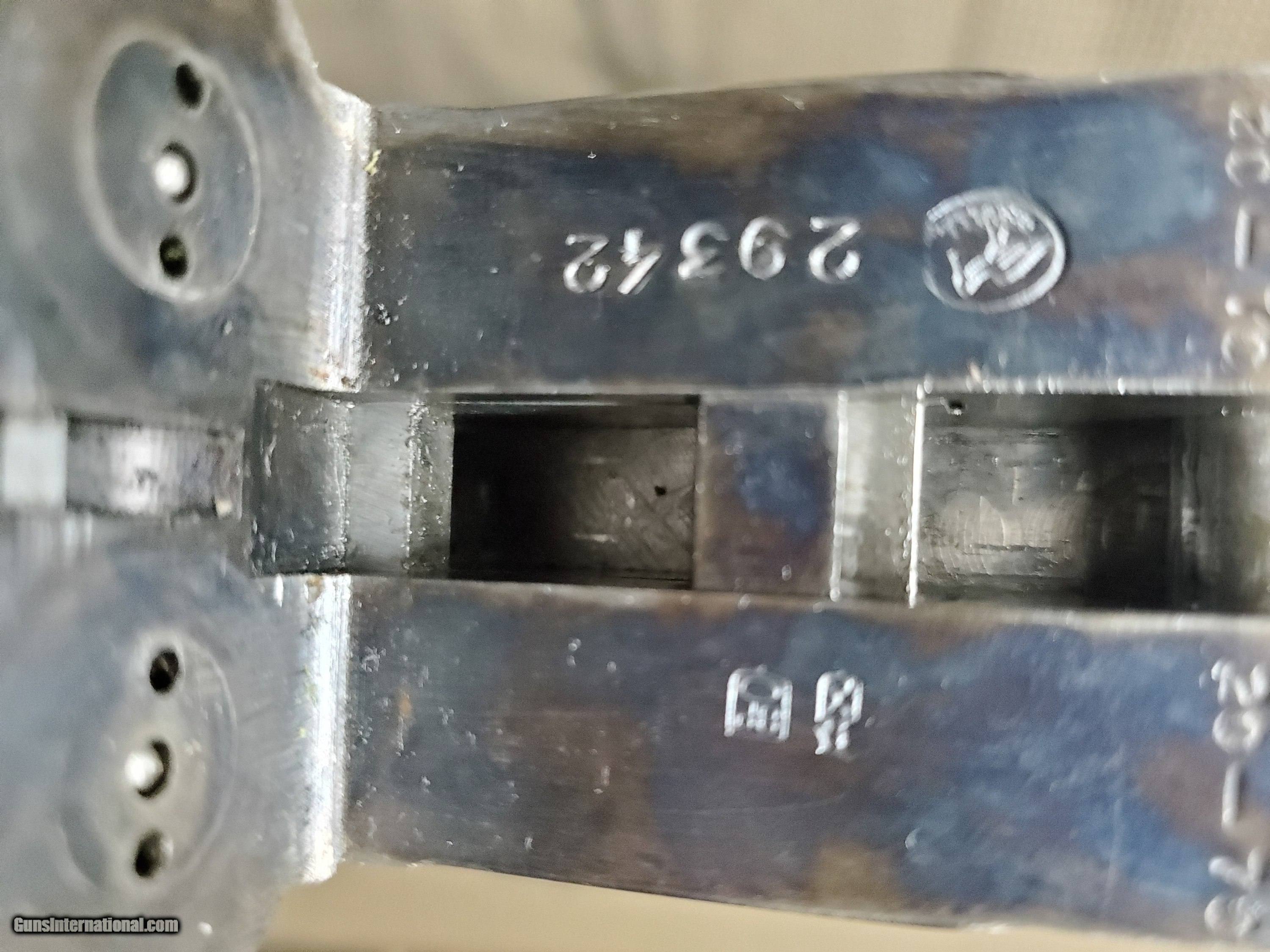 Description: Grulla 20 gauge sxs shotgun with 26 inch ic/im barrels. It has beautifully engraved case color receiver with 100 % floral coverage and is a true full sidekick. Gun comes with nicely figured English stock featuring checkered butt and splinter forearm. Gun has double triggers, ejectors with purdey third fastener and disced strikers. Great handling gun at 5 3/4 lbs. with stock dimensions are 14 3/8 x 1 1/4 x 2 3/16. $2250 SOLD Manufacturer: Grulla Bore: 20 Chambers: 2 3/4 Ejectors: Yes Condition: Exc Metal Condition: Exc Wood Condition: Exc Bore Condition: 100% Barrel Type: Sxs Action: Sle Triggers: Double Gauge Info: 20 Stock: English Stock Dimensions: 14 3/8 x 1 1/4 x 2 3/16 Rib: Swamp Finish: Oil Weight: 5 3/4 Choke Left: Im Choke Right: Ic Engraving: Floral 100% coverage Item Location: North Carolina |