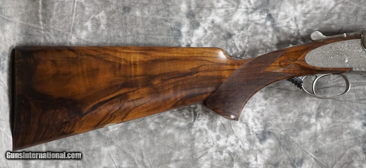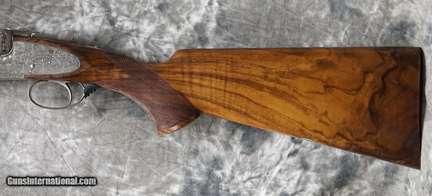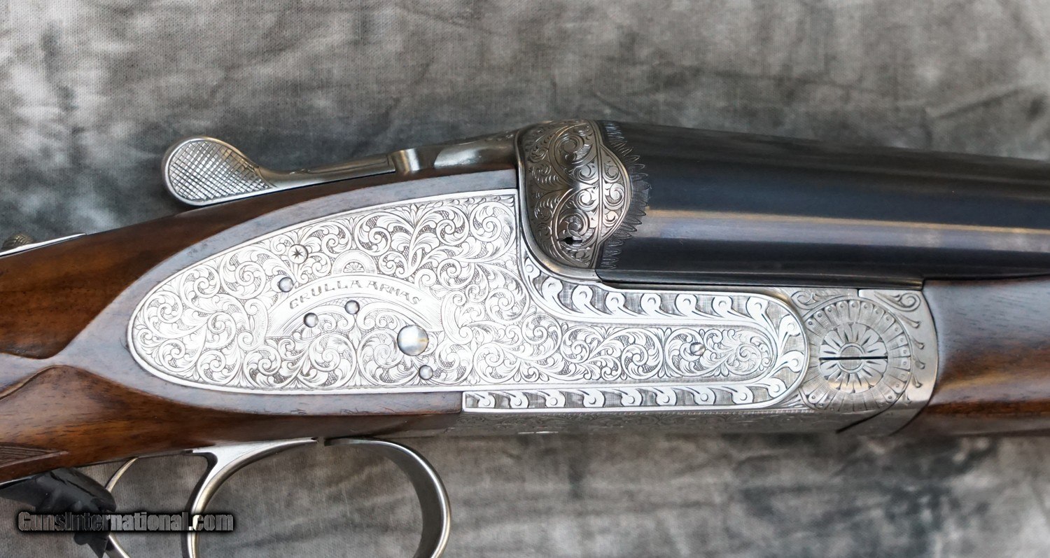 Description: Pre-Owned Grulla 209 Holland 12GA with 30" fixed choke (IC/M) barrels, hand-filed solid rib, chrome lined steel proofed barrels. Coin finished 5-pin Holland Style side-lock action with fully hand engraved Holland style scrolls, side-clips with single non-selective trigger. Factory pistol grip stock to checkered butt and full beavertail forearm. Minor handling marks, minor signs of use, overall outstanding condition. Includes factory case, chokes and tools. SOLD Shotgun Gauge: 12 Gauge |