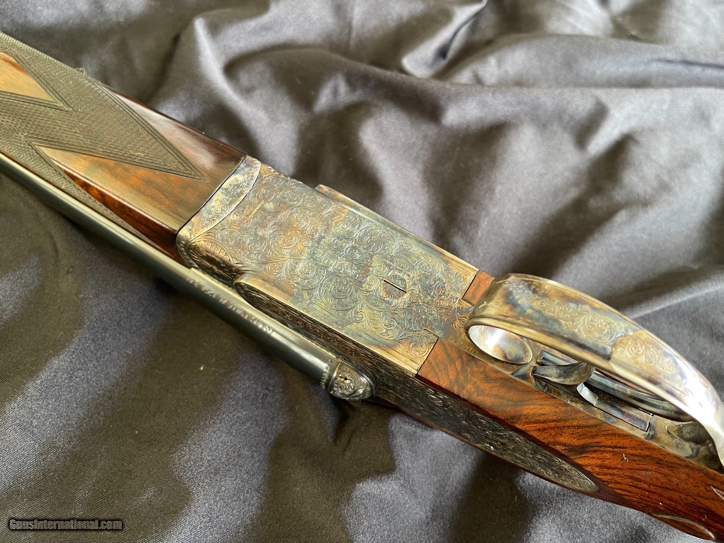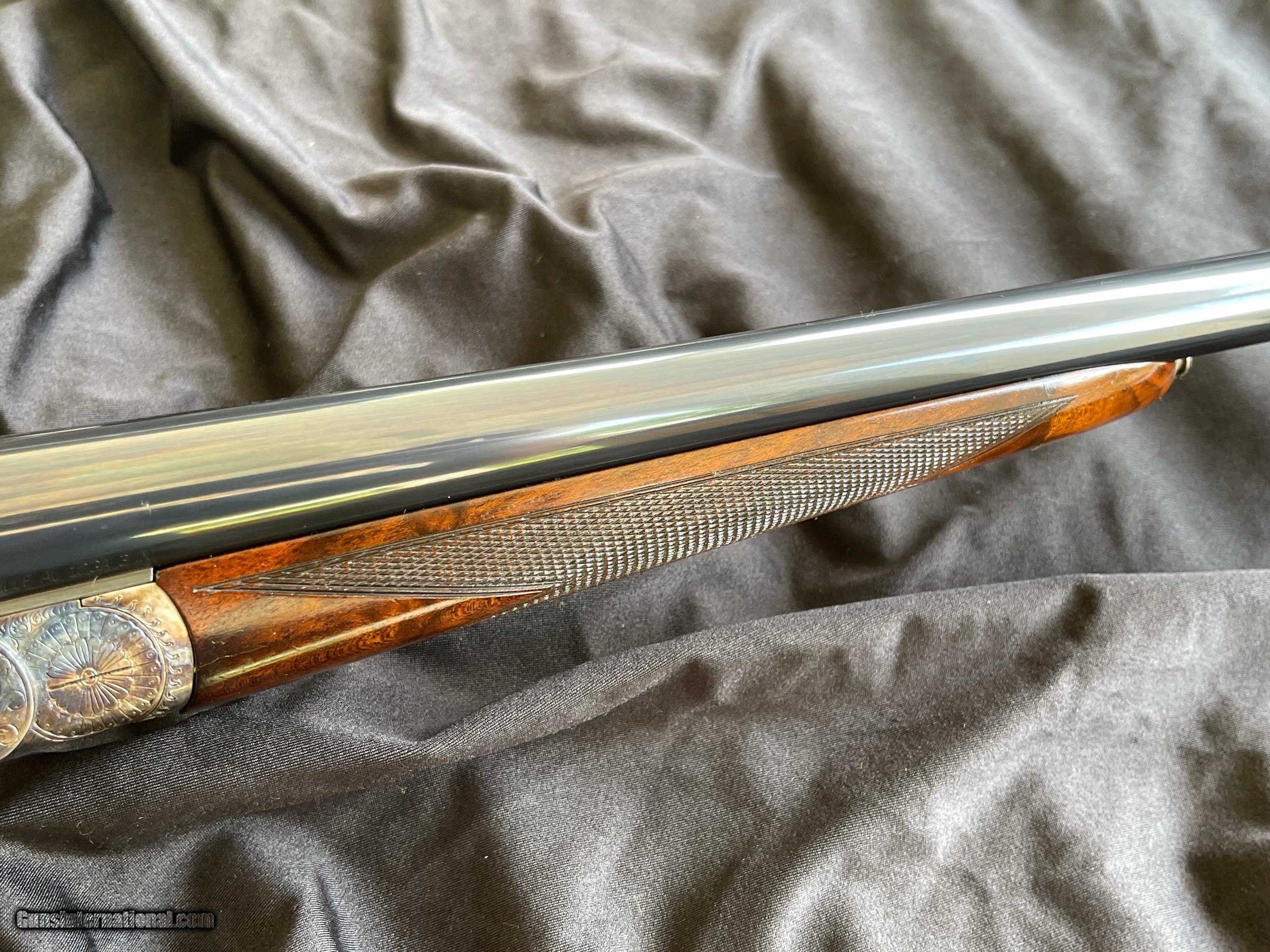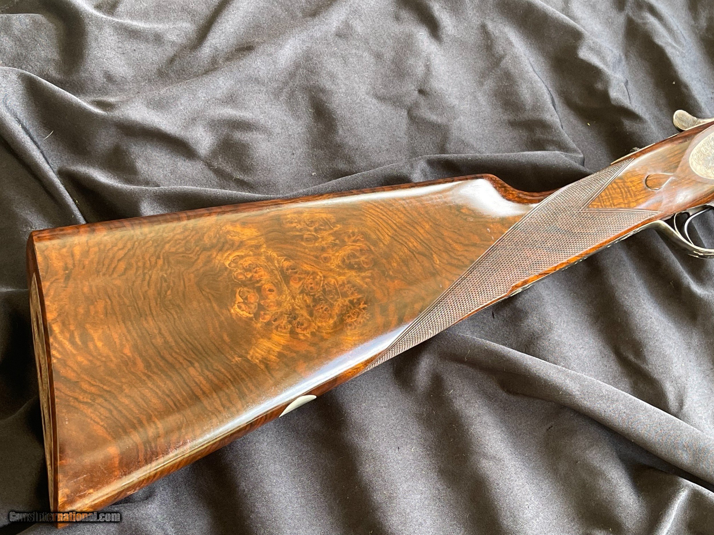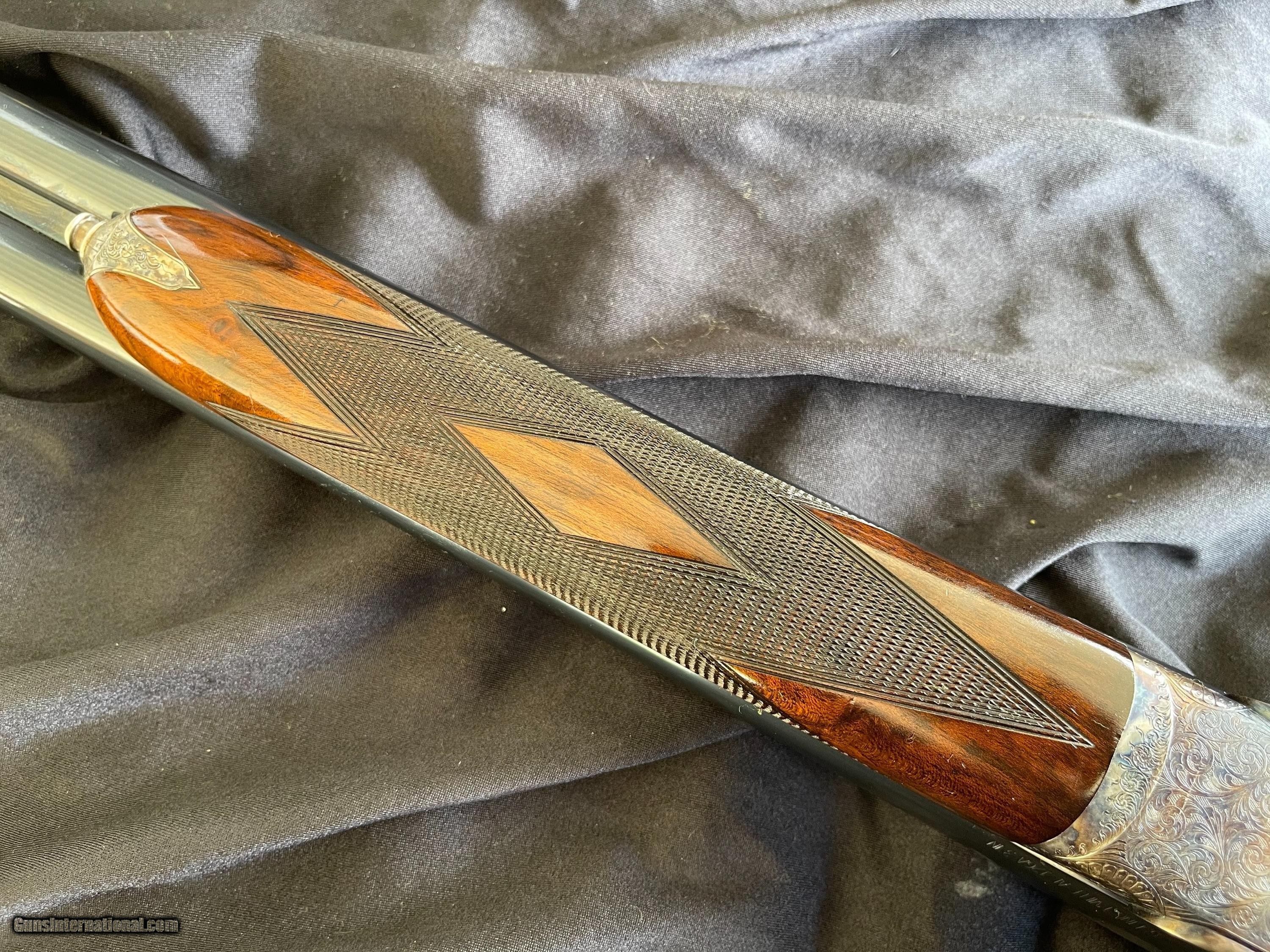 Description: For sale is a super nice Grulla 209H. This sleek 12-bore features a Holland & Holland style sidelock ejector action that's well shaped with beaded fences and is adorned with bold, full-coverage, H&H-inspired hand-cut engraving (hence the "H" in 209H). Other notable features include disc set strikers, cocking indicators, and a rolled trigger guard. The 28" barrels are beautifully struck and are choked IC/MOD. They're topped with a classic concave rib and are balanced by a highly figured walnut stock (upgraded from standard grade walnut). The stock is classically configured: straight grip, splinter forend, fine hand-cut checkering, diamond grip, drop points, and a skip-line checkered butt. This shotgun is in great condition. The barrel bluing remains bright and brillant with minimal handling marks and wear. The same can be said for the color casing. The bores are clean, and barrel walls are free from dents. The stock has sharp checkering and edges, intact original hand-rubbed oil finish, and is sound with no cracks. The only negative are some blemishes in the oil finish that appear to be from some bubble wrap. This could be easily touched up (one of the great benefits to an oil finish) or it can be left as it. As you would expect, the gun functions perfectly and is ready to provide a lifetime of reliable use to it new owner. The lock up is solid, the trigger pulls are nice and crisp, and ejector are strong and in time. Grulla was established in 1932 has been in business longer than any other maker in Spain. They are one of Spain's (and Europe's) top gun makers. Their customers include the King of Spain and the Duke of Northumberland who choose Grulla because of the value, quality, and reliability. Maker: Grulla Model: 209H Barrels: 28" Chokes: IC/ MOD Weight: 6lbs 12oz DAC: 1 1/2" DAH: 2 1/4" LOP: 14 7/8" Cast: appears to be neutral $3950 plus shipping your FFL. It will be shipped in the original box! Replacement cost is over $10,000! Thanks for looking! Adam 334.797.2509 coveyrise90gmail SOLD Shotgun Gauge: 12 Gauge |
