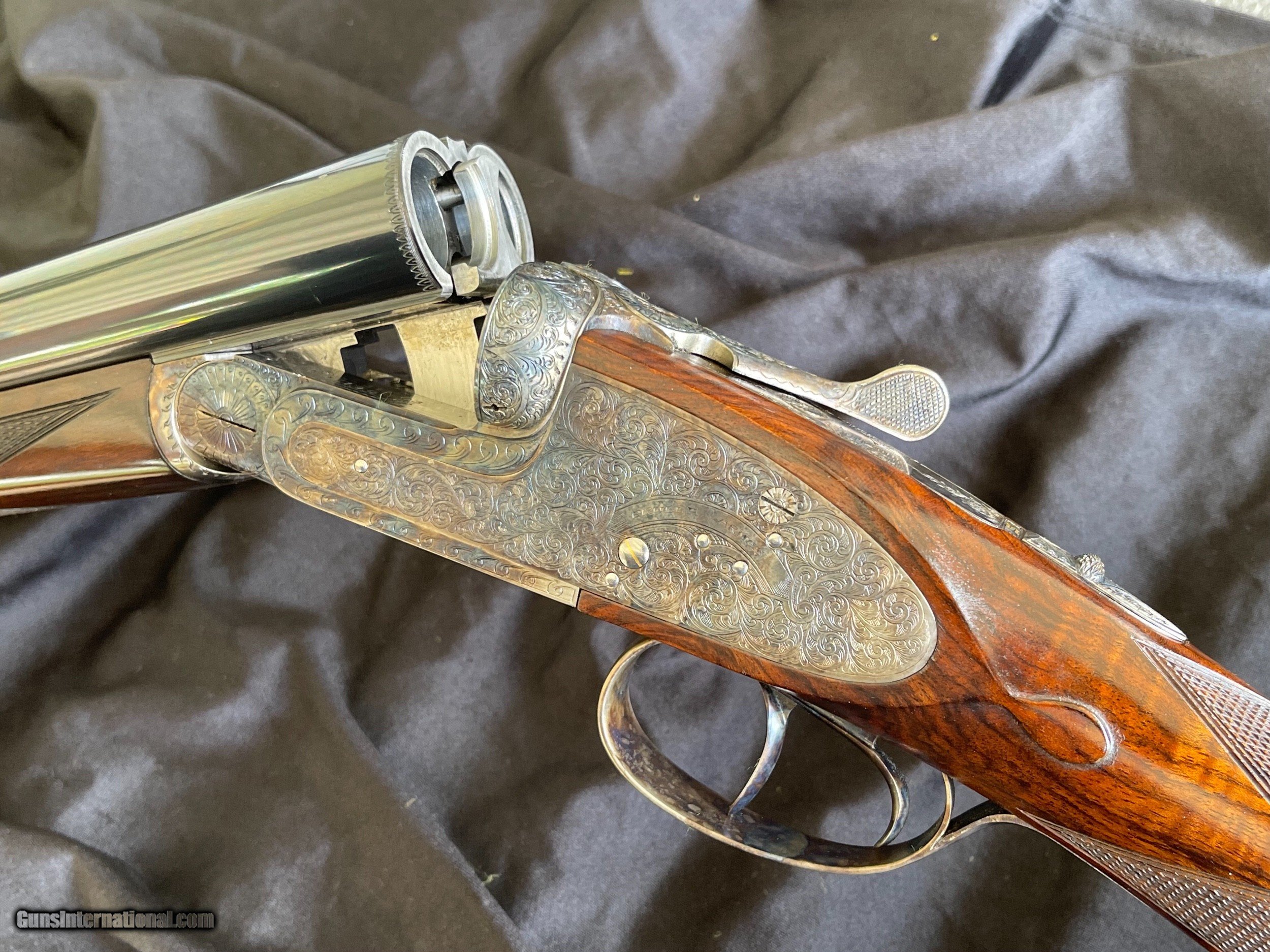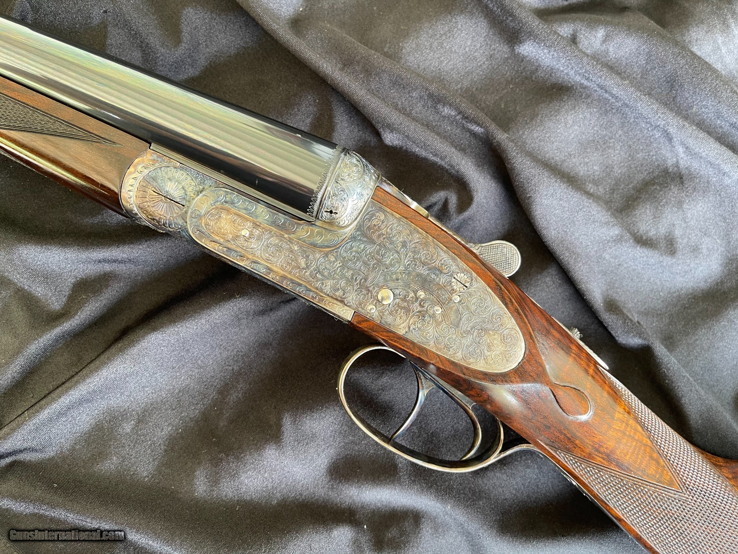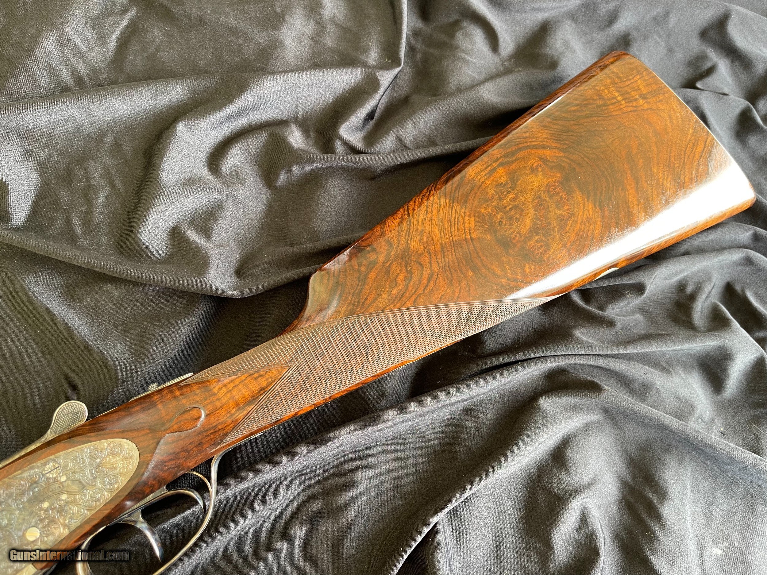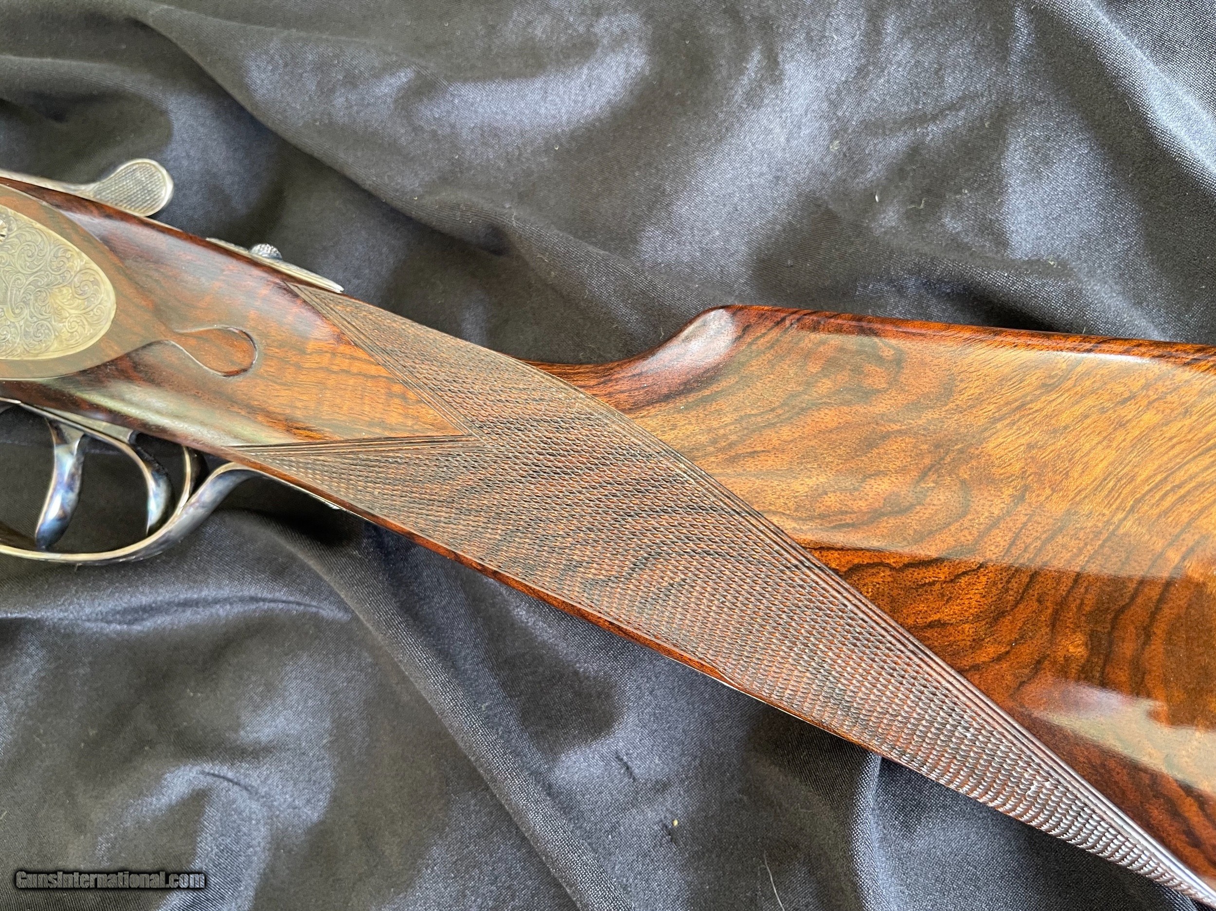 Description: For sale is a super nice Grulla 209H. This sleek 12-bore features a Holland & Holland style sidelock ejector action that's well shaped with beaded fences and is adorned with bold, full-coverage, H&H-inspired hand-cut engraving (hence the "H" in 209H). Other notable features include disc set strikers, cocking indicators, and a rolled trigger guard. The 28" barrels are beautifully struck and are choked IC/MOD. They're topped with a classic concave rib and are balanced by a highly figured walnut stock (upgraded from standard grade walnut). The stock is classically configured: straight grip, splinter forend, fine hand-cut checkering, diamond grip, drop points, and a skip-line checkered butt. This shotgun is in great condition. The barrel bluing remains bright and brillant with minimal handling marks and wear. The same can be said for the color casing. The bores are clean, and barrel walls are free from dents. The stock has sharp checkering and edges, intact original hand-rubbed oil finish, and is sound with no cracks. The only negative are some blemishes in the oil finish that appear to be from some bubble wrap. This could be easily touched up (one of the great benefits to an oil finish) or it can be left as it. As you would expect, the gun functions perfectly and is ready to provide a lifetime of reliable use to it new owner. The lock up is solid, the trigger pulls are nice and crisp, and ejector are strong and in time. Grulla was established in 1932 has been in business longer than any other maker in Spain. They are one of Spain's (and Europe's) top gun makers. Their customers include the King of Spain and the Duke of Northumberland who choose Grulla because of the value, quality, and reliability. Maker: Grulla Model: 209H Barrels: 28" Chokes: IC/ MOD Weight: 6lbs 12oz DAC: 1 1/2" DAH: 2 1/4" LOP: 14 7/8" Cast: appears to be neutral $3950 plus shipping your FFL. It will be shipped in the original box! Replacement cost is over $10,000! Thanks for looking! Adam 334.797.2509 coveyrise90gmail SOLD Shotgun Gauge: 12 Gauge |