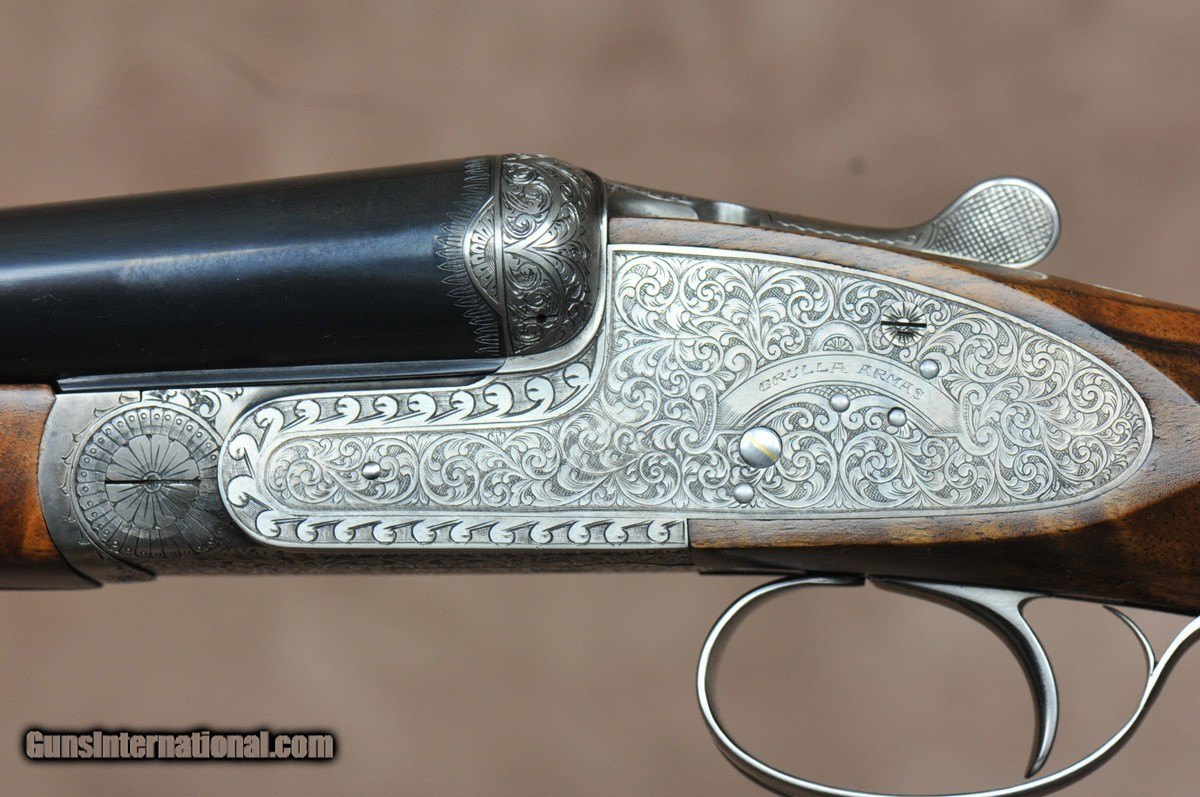 Description: Pre owned in Like New condition, Grulla 209H Sporting Side by Side. Features single trigger with elegant engraving, fixed choke 30" barrel (.012/.022).Flat filed, concaved rib. Highly figured sporting stock with long tang and beaver tail fore arm.Stock dimensions are: 1 1/2" x 2 1/4". LOP 14 3/4". Set includes factory presentation case. Contact our Michigan location at 248-960-7262 for additional information. Refer to (c14) NOT ELIGIBLE FOR TRADES, CONSIGNMENT ITEM SOLD |
