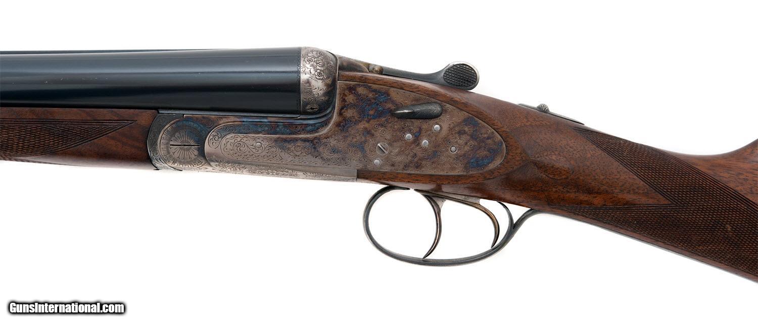Description: Grulla - 215 F - 12 ga - Item Number: GRU29055 Shotgun type: SxS Action: Sidelock Ejectors: Yes Trigger: Double Grip: Straight Grip Forend: Checkered Lop: 15 1/4 " Pad thickness: 0.75 " Type of butt: Leather Faced Pad Drop comb: 1 1/2 " Drop heel: 2 3/8 " Cast amount: 1/4 " Cast: Off Weight: 7 lbs, oz Manufactured in: Spain Manufacture Year: Finish: Case Colored Overall condition: Very Good Stock condition: Very Good Metal condition: Very Good Stock: Original finish Metal: Original finish Type of Case: none Extra barrels: 0 Barrel info: Gauge: 12 ga Chamber: 2 3/4 " Length: 26 " Chokes: IM/IC Rib type: Concave Comments : Gun is in very good condition with some light handling marks. SG-35 SOLD |