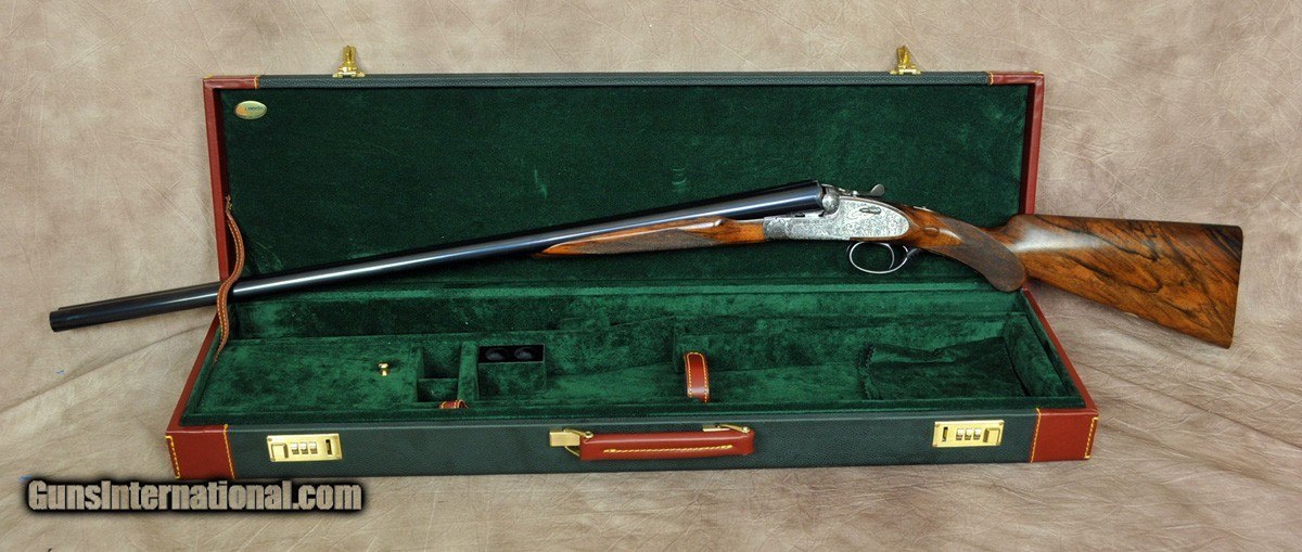 Description: Pre owned in excellent condition Grulla Holland and Holland 215 side lock side by side.Features hand detachable side locks, 30″ fixed choke barrels (IC/Mod). Concaved rib, field stock with Prince of Wales grip and beaver tail fore arm. Factory case included. SOLD |