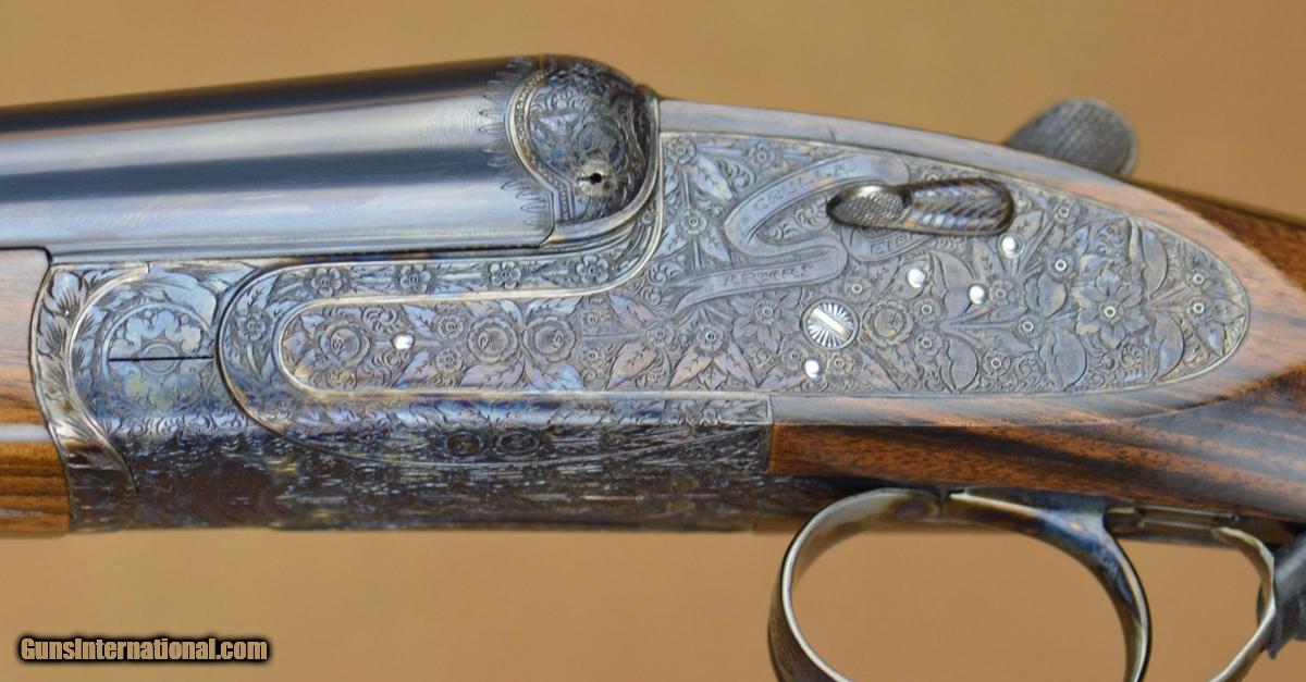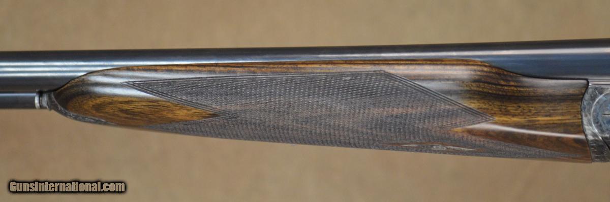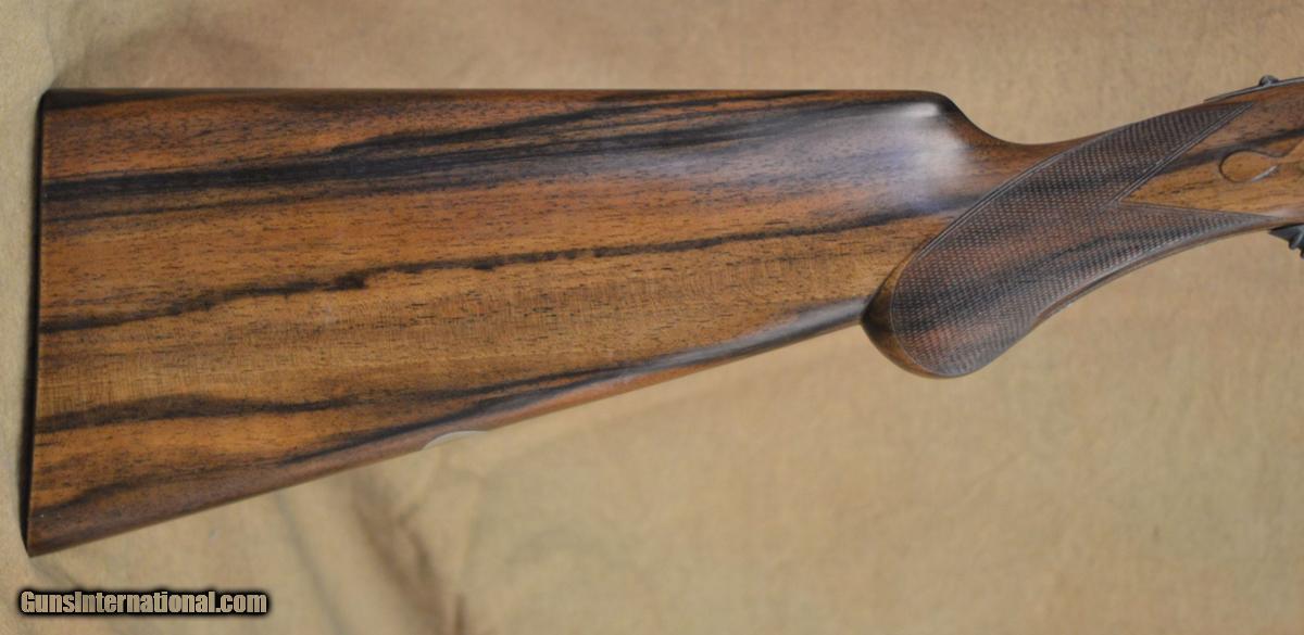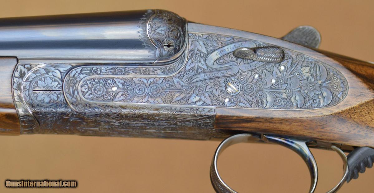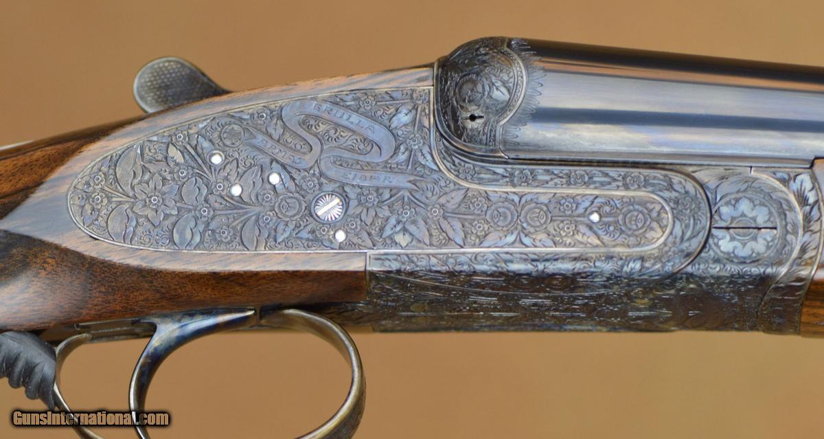 Description: New Matched Pair of Grulla 215 Game Guns, 20 Bore with 30" fixed choke (IC/M) barrels. Each gun features a single trigger, case-color hardened Square actions with hand-detachable side-locks, English Rose & Scroll engraving. Outstanding factory Prince-of-Wales pistol grip stocks to checkered butts and full beavertail forearms. Imported and configured by Pacific Sporting Arms. Includes factory leather motorcase. SOLD |