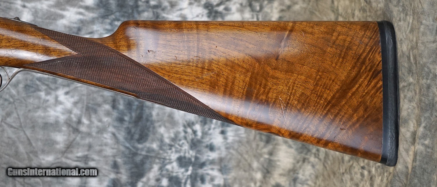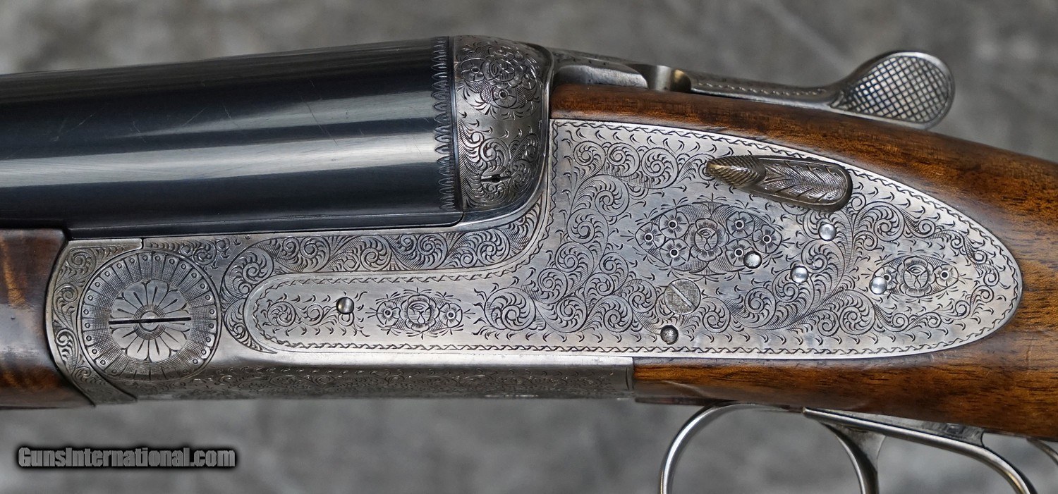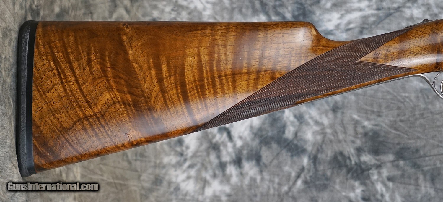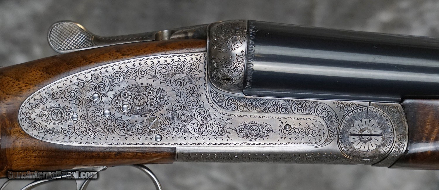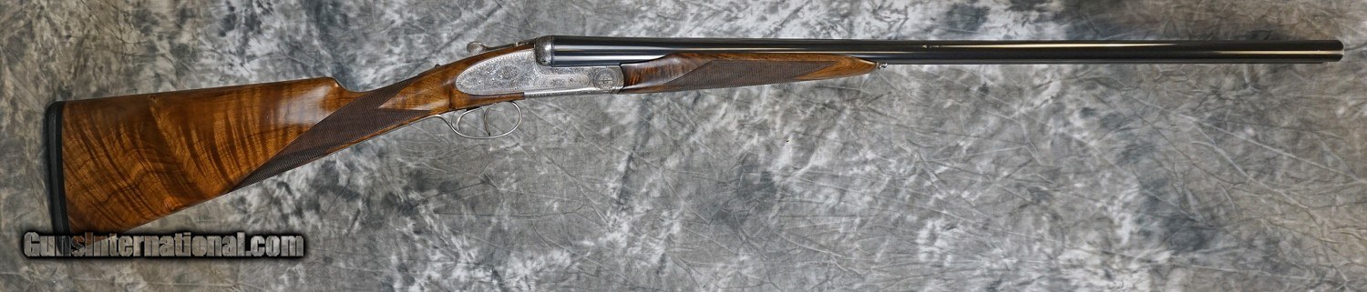 Description: Pre-Owned Grulla 217 Round Body Game 12GA with 28" factory fixed choke (IC/M) barrels, swamped game rib. Bluing wear, scuffs on barrels, pinhead dent in right barrel. Factory 5-pin Holland style side-lock ejector action featuring fine English rose and scroll, case-color hardened with finish wear on action, double triggers. Factory English straight-hand stock, full beavertail forearm. Handling marks and minor finish wear. Includes case. SOLD Shotgun Gauge: 12 Gauge |