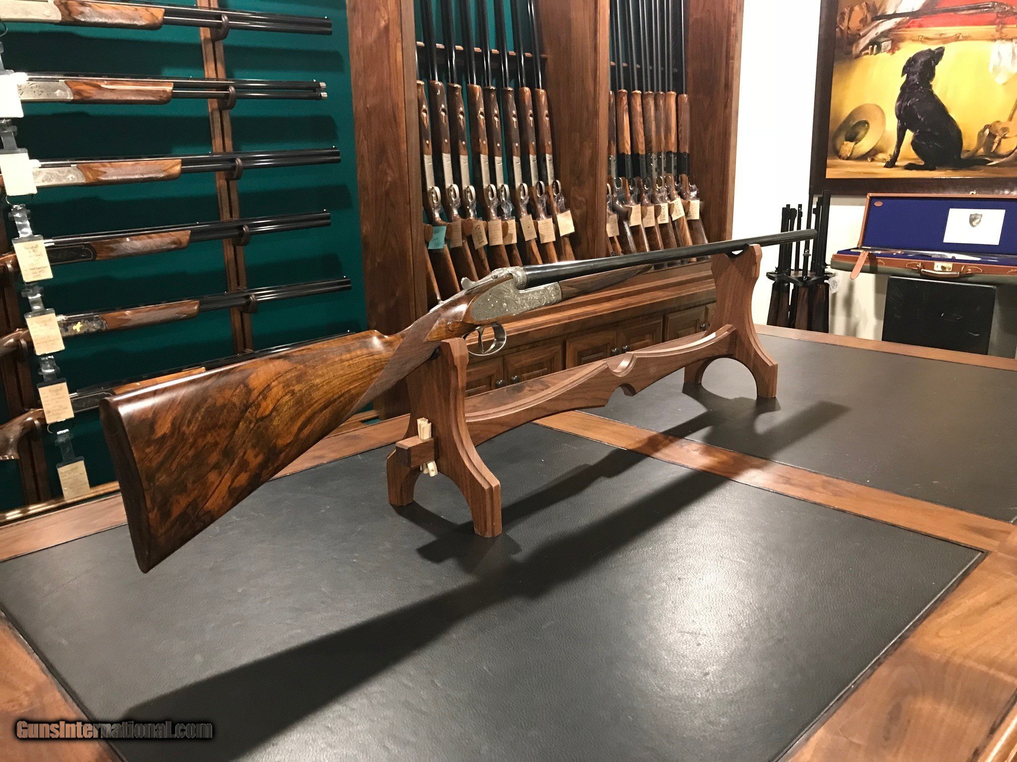 Description: Gorgeous Grulla Armas 215 20 ga. 30” barrels, 3” mag chamber, choked IC/Mod, removable side plate, English stock. 1/16” DF, 2 1/4” DH, 15” LOP, 1/4” castoff, double triggers, silver oval, silver finish in leather case with canvas cover and makers label. Includes $1,100 leather makers case. Please call for our best price. 615-651-4690 SOLD Manufacturer: Grulla Armas Model: 215 Serial Number: 310304516 Bore: 20 Chambers: 3" Mag Ejectors: no Condition: New Metal Condition: New Wood Condition: New Bore Condition: New Barrels: 30 Barrel Type: SxS Triggers: Double Gauge Info: 20 Stock: English Stock Cast: 1/4" Cast Off Butt Pad: None LOP: 15 Choke Left: IC Choke Right: Mod Engraving: Eibar Case: Yes |