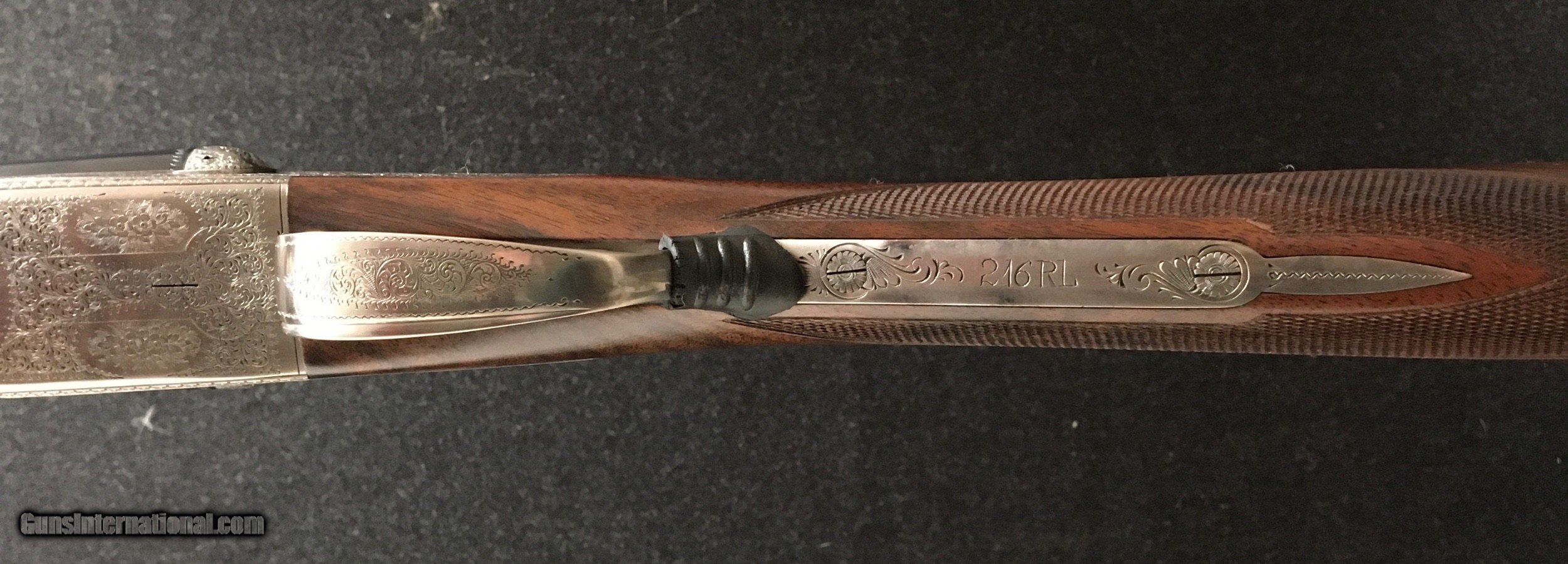 Description: Grulla 216 RL 28ga. Make: Grulla Model: 216 RL Limited edition Gauge: 28 Action: Side Lock Ejector Gun Trigger: Double (Front is Articulated) Choke: .008 (Lt. Mod), .014 (Imp. Mod.) Chambers: 2 3/4″ Barrel Length: 28” Stock: Pistol Grip, Slim Beavertail Forend Length of Pull: 15″ Over Checkered Wood Butt Drop Comb: 1 1/2” Drop Heel: 2 1/2” Cast: OFF 1/8″Comb, 1/8″Heel & Toe Weight: 6lbs 1.1oz Price: $6,950.00 Additional Info: Made 2007, Round Body, Imported by Merkel, Limited Run of guns, Beautiful rose & scroll engraving, 99% condition overall, Second Identical gun for a possible non-sequential pair. SOLD Serial Number: 173 |