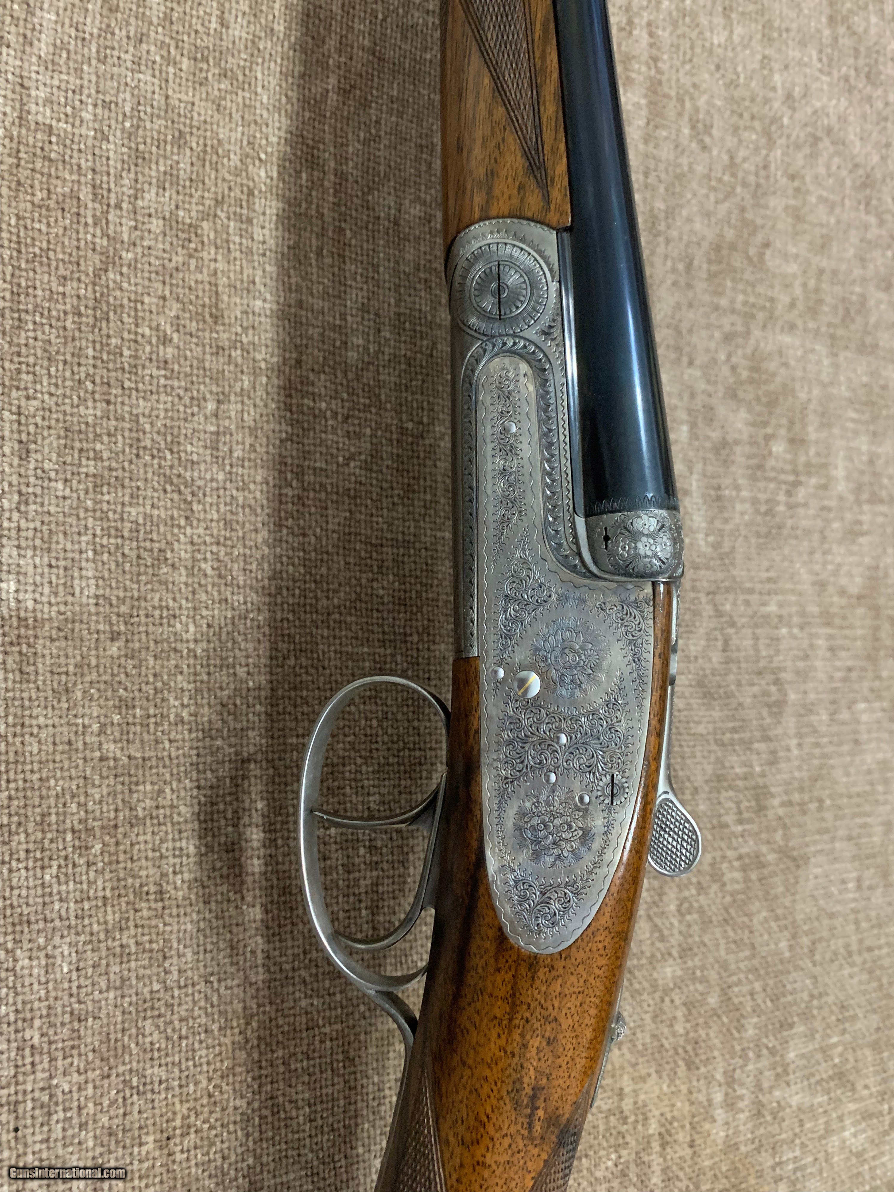 Description: GRULLA M-216 RB 410 SLE WITH 28" M/F CHOPPER LUMP BARRELS, 3" CHAMBERS, ROLLED EDGE TRIGGER GUARD, ARTICULATED FRONT TRIGGER, STRAIGHT STOCK TO CHECKERED BUTT AND CASED IN MAKERS CANVAS AND LEATHER CASE. 5LBS 11OZS, 1 1/2" X 2 3/8" X 14 1/2". $7600.00. AS NEW CONDITION. JOHN 443-952-7165. PHONE ONLY PLEASE. FREE SHIPPING. SOLD |
