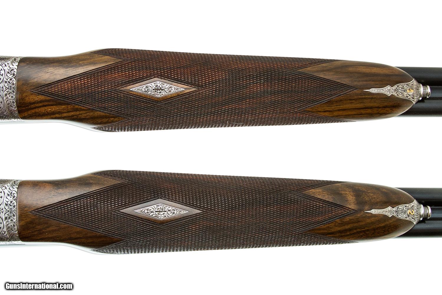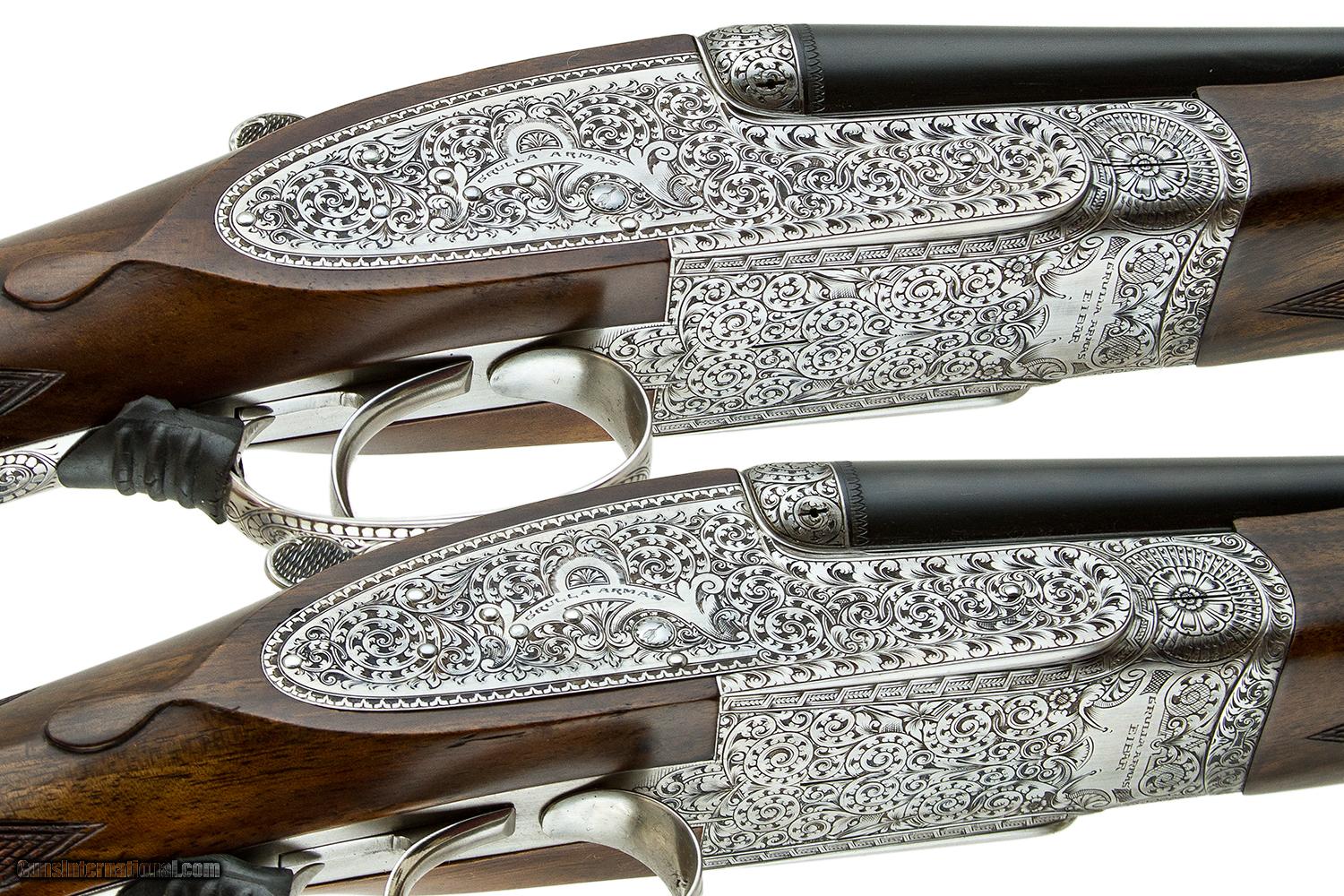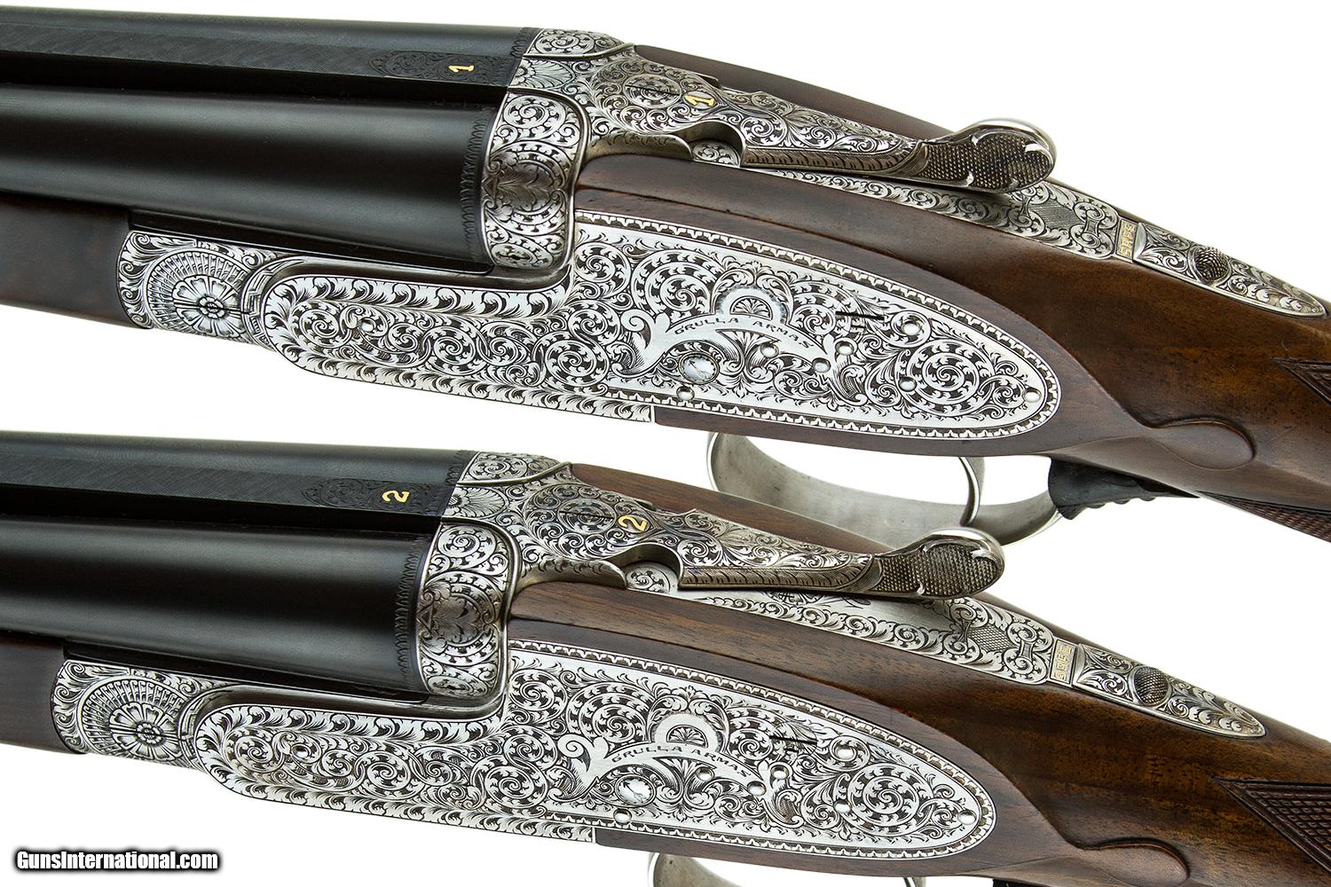 Description: 27" SELF OPENERS BOTH GUNS ARE IDENTICAL IC AND MOD 3" CHAMBERS SINGLE TRIGGER EJECTORS BEAVERTAIL FOREARM ENGLISH GRIP CHECKERED BUTT TEST FIRED ONLY MAKERS CASE 5LBS 15 0Z X 2 1/4 X 1 1/2 X 14 3/4 (WE WILL CONSIDER SPLITTING THE PAIR) SOLD |