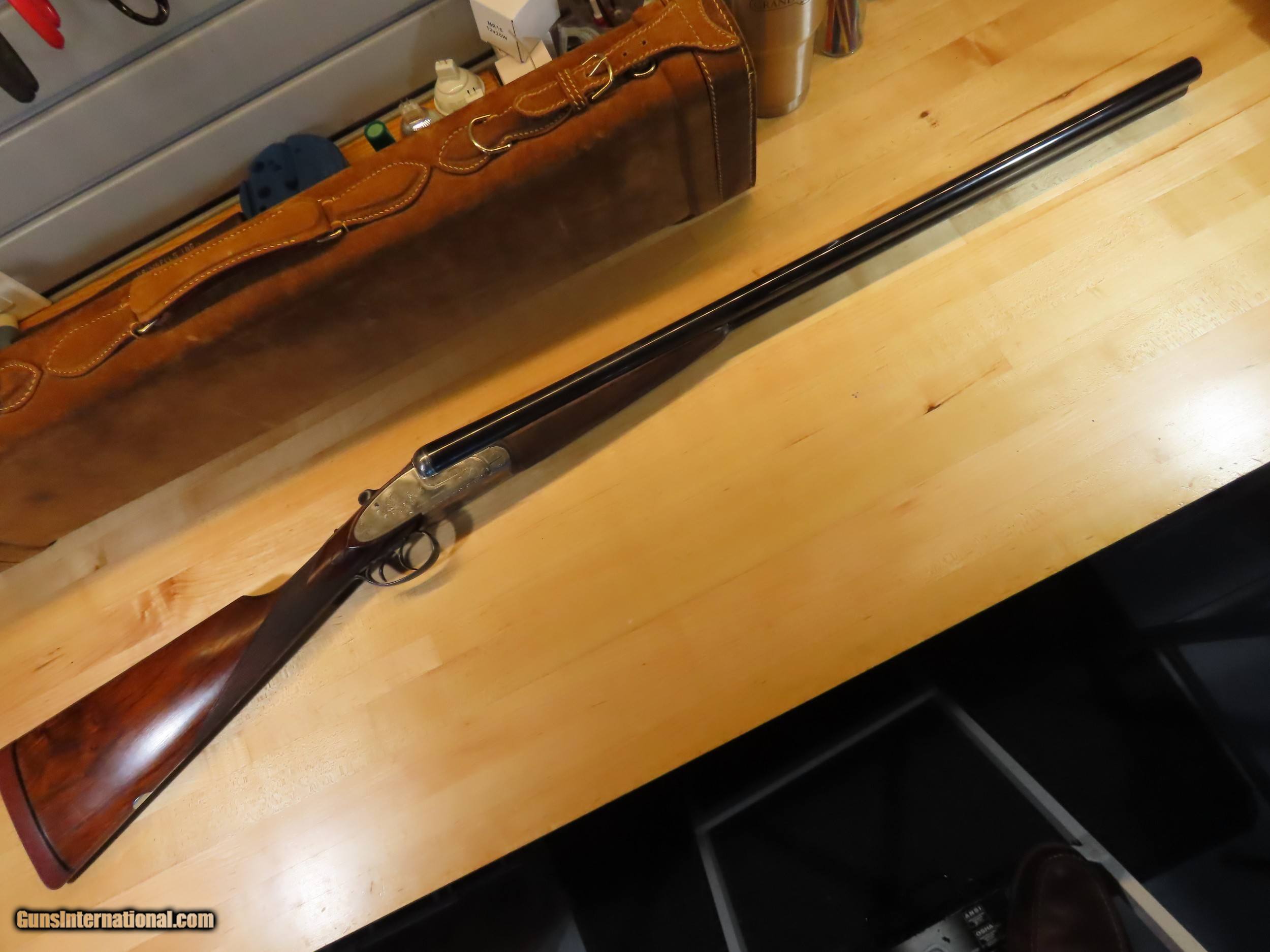 Description: Grulla Union Armera 12 ga. Self Opening Sidelock SLE Spanish H&H Style SxS Game Gun * NOTE: Seller will pack gun securely and pay for insured Fedex Ground Shipping directly to your FFL within the lower 48 states. Your FFL must accept shipment from private party with photo ID to get free shipping. As a private seller I do not collect sales tax. This is an unabashed Best Spanish copy of the classic Holland & Holland Self Opening side by side, light weight game gun with straight grip and splinter forend, hand detachable sidelock action, chopper lump barrels, bushed firing pins, double triggers with front trigger hinged, automatic safety, and the Holland design self opening system. Union Armera evolved into Grulla sometime after this one was built, but the Grulla trademark was already in use as is shown on the water table and barrel flats. Grulla still makes very fine double guns and one with all the features of this one would be quite expensive. The H&H design self opener alone could add several thousand dollars to the cost of a new Spanish best gun. Chokes are Briley long, thin wall Series 26 VX tubes, a $600 option that I added. The Briley VX tubes can be used for all shot types and multiple choke choices are available from Briley. The English straight stock with splinter forend is nicely figured oil finished walnut with good checkering, drop points, vacant silver oval, and classic red rubber recoil pad. Action is coin finished with nice scroll engraving and blued hardware. She is in perfect working order and locks up tight on the face. Excellent over all with scattered handling marks but no damage, no rust or pitting, and bright bores. Some barrel bluing has thinned from careful use and carry, most notably on the right barrel where my hand wrapped around the splinter forend to shoot. With ideal dimensions, perfect weight for 1-1/8 oz loads, and Briley interchangeable chokes, its versatility has made it my favorite go-to hunting gun for about 30 years now. I’ll ship it in the same suede leather leg-o-mutton case it came in to me. Feel free to ask questions by email, text or phone (410) 924-8484. Asking $4500 Watch my listings for more fine double guns as I sell off my long time collection. SOLD Shotgun Gauge: 12 Gauge Manufacturer: Union Armera Grulla Model: Consort Barrel Length: 28 Chambers: 2-3/4 Ejectors: Auto Condition: Excellent Metal Condition: Excellent Wood Condition: Excellent Bore Condition: Excellent Barrels: Chopper lump Barrel Type: Side by Side Action: Hand detachable self opening sidelock Triggers: Double Stock: English hand rubbed oil Stock Comb: 1-1/2 inches Stock Heel: 2-1/2 Stock Cast: Off about 3/8 Fore End: English Splinter Butt Pad: English red rubber LOP: 15 Rib: Concave tapered game Finish: blue and coin Weight: 6 lb., 12oz. Sights: front bead Manufacture Date: 1980s Chokes: Briley S-26 thin wall Choke Left: Flush screw in Choke Right: Flush screw in Engraving: Scroll Extras: Briley chokes Case: Suede Leg-o-mutton Item Location: FL Proof:Nitro: 1-1/8 oz., 2-3/4" |