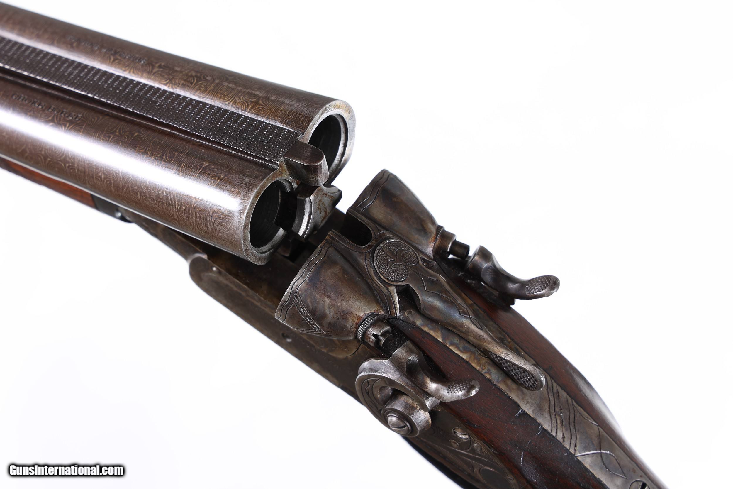 Description: Excellent overall condition with vivid damascus pattern. Strong case coloring to receiver. Solid wood with original varnish with extractor. 3" chambers, full/full chokes, and 13 1/2" LOP. Barrel 32 " C&R. Guage 12ga, Barrels 32", C&R. SOLD Curio/Relic: Yes Serial Number: 125689 Barrels: 30 Action: SxS Shotgun Gauge Info: 12ga LOP: 13 1/2 |