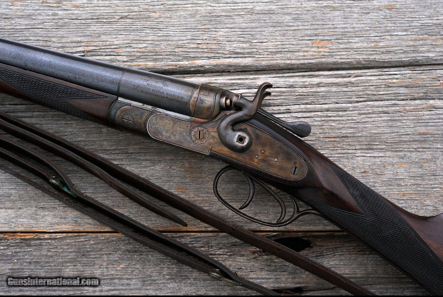 Description: Bayard - Hammergun - 24 ga - Item Number: BAY9260 Shotgun type: SxS Action: Hammer Ejectors: No Trigger: Double Grip: Straight Grip Forend: Checkered Lop: 14 " Type of butt: Metal Drop comb: 1 5/8 " Drop heel: 2 3/8 " Cast amount: 3/8 " Cast: Off Weight: 6 lbs, oz Manufactured in: Belgium Manufacture Year: Finish: Case Colored Overall condition: Fair Stock condition: Fair Metal condition: Fair Stock: Original finish Metal: Original finish Type of Case: none Extra barrels: 0 Barrel info: Gauge: 24 ga Chamber: NA " Length: 27 1/2 " Chokes: C/M Rib type: Concave Comments : Stock is broken around the hammers and through the wrist, left hammer is missing a screw. SG-64 SOLD |