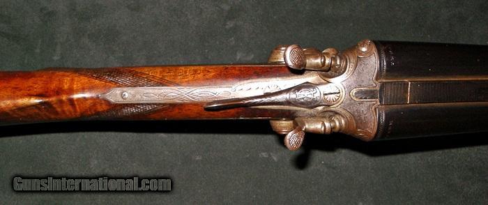Description: CG HAENEL SUHL, BACK ACTION SIDELOCK 20GA ROUND BODY HAMMERGUN, SCROLL ENGRAVING ON ACTION, 28 1/2" KRUPP STEEL BBLS, 2 1/2, FULL/FULL, RAISED GAME RIB, EXTRACTORS, DBL TRIGGERS, HIGHLY FIGURED WALNUT, 1/2 GRIP, PISTOL, LOP 14 1/4 WOOD EXTENSION, 1 7/16, 2 1/2, 5LBS 12OZ, EXCELLENT BORES, TIGHT ACTION, EXCELLENT BLUE, WOOD HAS A FEW LIGHT HANDLING MARKS, NO CRACKS OR REPAIRS. SOLD Manufacturer: CG HAENEL SUHL Model: BACK ACTION SIDELOCK ROUND BODY HAMMERGUN Chambers: 2 1/2 Ejectors: EXTRACTORS Condition: VERY GOOD Metal Condition: EXCELLENT Wood Condition: FEW LIGHT HANDLING MARKS Bore Condition: EXCELLENT Barrels: 28 1/2 Barrel Type: KRUPP STEEL Action: S/S, TIGHT ACTION Triggers: DBL Gauge Info: 20GA Stock: HIGHLY FIGURED WALNUT, 1/2 GRIP, PISTOL LOP: LOP 14 1/4 WITH WOOD EXTENSION, 1 7/16, 2 1/2 Rib: RAISED GAME RIB Weight: 5LBS 12OZ Chokes: FULL/FULL Engraving: SCROLL Item Location: SAFARI OUTFITTERS LTD, SALT POINT, NY 12578 |