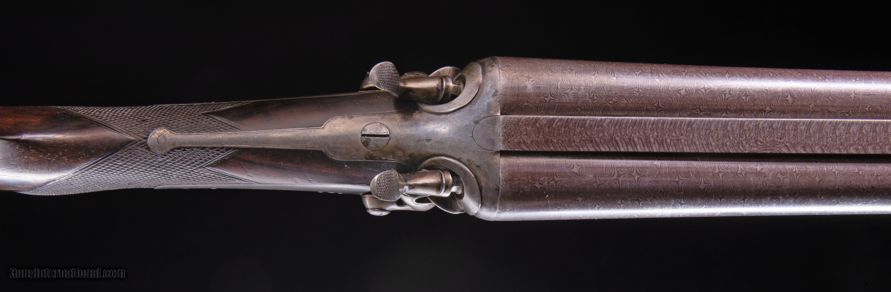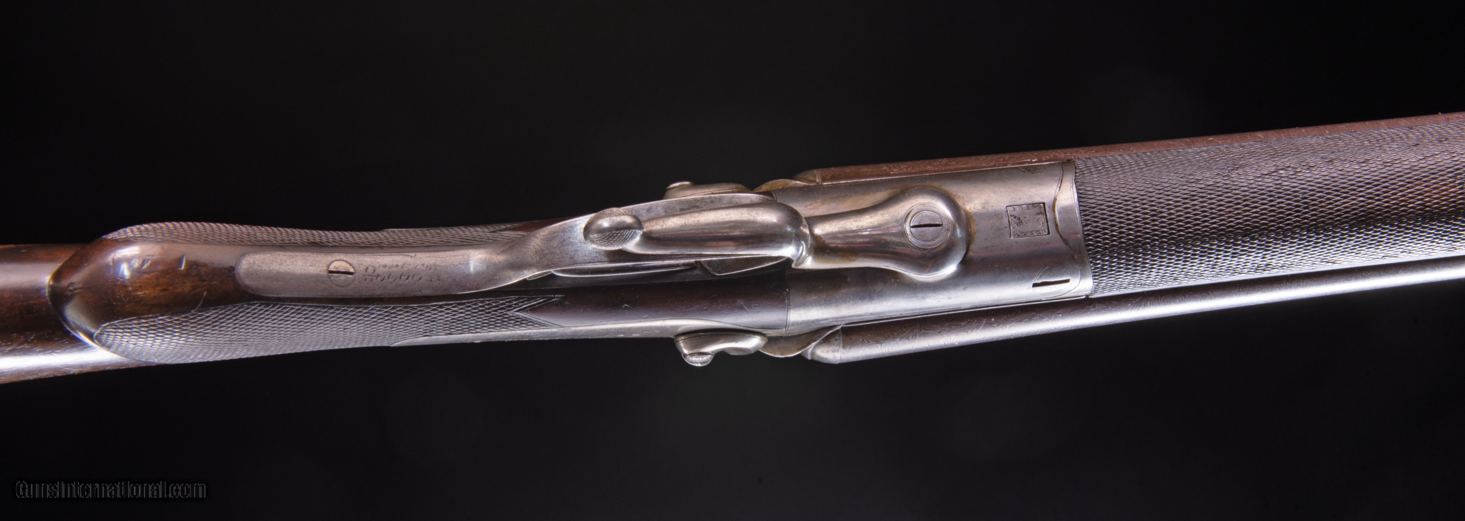 Description: Hammerguns - Completed in the fall of 1879 just in time for the waterfowl migration. This lovely gun has mirror bright bores and very modern dimensions. *** Note: To see this gun with high resolution photos and a zoom-in feature, go to the vintagedoubles main site and search for the gun ID: 4491 or browse the main site to see our full gun collection. SOLD Manufacturer: E.M. Reilly 10g. in very nice condition ~ Modern nitro proofed! Model: None Serial Number: 22228 Ejectors: No Barrels: 29 15/16 Barrel Type: Damascus Action: Jones underlever with rebounding hammers Gauge Info: 10 gauge Stock Comb: 1 1/2 Stock Heel: 2 Stock Cast: 0 LOP: 14 1/8 Weight: 8lbs 7oz Choke Left: Cyl. Choke Right: Cyl. Proof:Nitro: 2 5/8" 1 3/8 oz Minimum Wall Thickness Left: .035 Minimum Wall Thickness Right: .035 |