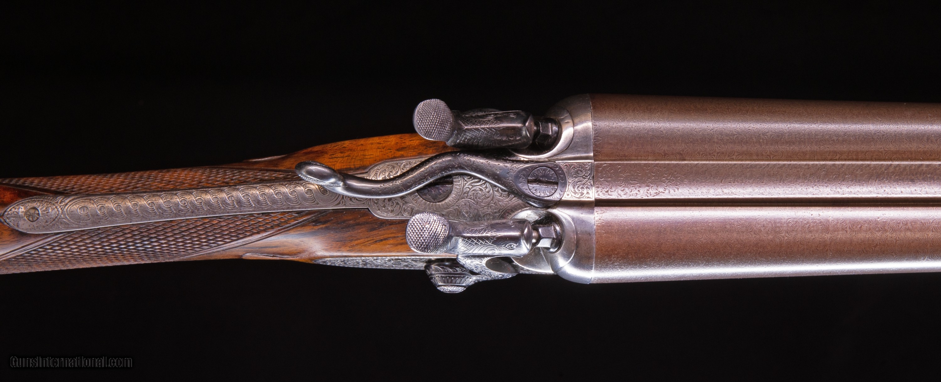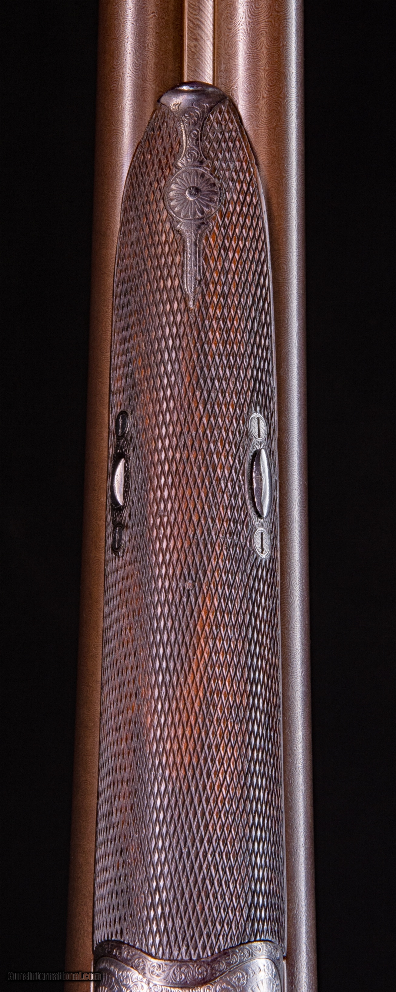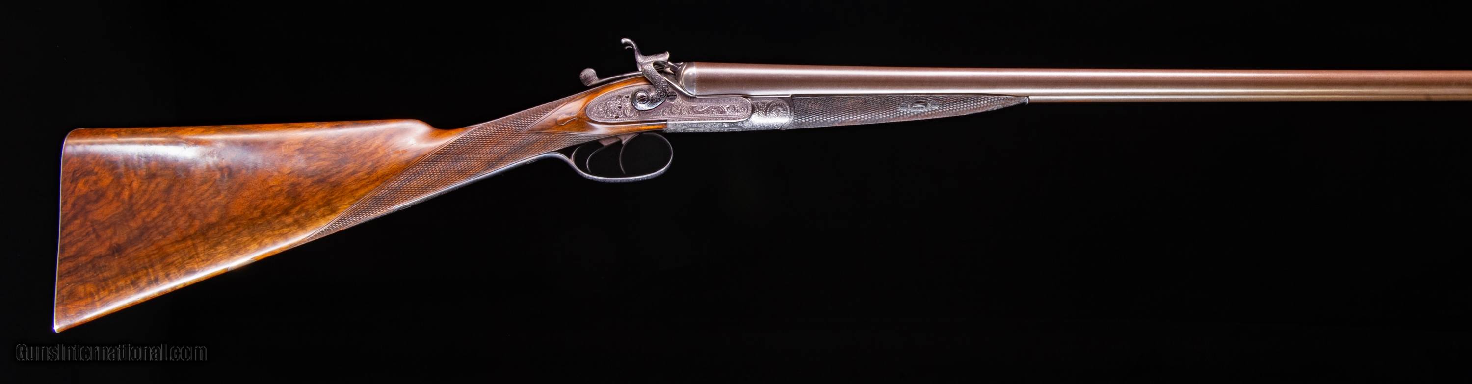 Description: Hammerguns - Interesting small maker located between 1867-1920 at Market street Lincs. 30" nitro proofed barrels in excellent condition. This fine example built around 1890. Hammer 16g. English double shotguns are getting extremely hard for us to find and this is a very nice one. *** Note: To see this gun with high resolution photos and a zoom-in feature, go to the vintagedoubles main site and search for the gun ID: 5069 or browse the main site to see our full gun collection. SOLD Manufacturer: English 16g. by Charles F. Liversedge ~ Market St. Lincs ~ 30" nitro Damascus barrels! Model: None Serial Number: 260 Ejectors: No Barrels: 30 Barrel Type: Damascus Action: Hammer top lever with rebounding hammers Gauge Info: 16 gauge Stock Comb: 1 9/16 Stock Heel: 1 7/8 Stock Cast: 1/8 LOP: 14 1/2" with s Weight: 6 lbs. 2.5 oz. Choke Left: .007 IC Choke Right: .003 Skeet Proof:Nitro: 2 1/2 Minimum Wall Thickness Left: .024 Minimum Wall Thickness Right: .025 |