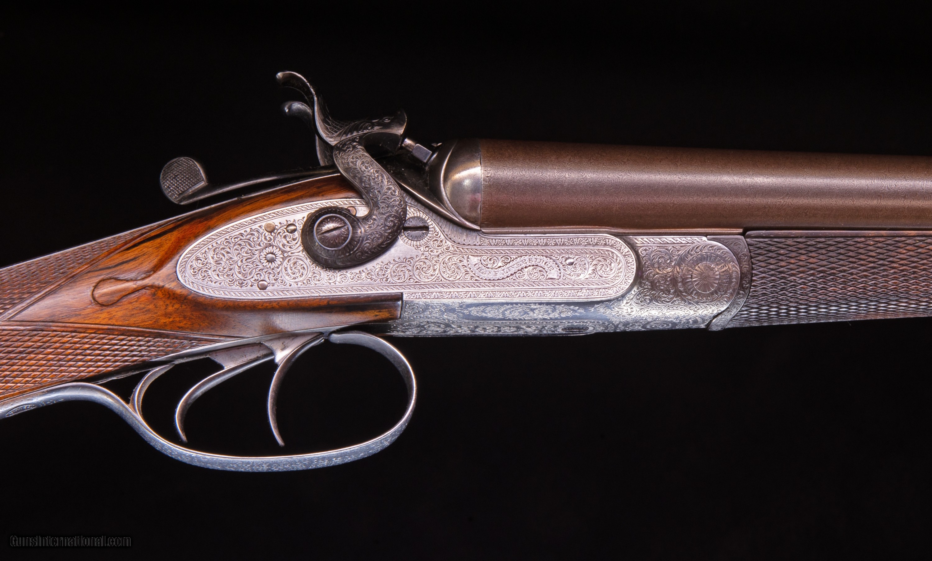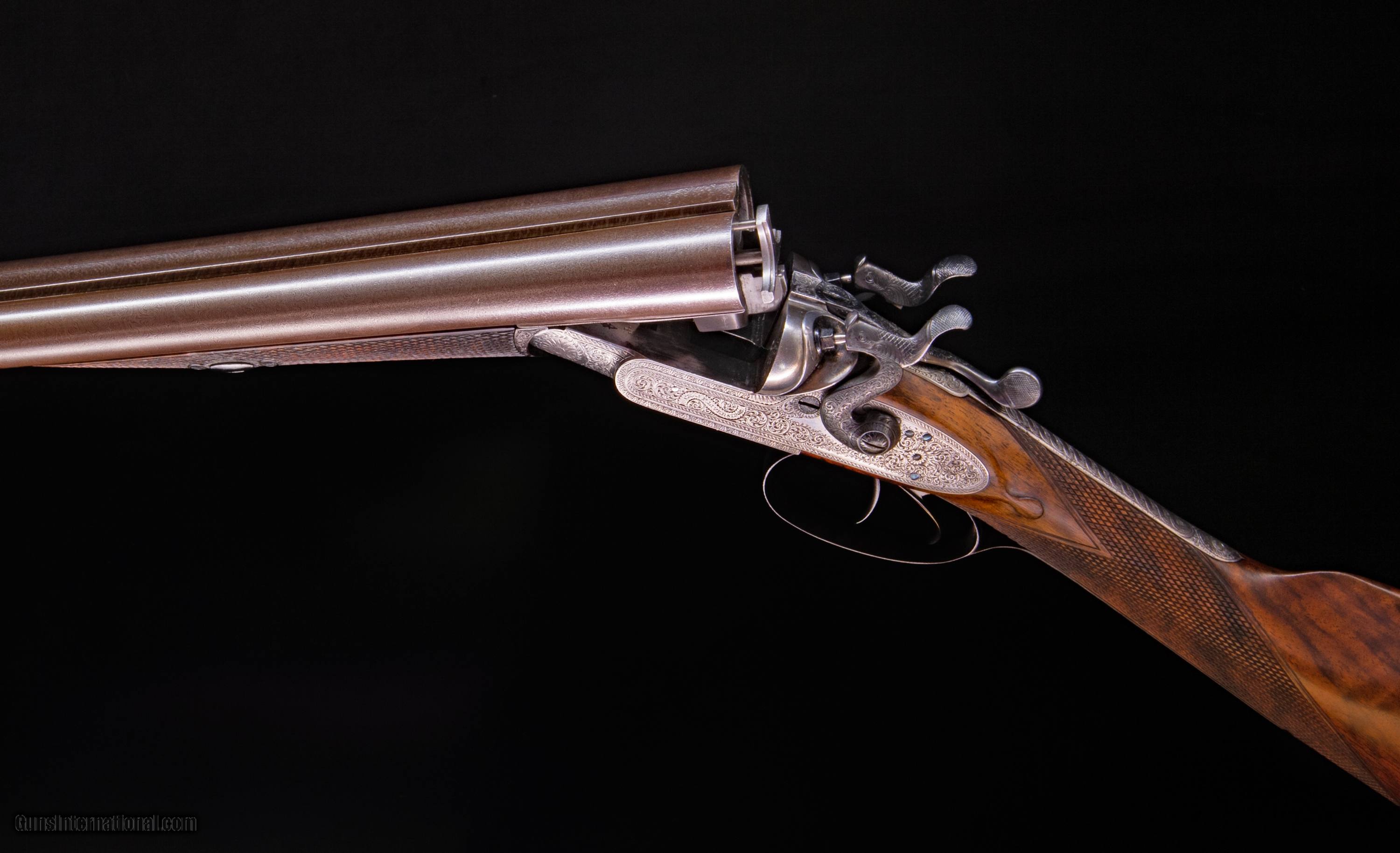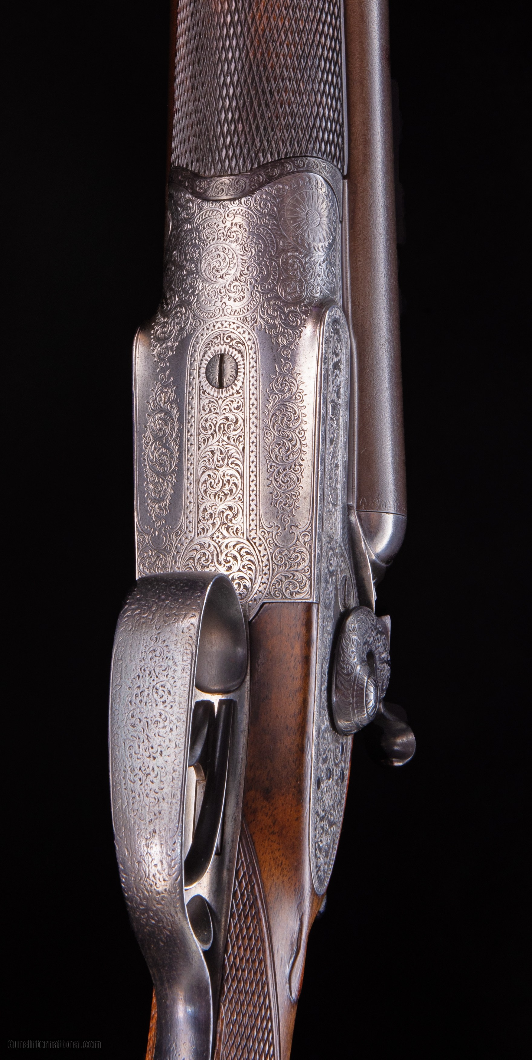 Description: Hammerguns - Interesting small maker located between 1867-1920 at Market street Lincs. 30" nitro proofed barrels in excellent condition. This fine example built around 1890. Hammer 16g. English double shotguns are getting extremely hard for us to find and this is a very nice one. *** Note: To see this gun with high resolution photos and a zoom-in feature, go to the vintagedoubles main site and search for the gun ID: 5069 or browse the main site to see our full gun collection. SOLD Manufacturer: English 16g. by Charles F. Liversedge ~ Market St. Lincs ~ 30" nitro Damascus barrels! Model: None Serial Number: 260 Ejectors: No Barrels: 30 Barrel Type: Damascus Action: Hammer top lever with rebounding hammers Gauge Info: 16 gauge Stock Comb: 1 9/16 Stock Heel: 1 7/8 Stock Cast: 1/8 LOP: 14 1/2" with s Weight: 6 lbs. 2.5 oz. Choke Left: .007 IC Choke Right: .003 Skeet Proof:Nitro: 2 1/2 Minimum Wall Thickness Left: .024 Minimum Wall Thickness Right: .025 |