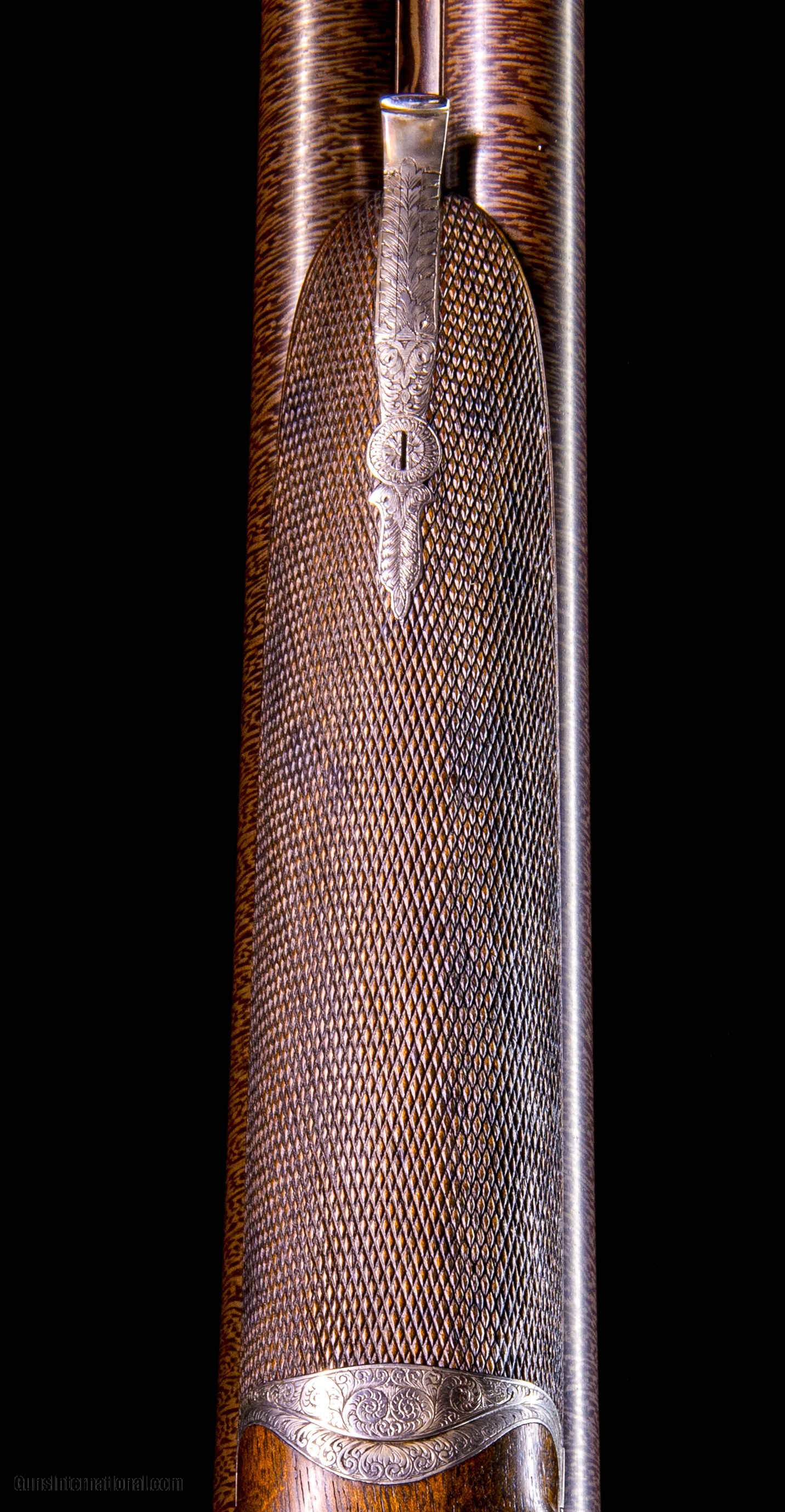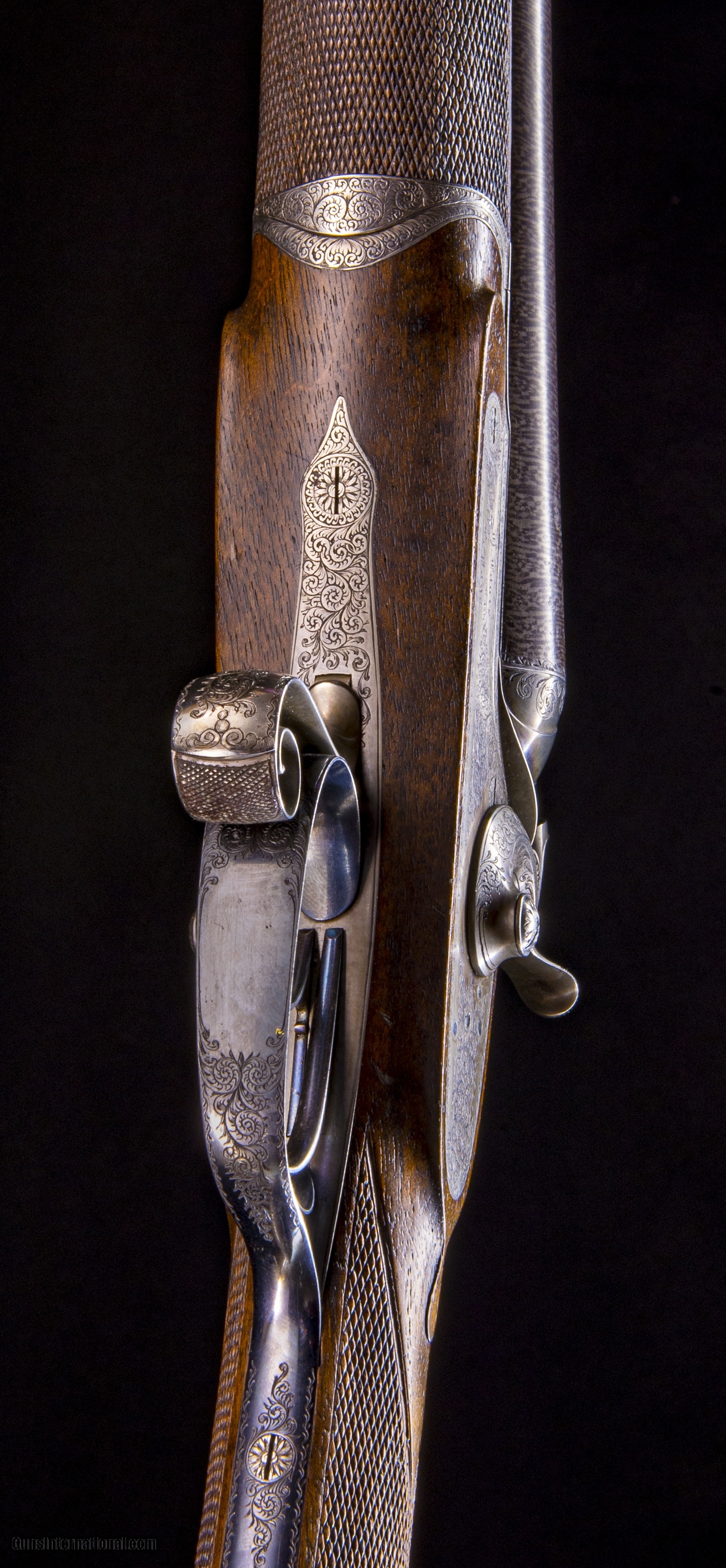 *The opening lever is a “levier volute†a French classic of the 1880s to 1890s. This is very similar to the forward lever used on James Woodward guns, just like the one I use and love personally. *** Note: To see this gun with high resolution photos and a zoom-in feature, go to the vintagedoubles main site and search for the gun ID: 5350 or browse the main site to see our full gun collection.