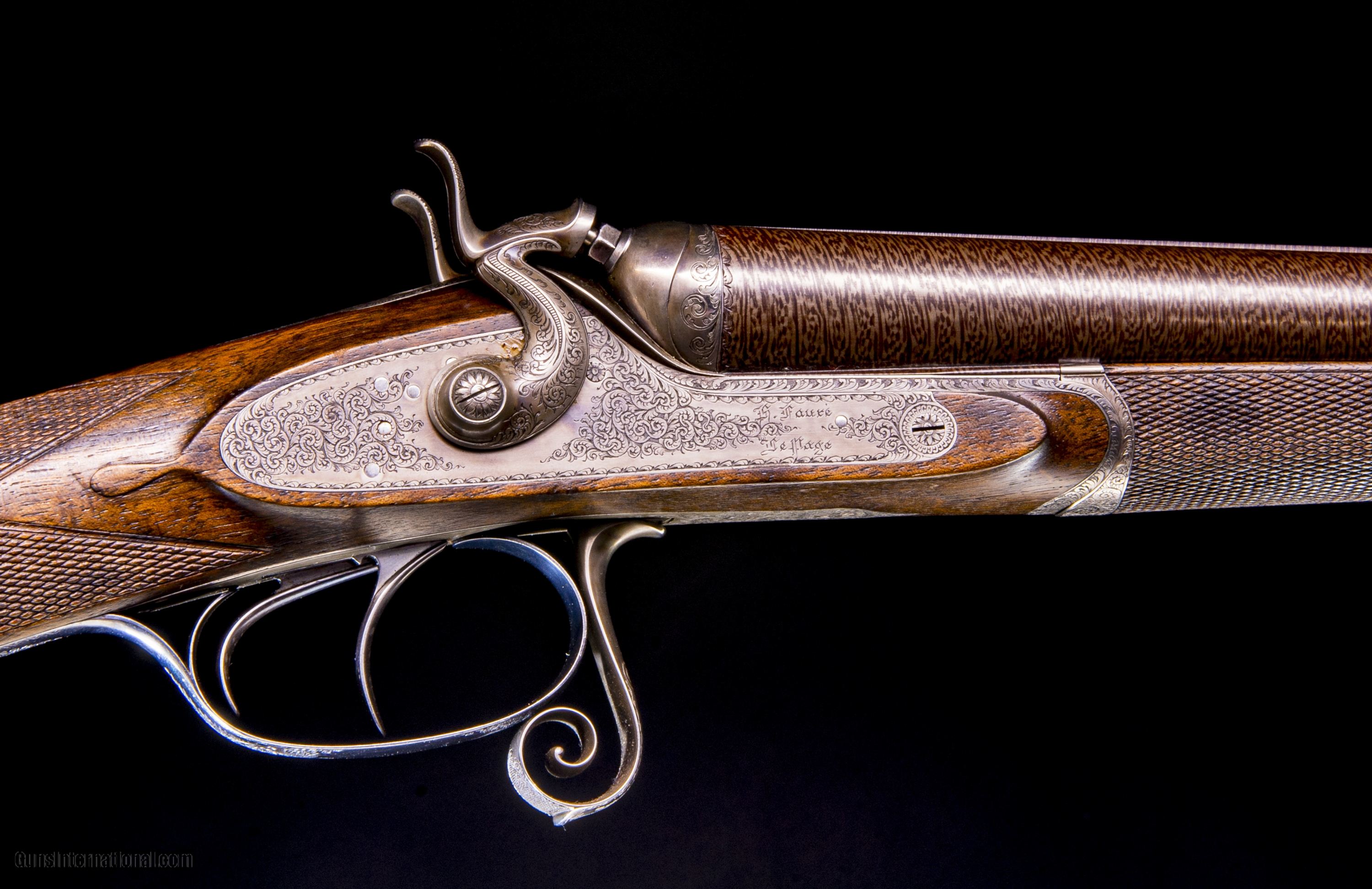 Faure Le Page was an extremely respected Parisian gun maker whose client list included most of the heads of state in Europe. The barrels, marked with his personal proof, are by Leupold Barnard and show his stunning pattern.