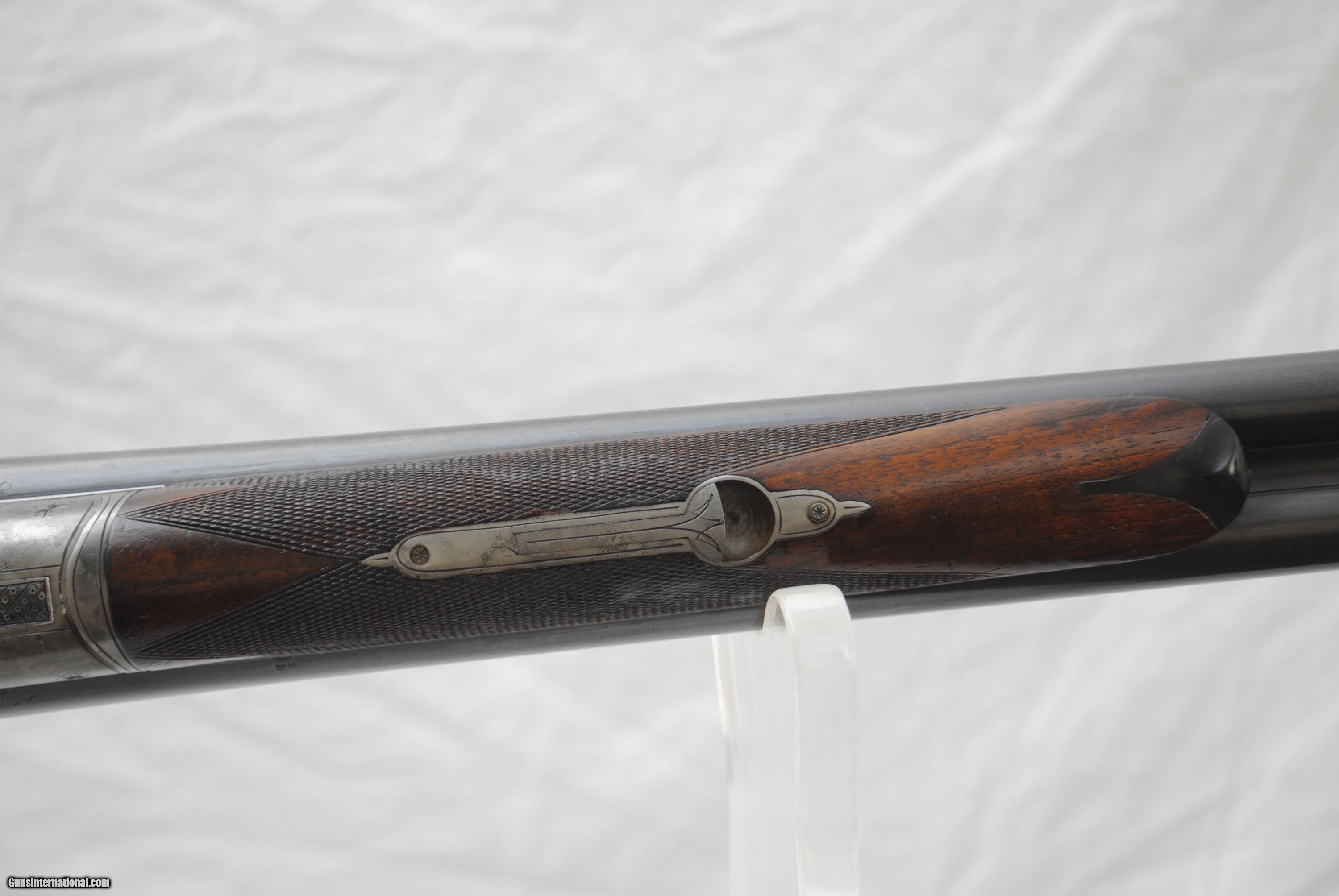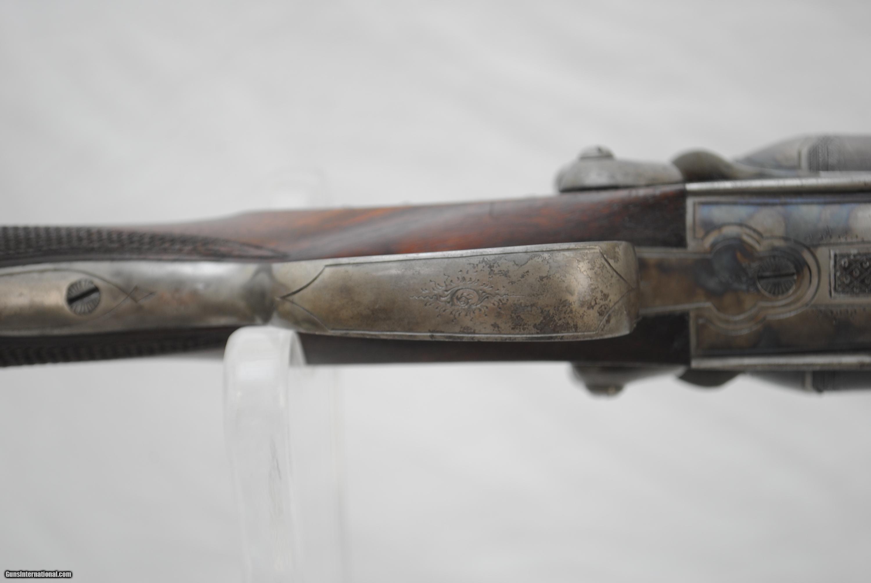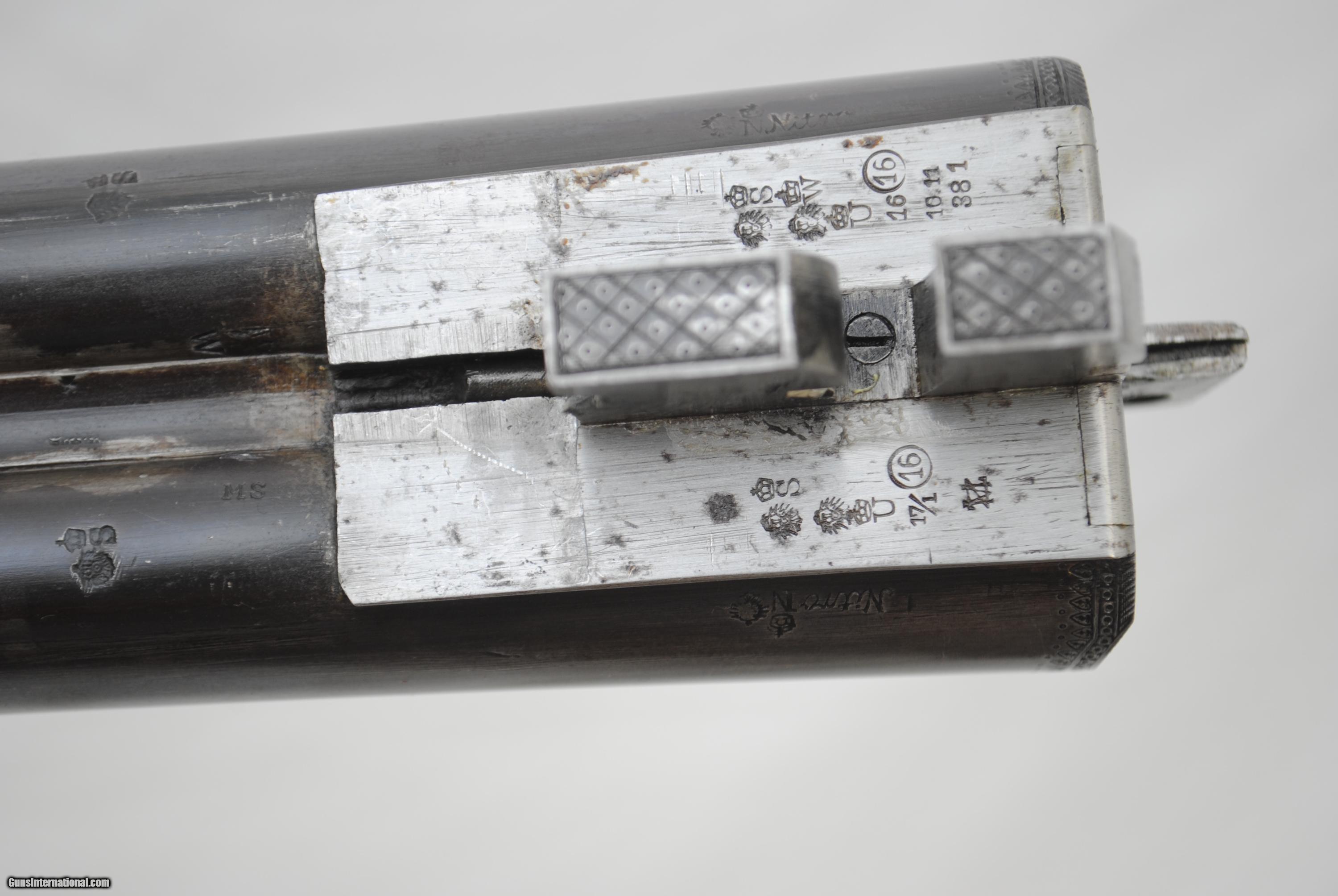 Description: Here is a German guild hammer gun in 16 gauge with NITRO PROOFED 29 1/2" FLUID STEEL barrels. Excellent condition with 40% original case colors. Gun is tight on face. No loose ribs. Double underbite with Greener style style third fastener. Tradional horn buttplate and forend tip. Sharp checkering. Chambers are 2 5/8" (I shoot 2 3/4" shells with no issue). Right bore measures .665 with 15/1000 choke (Mod) while left is .667 with 37/1000 choke (Full). Mirror bores. Weight of gun is 6 LBS 9 3/4 OZ. Shipping is $40. Stock dimensions follow. LOP - 14" Drop at Comb - 1 3/8" Drop at Heel - 2 3/4" For inquiries please call Guy - 407-721-3748 SOLD Curio/Relic: Yes |