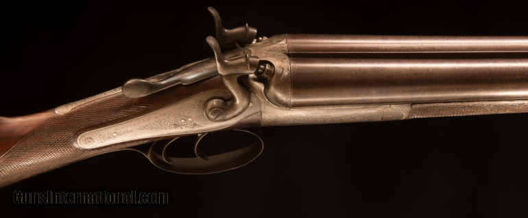 Description: Solid wood and nice Damascus pattern by this classic gun maker from Scotland. Records and name currently owned by John Dickson of Edinburgh. SOLD Manufacturer: Harkom and Son 12 ga Hammer damascus Serial Number: 1472 Ejectors: No Barrels: 30 Barrel Type: Damascus Action: Hammer Gauge Info: 12 gauge Stock Comb: 1 5/8 Stock Heel: 2 3/8 Stock Cast: 1/8 LOP: 14 1/2" steel skelet Weight: 7 lbs. 2 oz. Choke Left: .028 full Choke Right: .000 Proof:Black: 2 1/2 Minimum Wall Thickness Left: .026 Minimum Wall Thickness Right: .028 |