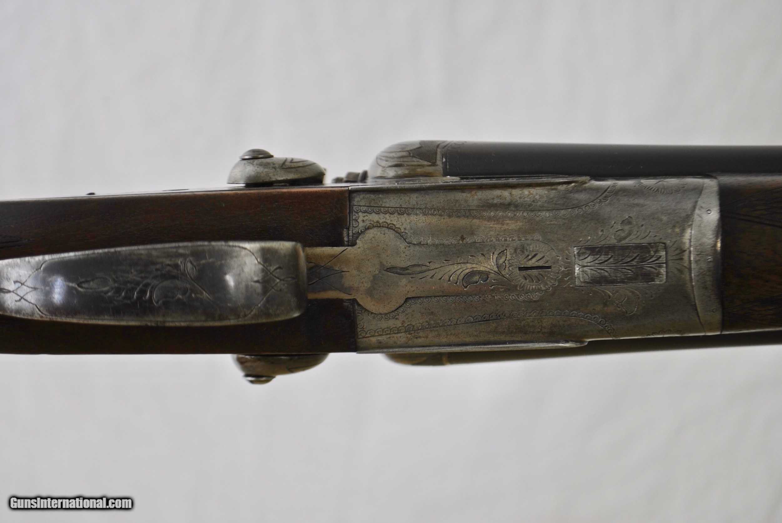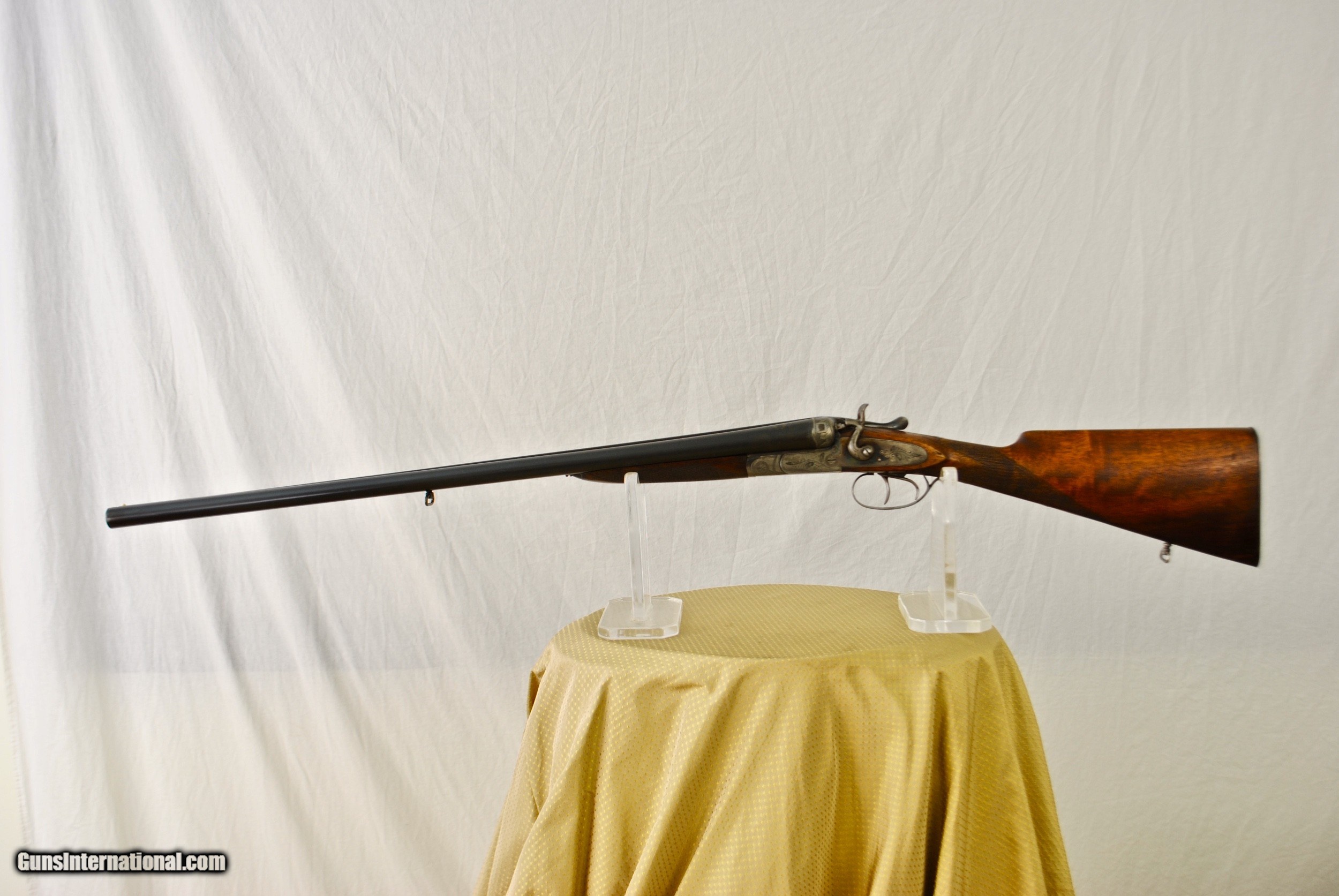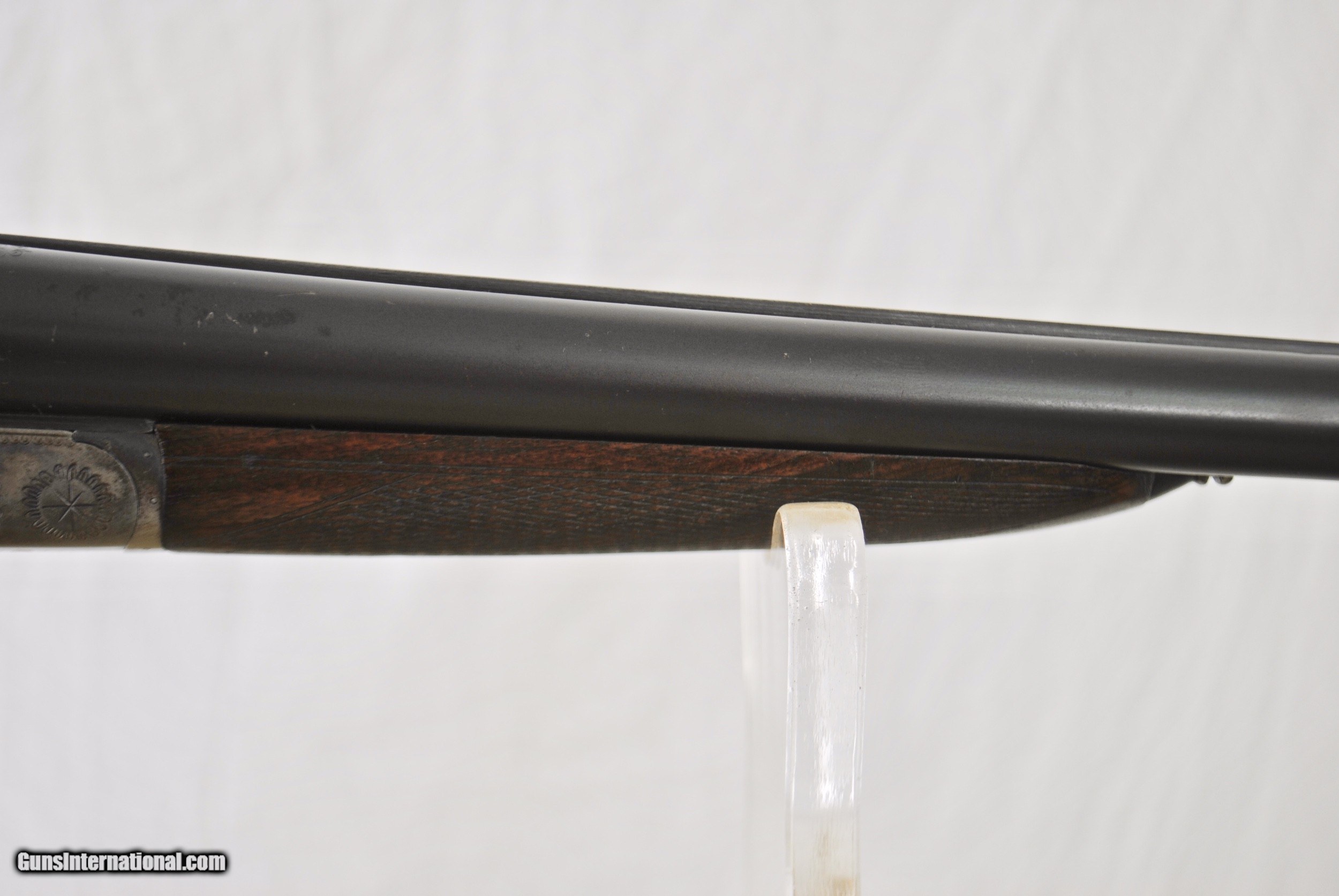 Description: Here is a nice vintage Italian hammer double shotgun made in 1935. Nitro proof Cockerill Steel Barrels. Excellent conditon with strong case color in protected areas. Back action sidelock with rebounding hammers. Tasteful vine and leaf engraving. Stock and forend solid with a very small repair at toe - hardly noticable. Double underbite lockup with Greener style third fastener. Side clips. Tight on face. Mirror bores. Barrels are 27" with Full and Full chokes. Chambers as original at 2 3/4". Steel butt plate. Weight of gun is 7 LBS 2 OZ. Shipping is $40. Stock dimensions follow. LOP - 14" Drop at Comb - 1 1/2" Drop at Heel - 2 1/2" For inquiries please call Guy - 407-721-3748 SOLD Shotgun Gauge: 12 Gauge |