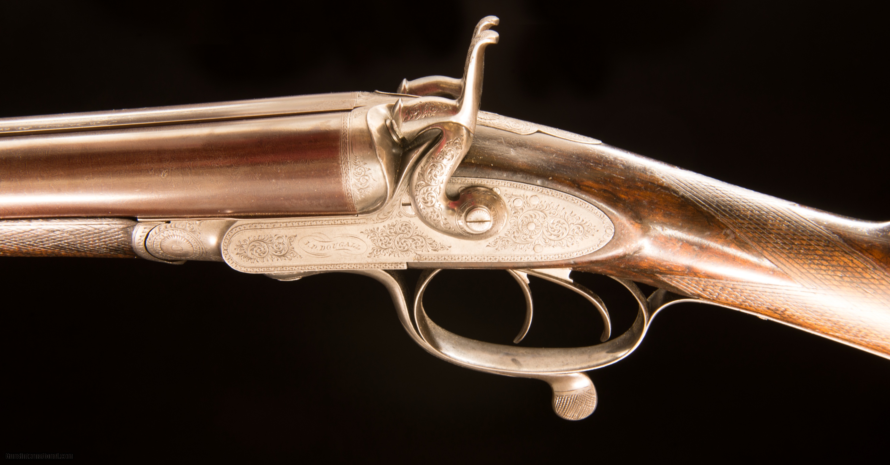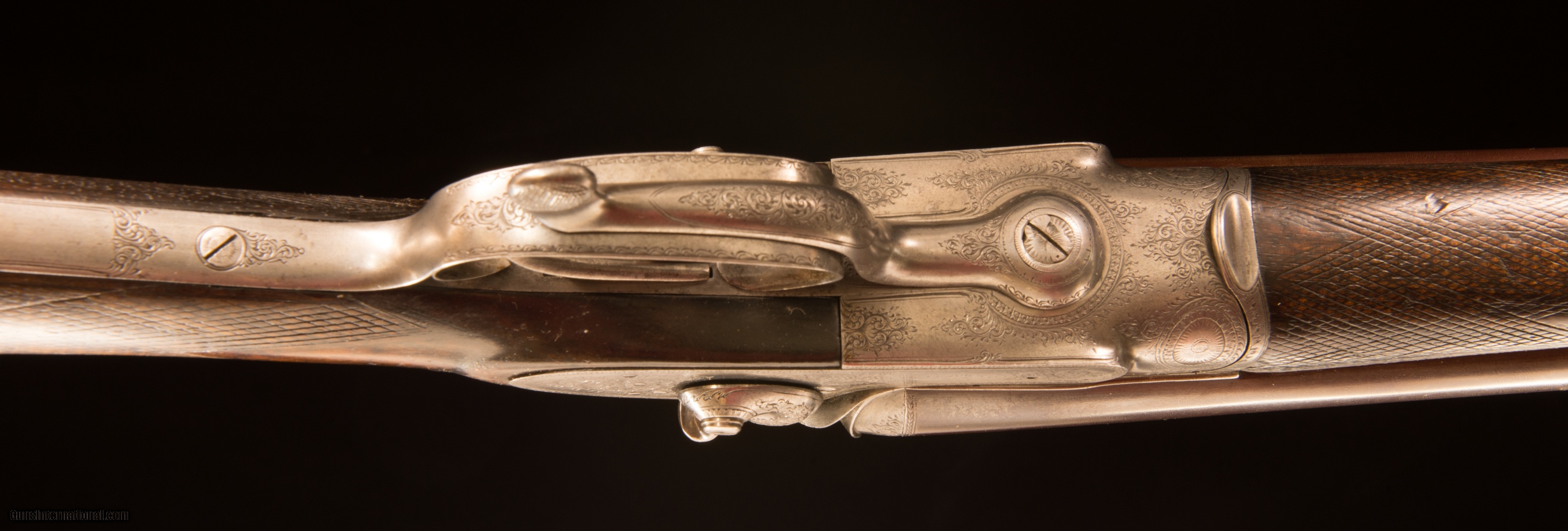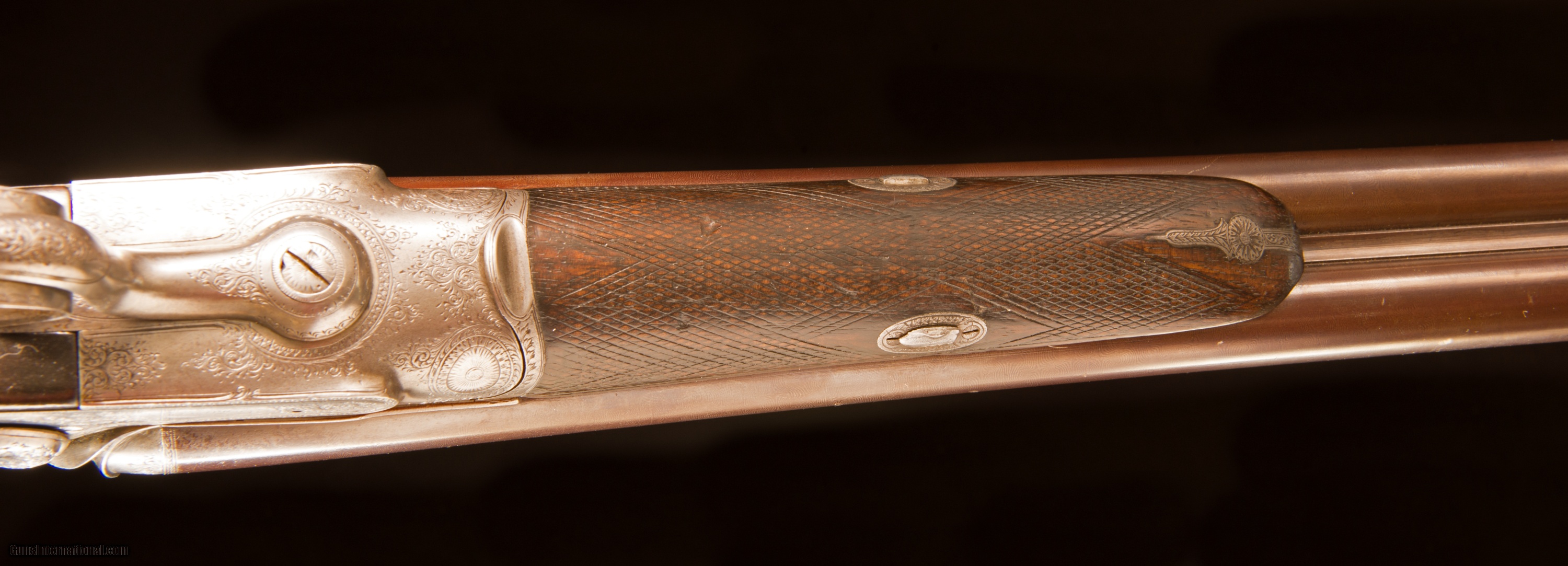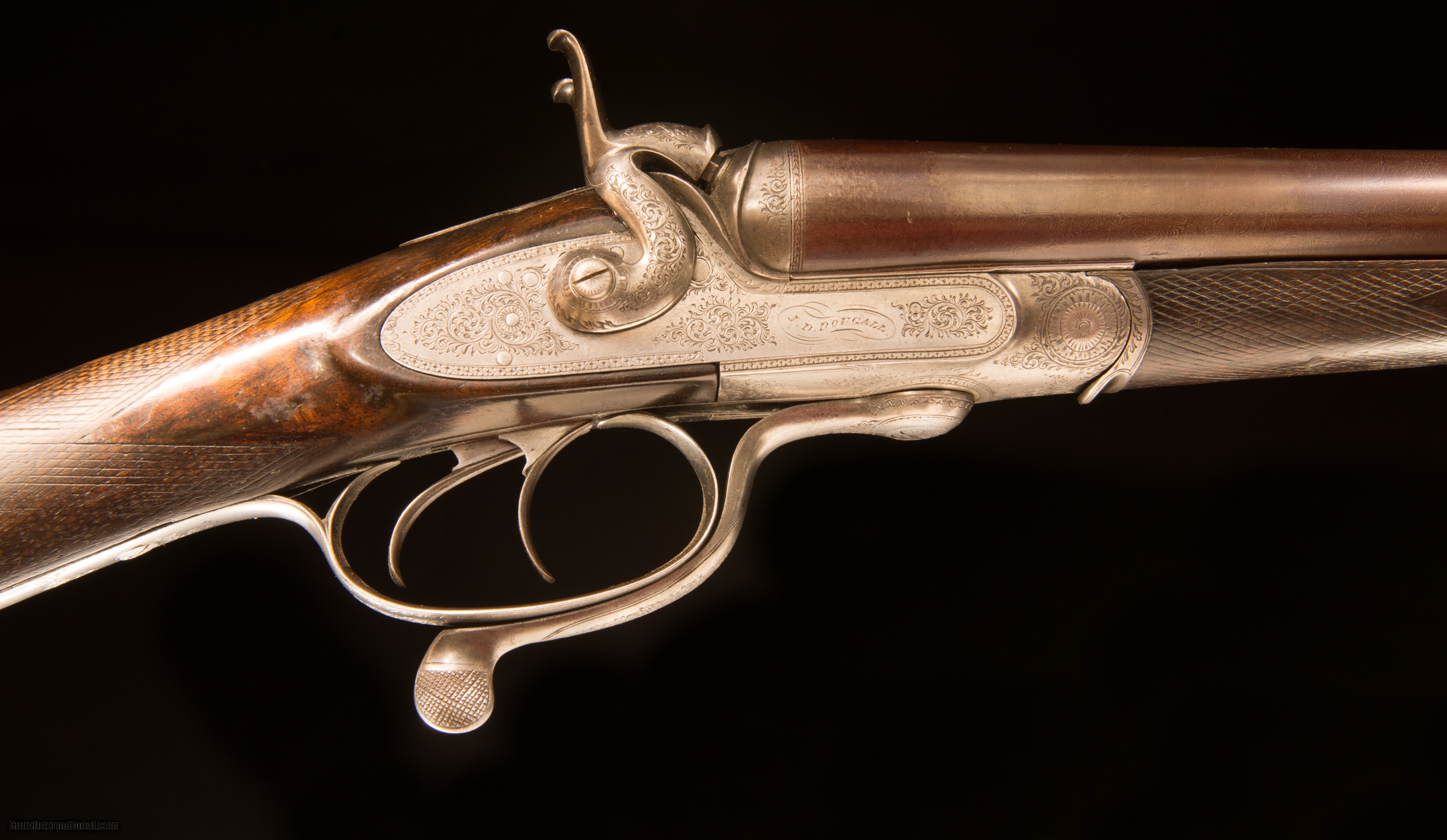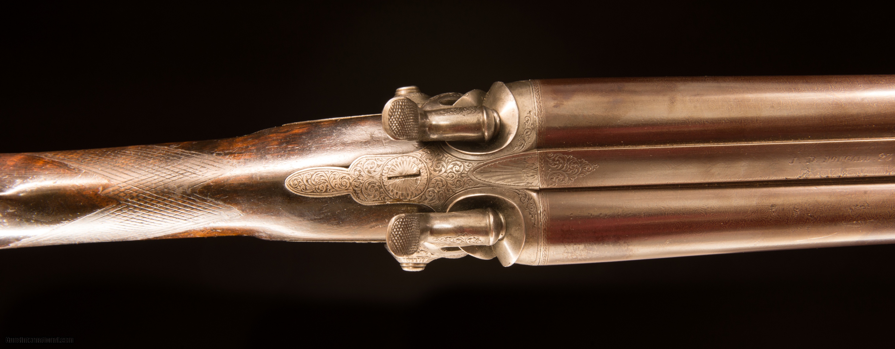 Description: Hammerguns - I love the marble cake wood on this classic. If you are unfamiliar with this English gun maker I would encourage you to look into its history as it is fascinating. Very nice quality and great barrel wall thickness. *** Note: To see this gun with high resolution photos and a zoom-in feature, go to the vintagedoubles main site and search for the gun ID: 3097 or browse the main site to see our full gun collection. SOLD Antique: Yes Manufacturer: J. D. Dougall hammer gun with great wood! Model: BEST Serial Number: NVS Ejectors: No Barrels: 30 Barrel Type: Damascus Action: bar action Gauge Info: 12 gauge Stock Comb: 1 9/16 Stock Heel: 2 3/8 Stock Cast: 0 LOP: 14 3/8 Weight: 7 lbs. 4 oz. Choke Left: .007 IC Choke Right: .002 Cylinder touche Proof:Black: 2 1/2 Minimum Wall Thickness Left: .032 Minimum Wall Thickness Right: .034 |