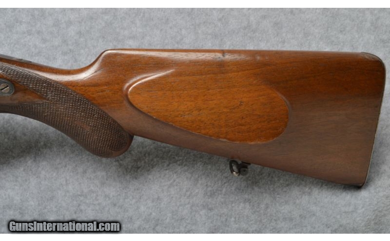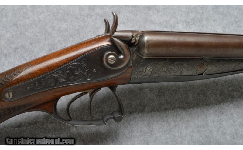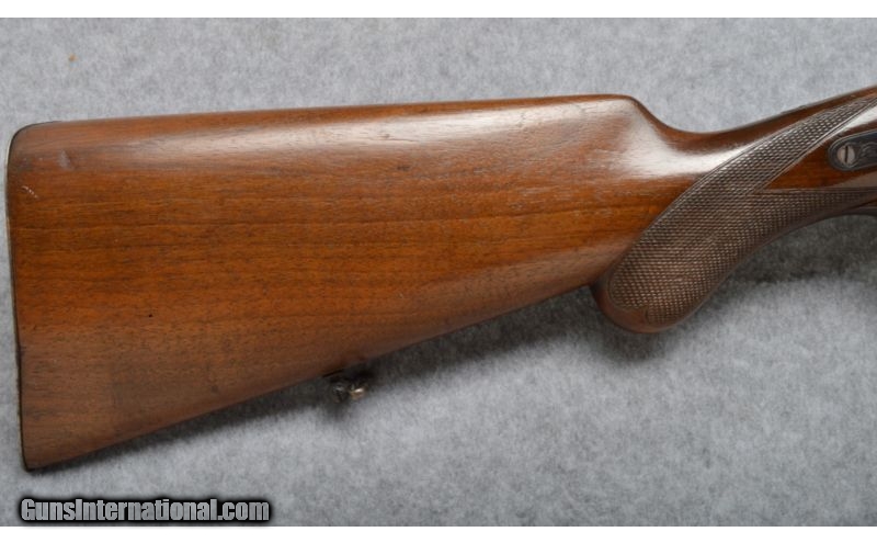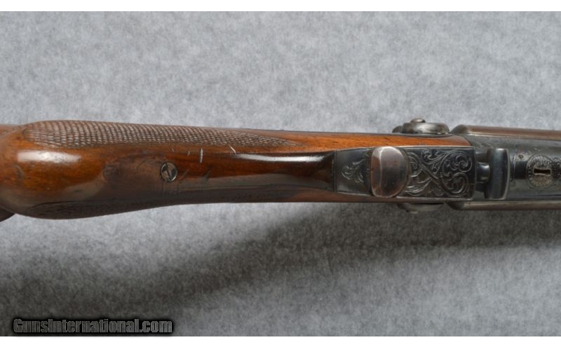 Description: Joseph Winkler vintage rabbit eared shotgun. This is a beautiful European guild gun. The engravings and fine wood colors can be seen from across the room. It is in great shape and this conversation piece can be taken off the rack and handed to another admirer for enjoyment of the wonderful craftsmanship. The barrel is stamped J. Winkler im Augsburg. SOLD Manufacturer: Augsburg Caliber Info: .20 Gauge Chambers: 2 1/2 inch, black powder Metal Condition: Dark, very little patina, ivy engraving is distinct Wood Condition: very good Bore Condition: very good Barrels: 26 inches Triggers: Double Stock: Checkered, rounded semi- grip with right handed cheek piece Stock Dimensions: LOP 13 3/4 in. Fore End: ivy engraved metal, fore end is also the barrel break lever. Butt Pad: Metal plate Weight: 7 Lbs Sights: Blade front, notch middle Item Location: Fort Mill, SC |