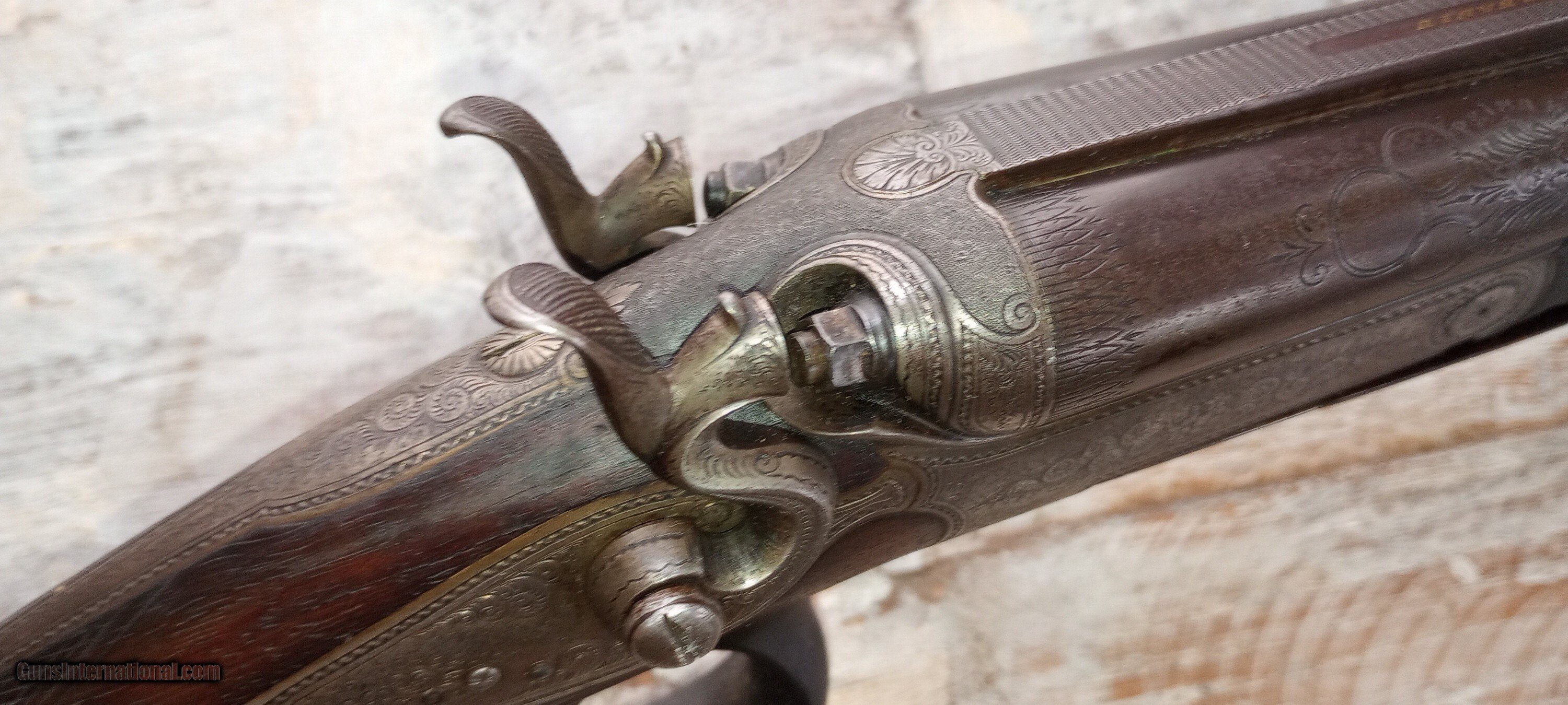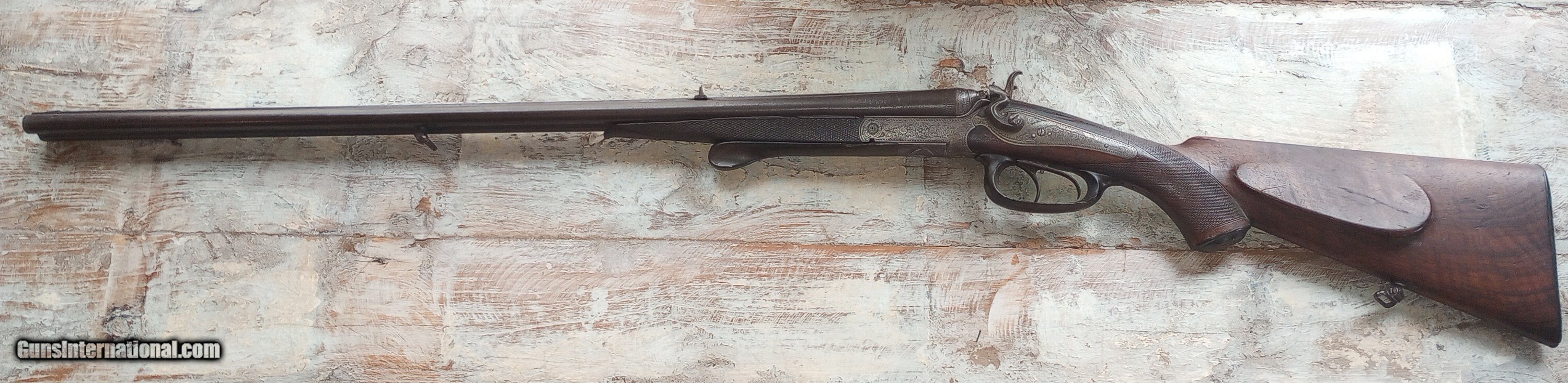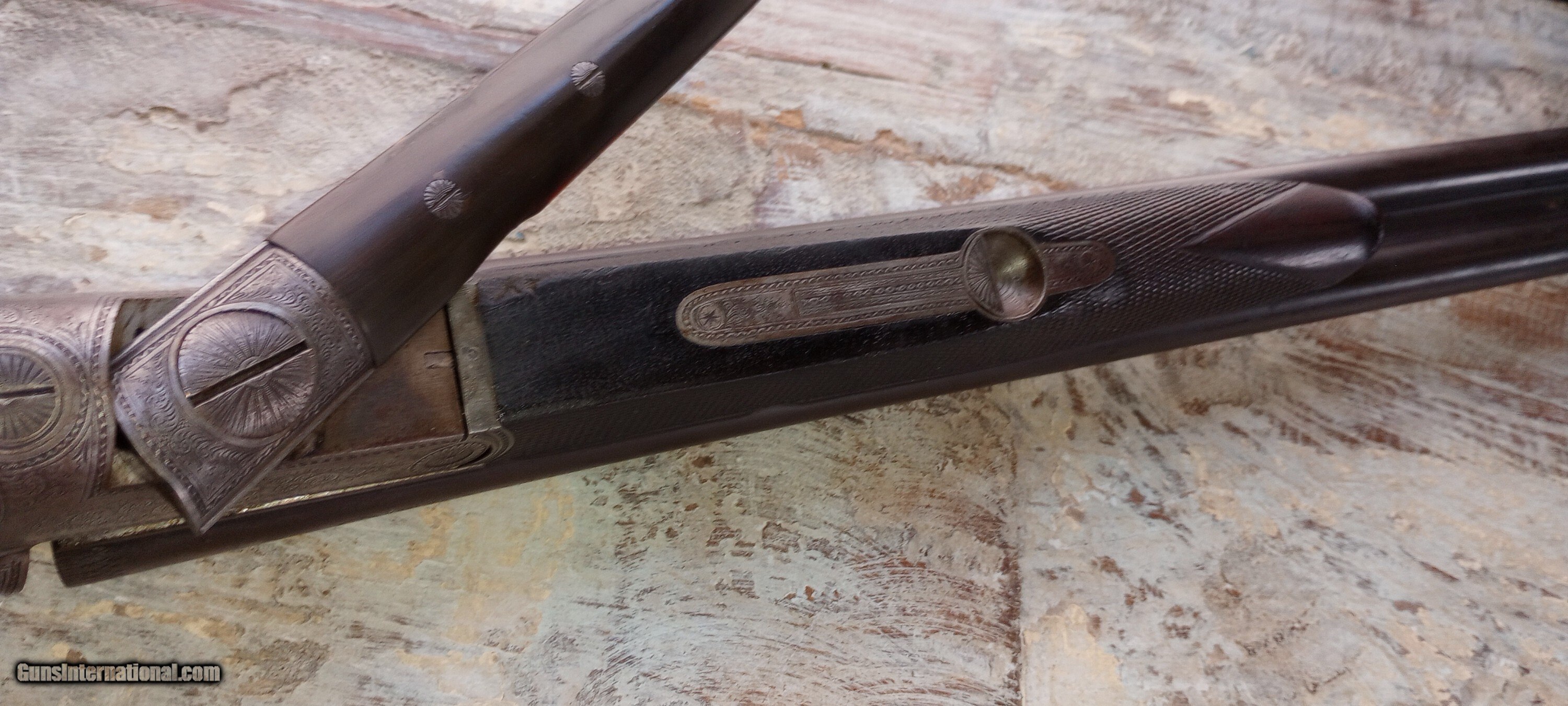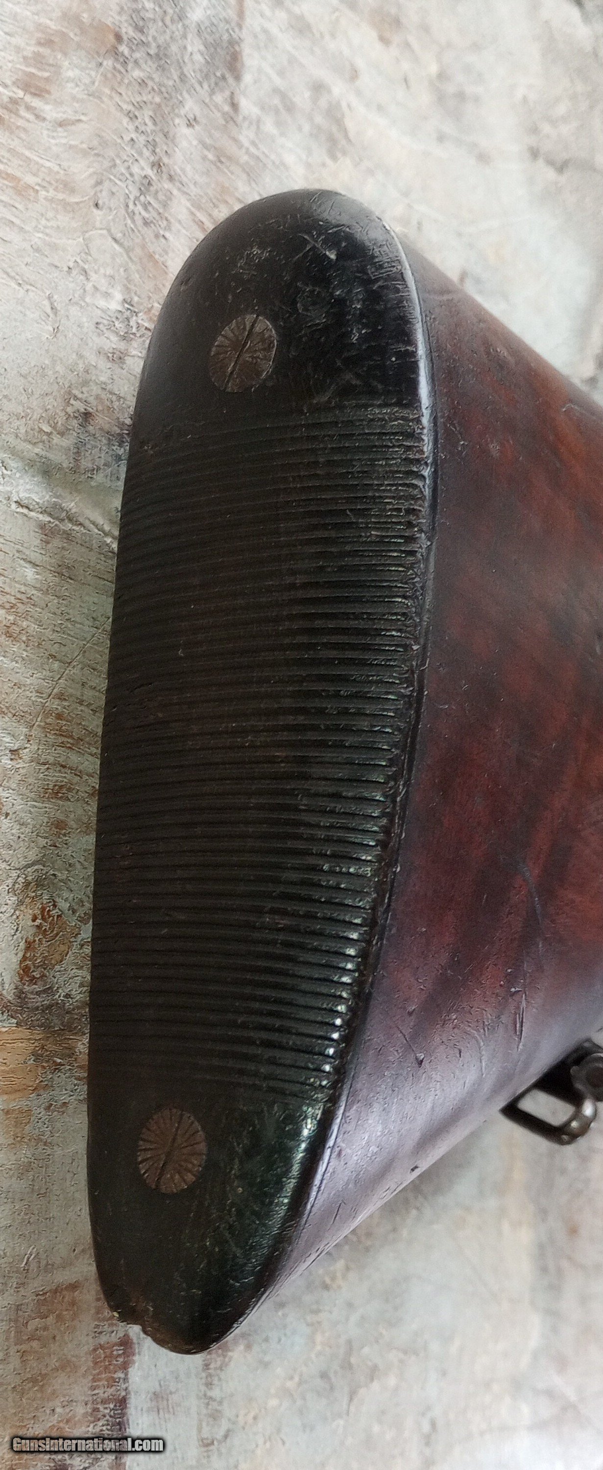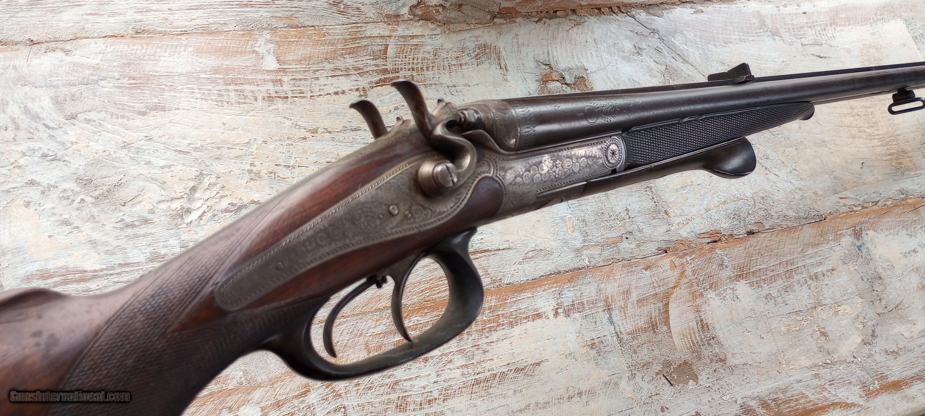 Description: 1800s Antique Jan Specht W Poznaniu 41 Caliber (?) Double Hammer, Double Trigger, Hammer / Firing Pin Action (Cartridge) Rifle. 25.5" Rifled Barrels, Prima Wittener Stahl model, heavily engraved. Hammers, Triggers, Barrels Release and Ejectors all work smoothly and tightly. Functions very well. All metal is in very good shape and patina is consistent with age. No rust. Wooden stock is dinged up a bit on both sides and has been repaired in the past but I really condition of wood is still quite nice. Please examine all photos carefully and please contact Chris B at Double Barreled Enterprises LLC via email phone or text with questions. $75.00 covers all packing shipping and insurance costs. 2.8% credit card fee. All major credit cards accepted. Asking $3900.00 Antique: Yes Manufacturer: Jan Specht Model: Prima Wittener Barrel Length: 25.5 Condition: Very good Metal Condition: Very good Wood Condition: Good Bore Condition: Good Price: $3,900.00 Shipping: $75.00 Contact Seller |