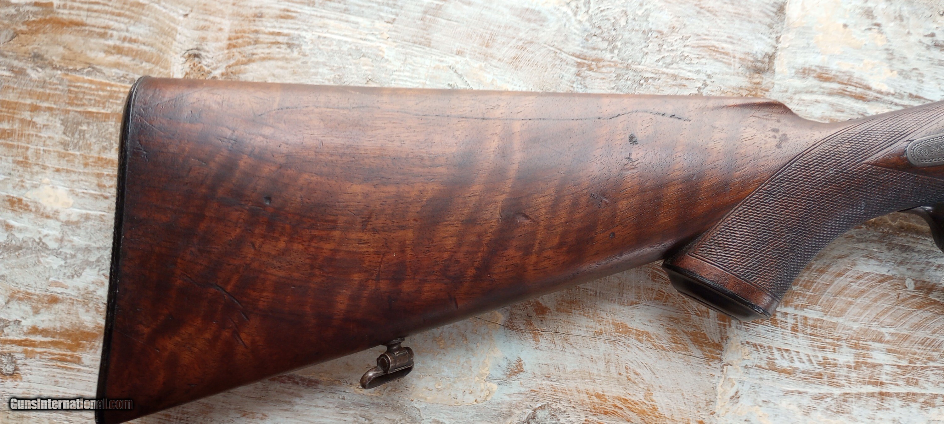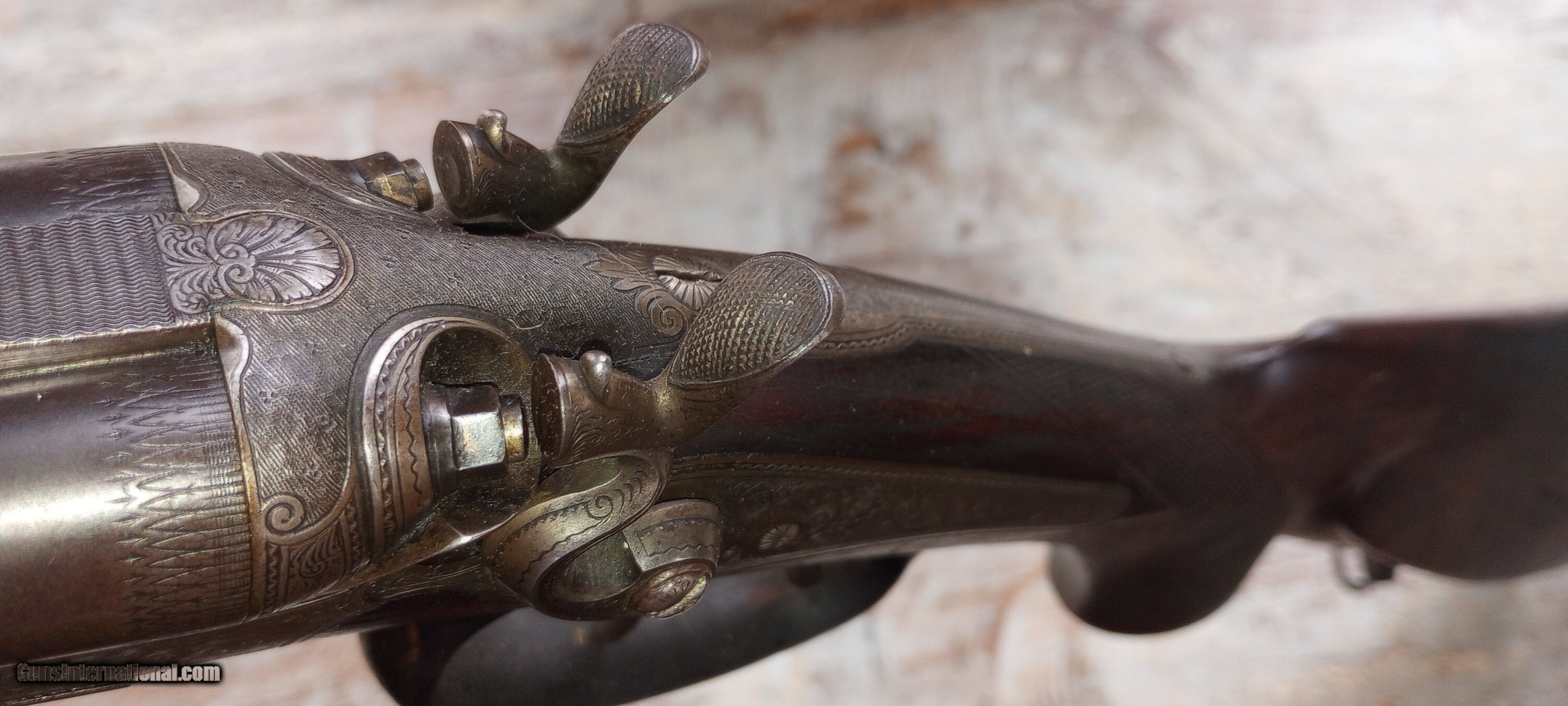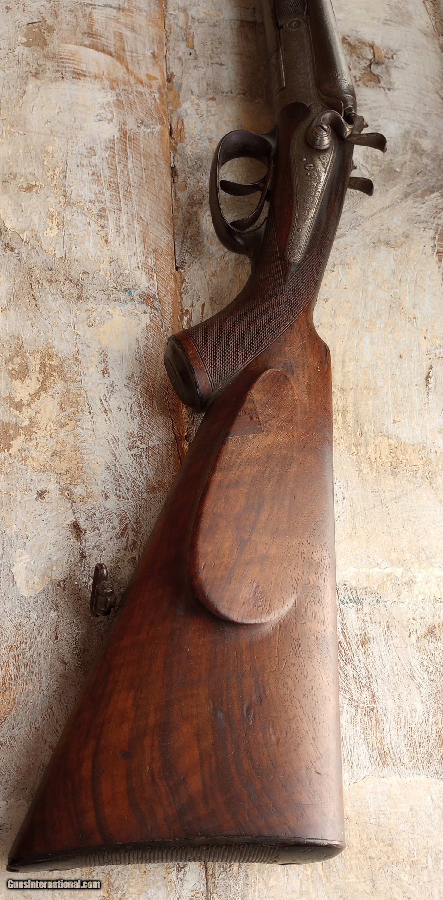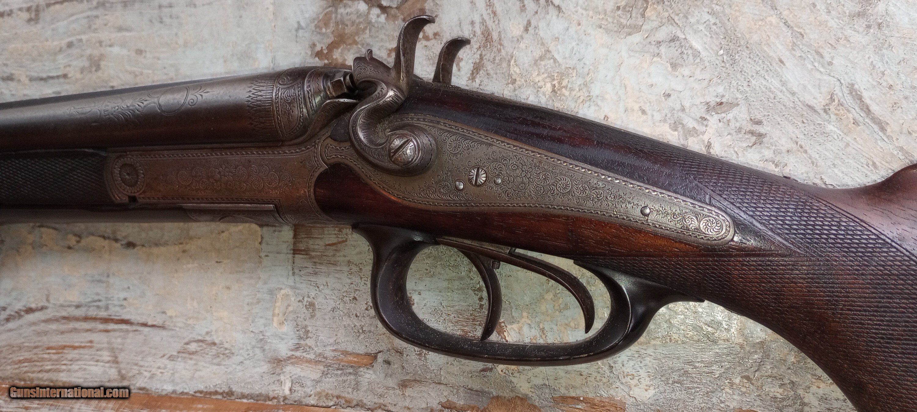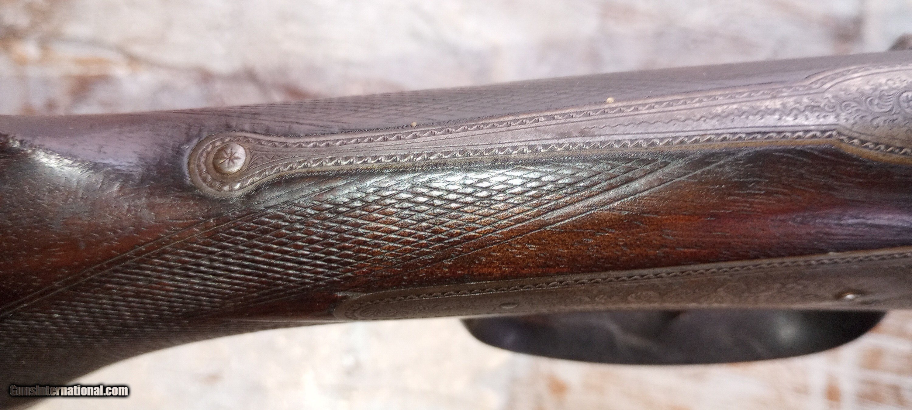 Description: 1800s Antique Jan Specht W Poznaniu 41 Caliber (?) Double Hammer, Double Trigger, Hammer / Firing Pin Action (Cartridge) Rifle. 25.5" Rifled Barrels, Prima Wittener Stahl model, heavily engraved. Hammers, Triggers, Barrels Release and Ejectors all work smoothly and tightly. Functions very well. All metal is in very good shape and patina is consistent with age. No rust. Wooden stock is dinged up a bit on both sides and has been repaired in the past but I really condition of wood is still quite nice. Please examine all photos carefully and please contact Chris B at Double Barreled Enterprises LLC via email phone or text with questions. $75.00 covers all packing shipping and insurance costs. 2.8% credit card fee. All major credit cards accepted. Asking $3900.00 Antique: Yes Manufacturer: Jan Specht Model: Prima Wittener Barrel Length: 25.5 Condition: Very good Metal Condition: Very good Wood Condition: Good Bore Condition: Good Price: $3,900.00 Shipping: $75.00 Contact Seller |