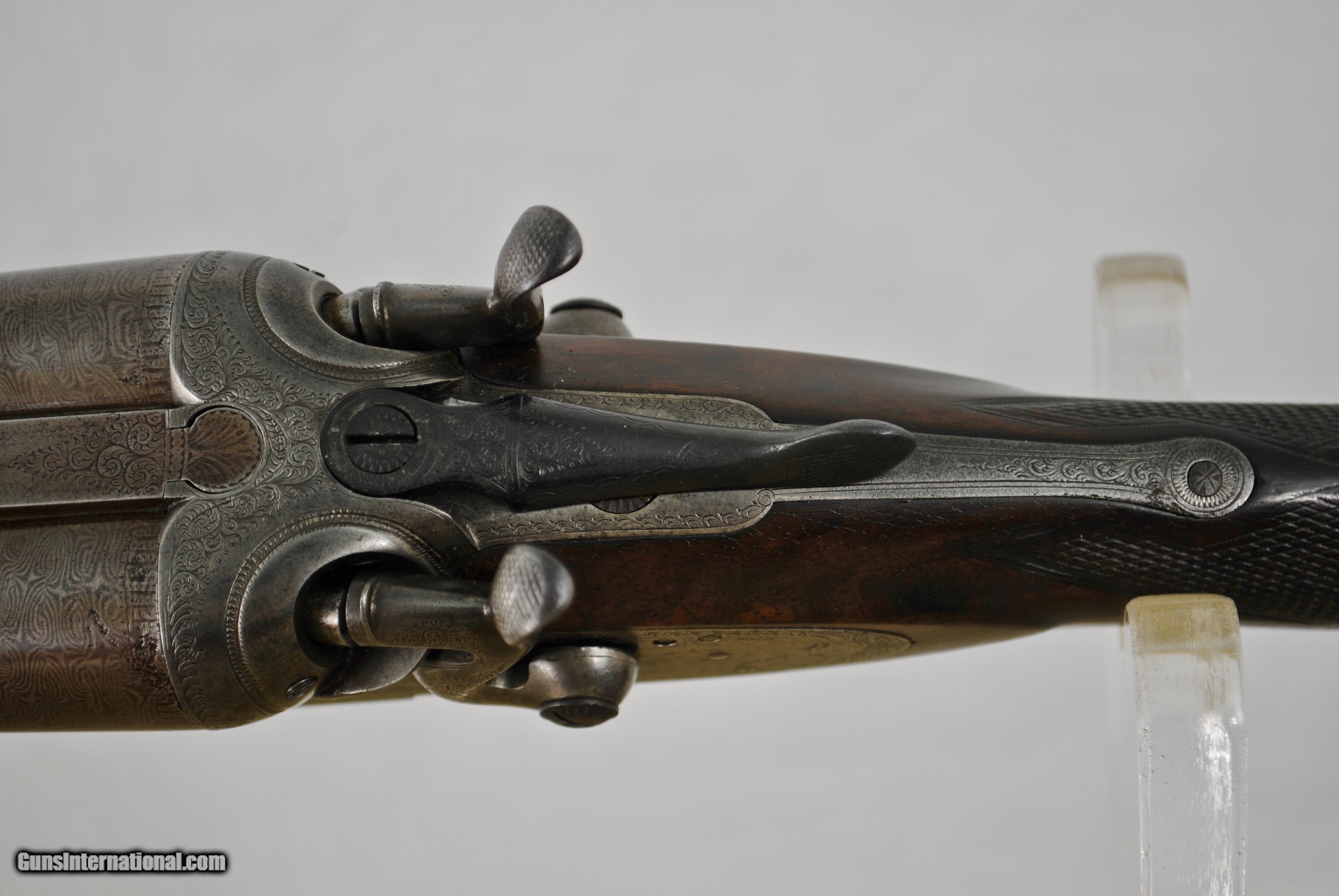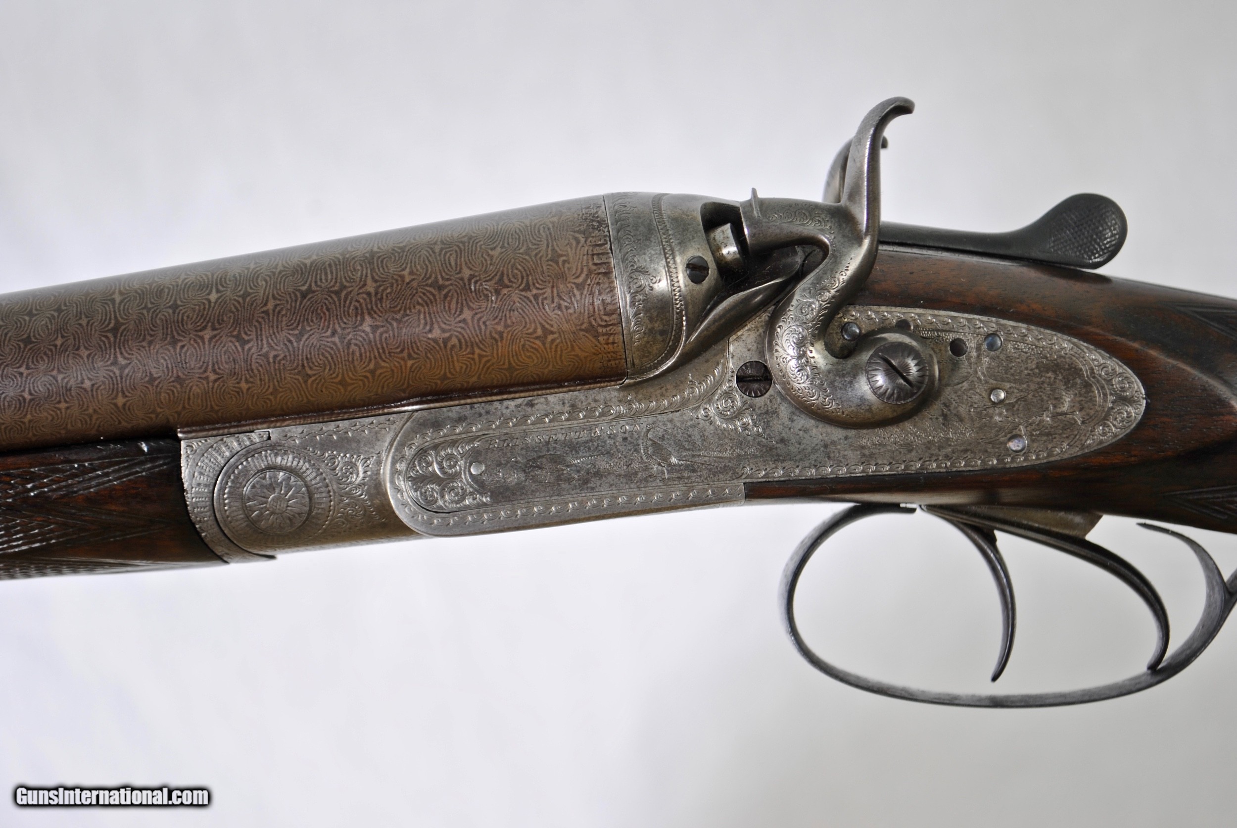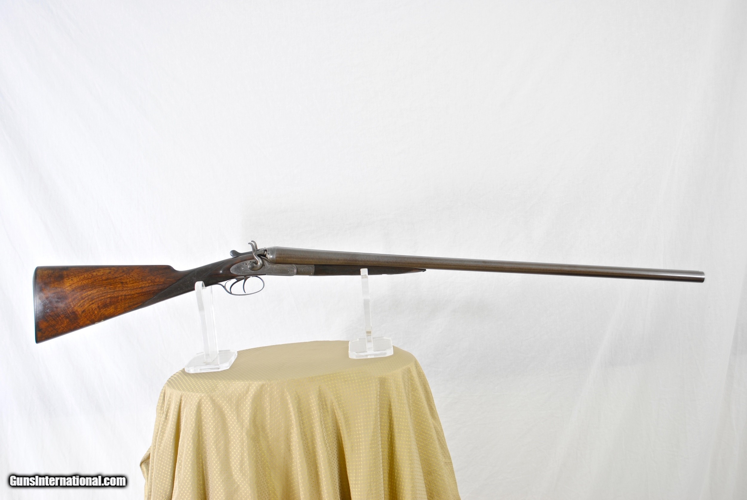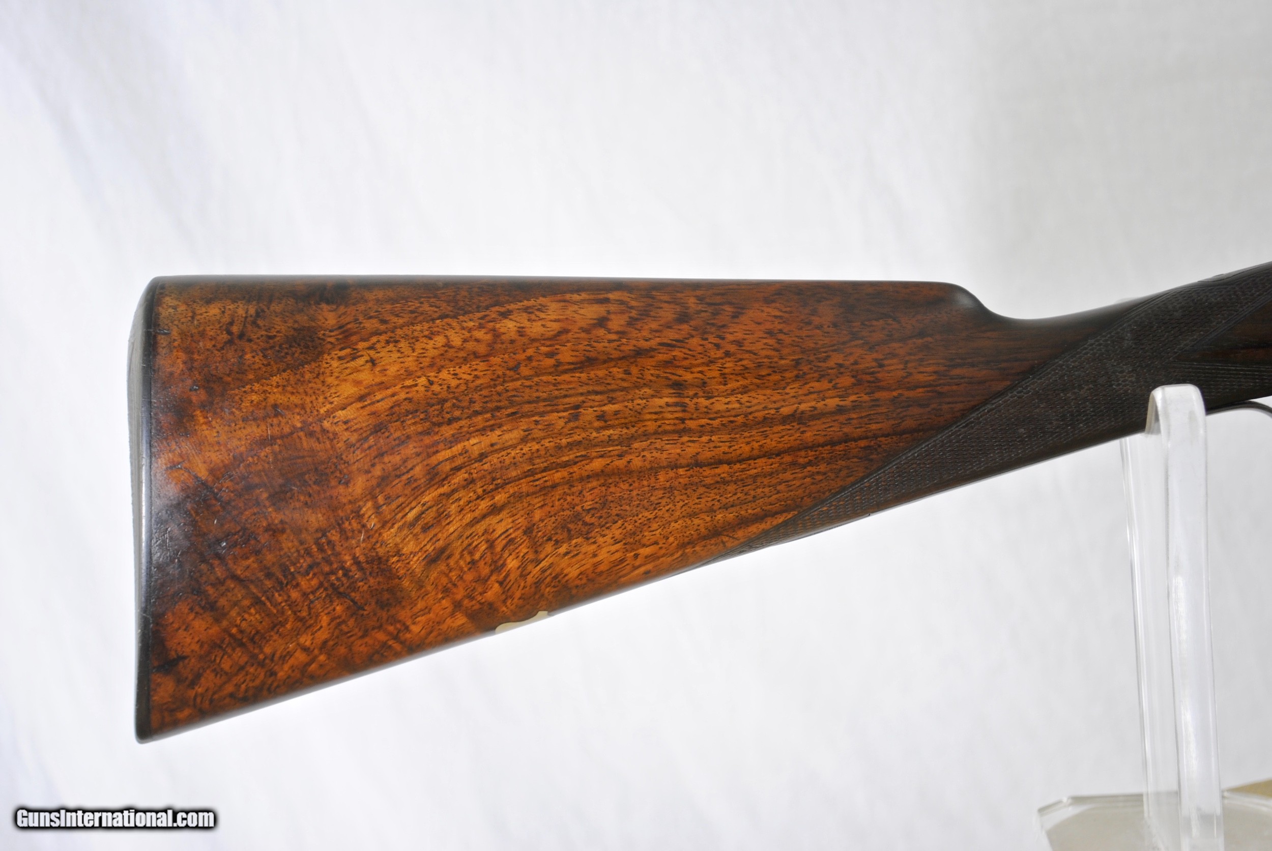 Description: Here is an John Blissett & Son 12 gauge London made hammer gun with fine game scene engraving. This antique piece features 30" Nitro Proofed Barrels with mirror bores. Completely restored in the UK and has 100% damascus finish on the barrels. Mirror bores with chambers measuring 2 3/4". Right barrel measures .740 with Light Mod Choke of 15/1000. Left barrel is .733 with Full Choke of 38/1000. Gun is very tight on face. No loose ribs. Clean breech face. Straight grip stock with long trigger guard tang and horn butt plate. Hammers are rebounding. Nicely carved clam shell fences. Weight is a "perfect" 6 LBS 6 1/2 OZ. Made in the 1860-1870s time period and as such would be classified as an antique and qualify to be shipped directly as local law allows (No NJ or NYC). Shipping is $40. Stock dimensions follow. LOP - 14 3/8" Drop at Comb - 1 9/16" Drop at Heel - 2 1/8" For inquiries please call Guy - 407-721-3748 SOLD |