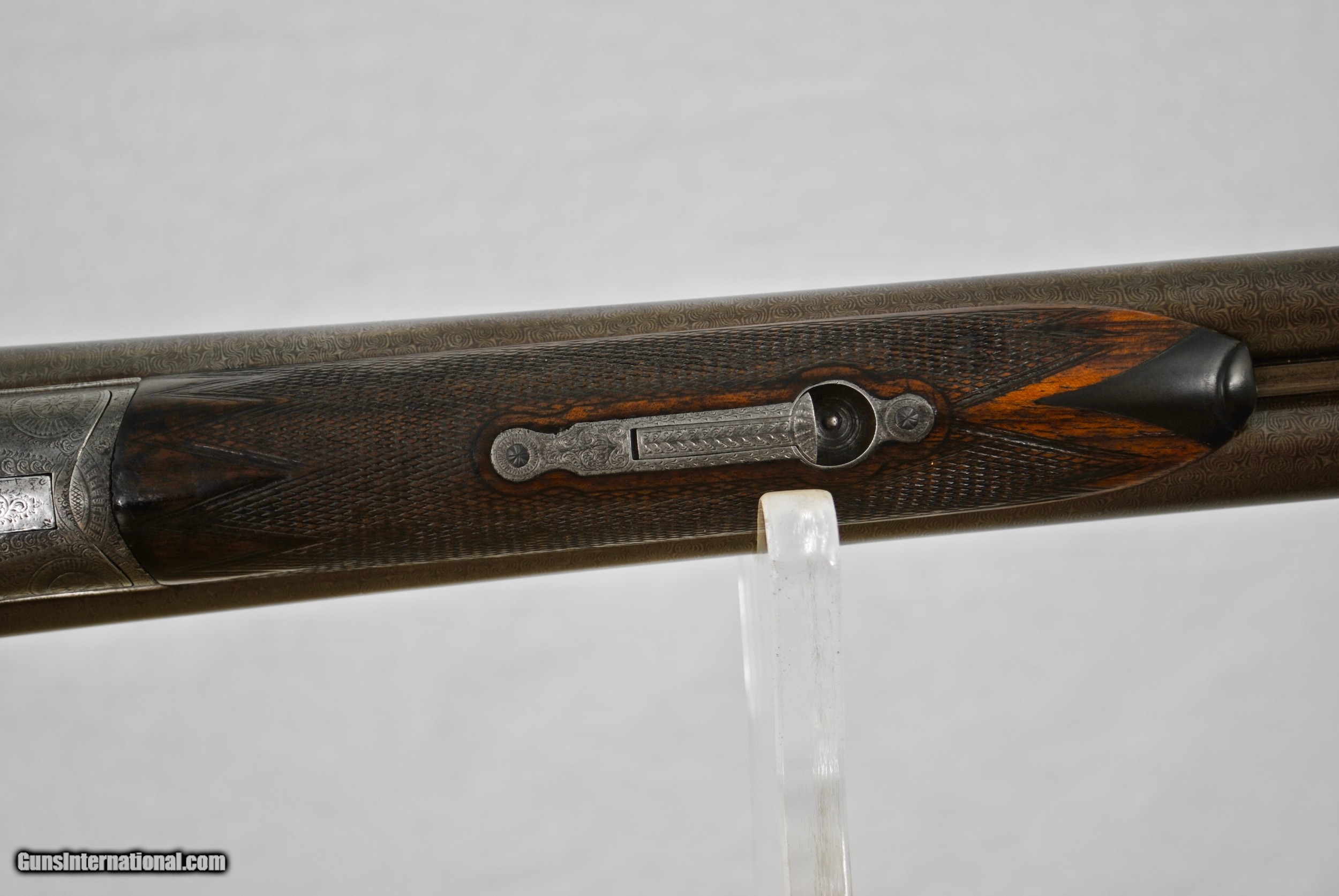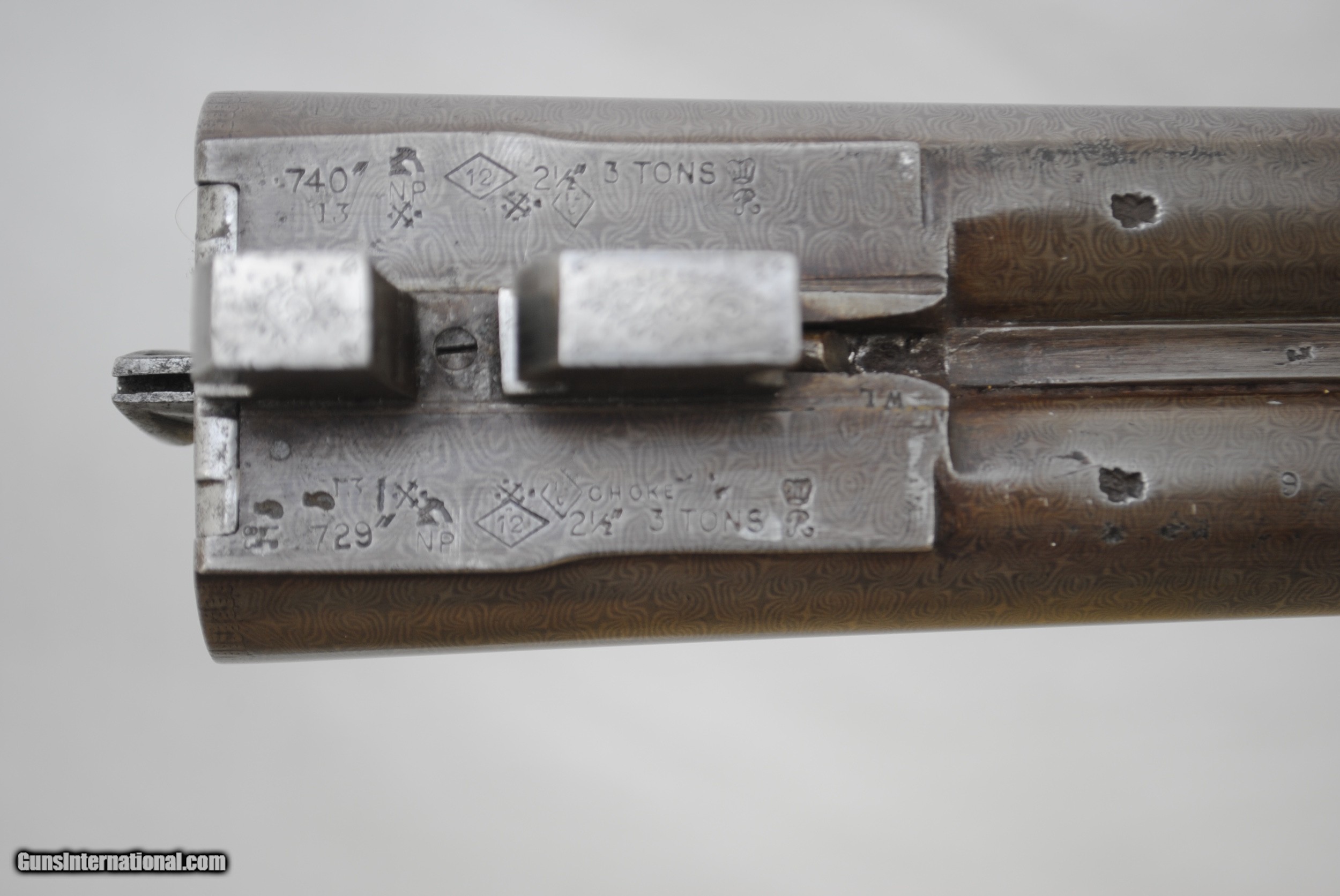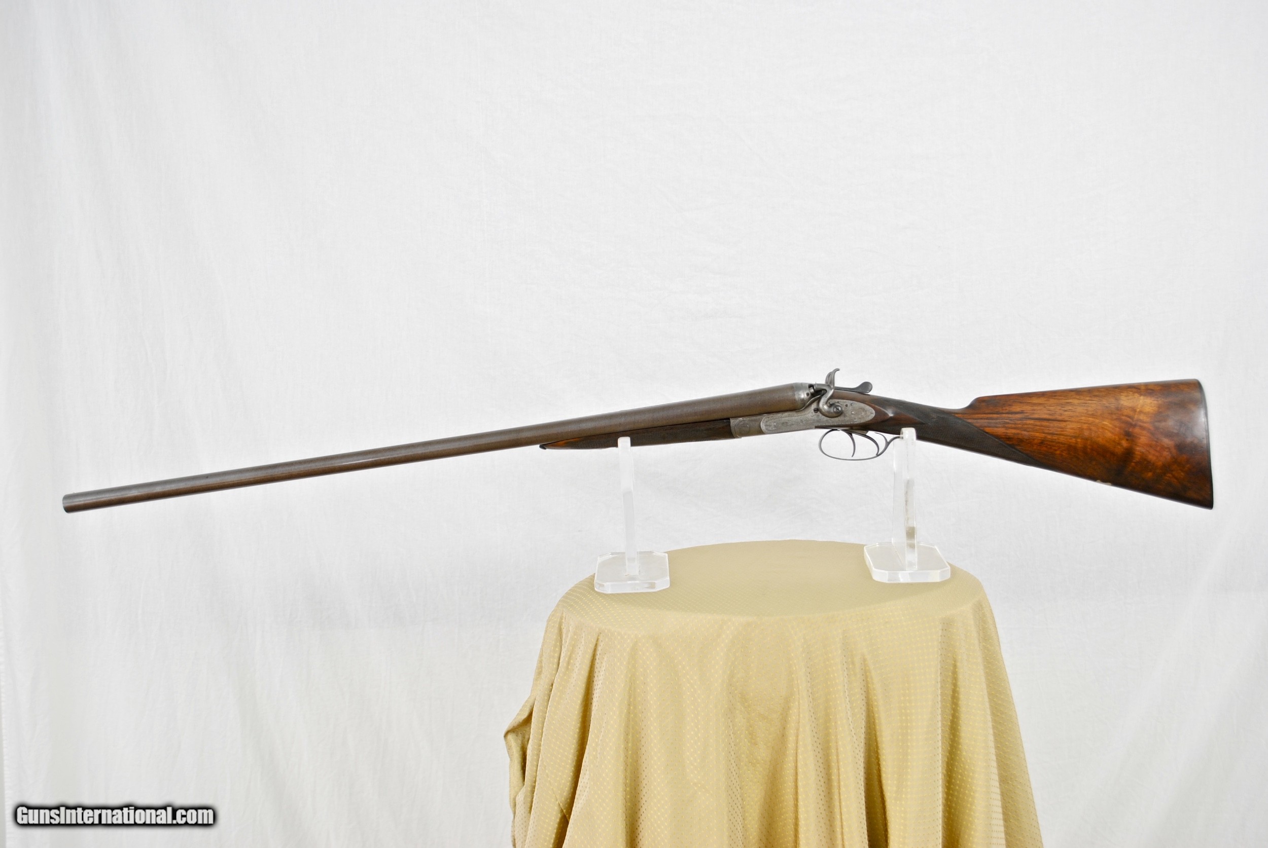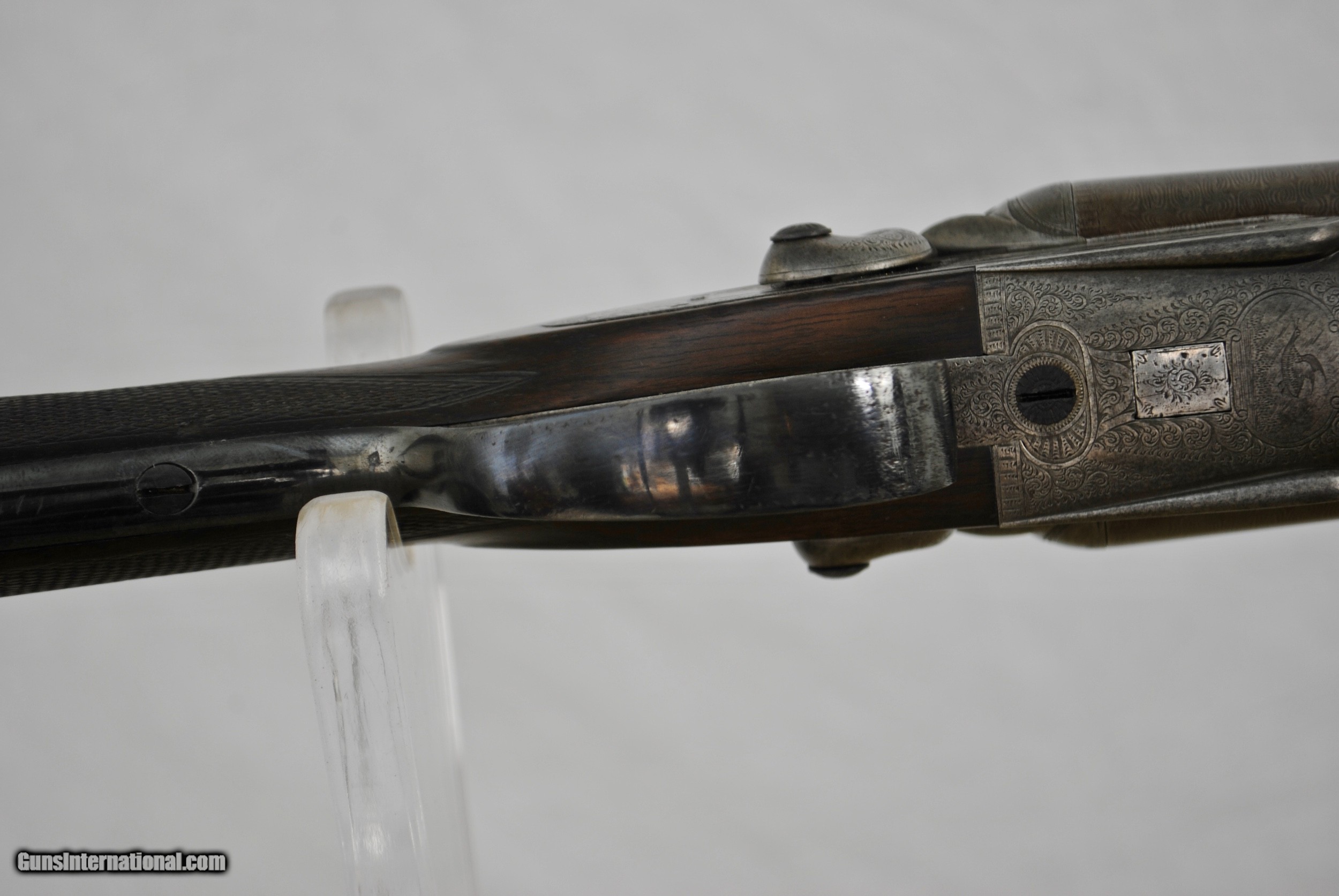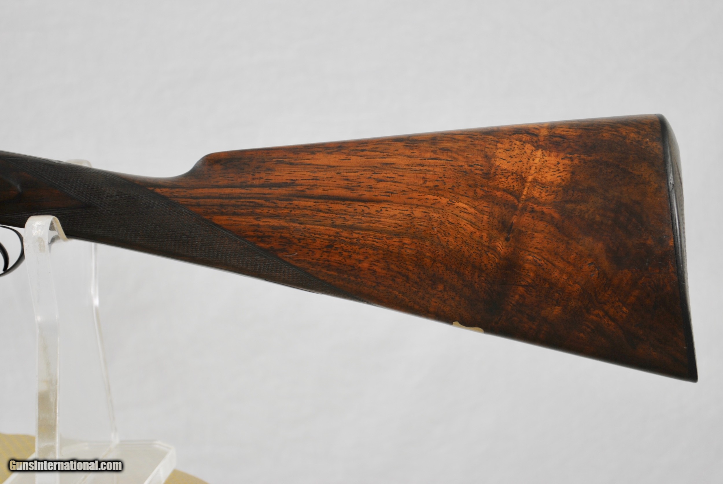 Description: Here is an John Blissett & Son 12 gauge London made hammer gun with fine game scene engraving. This antique piece features 30" Nitro Proofed Barrels with mirror bores. Completely restored in the UK and has 100% damascus finish on the barrels. Mirror bores with chambers measuring 2 3/4". Right barrel measures .740 with Light Mod Choke of 15/1000. Left barrel is .733 with Full Choke of 38/1000. Gun is very tight on face. No loose ribs. Clean breech face. Straight grip stock with long trigger guard tang and horn butt plate. Hammers are rebounding. Nicely carved clam shell fences. Weight is a "perfect" 6 LBS 6 1/2 OZ. Made in the 1860-1870s time period and as such would be classified as an antique and qualify to be shipped directly as local law allows (No NJ or NYC). Shipping is $40. Stock dimensions follow. LOP - 14 3/8" Drop at Comb - 1 9/16" Drop at Heel - 2 1/8" For inquiries please call Guy - 407-721-3748 SOLD |