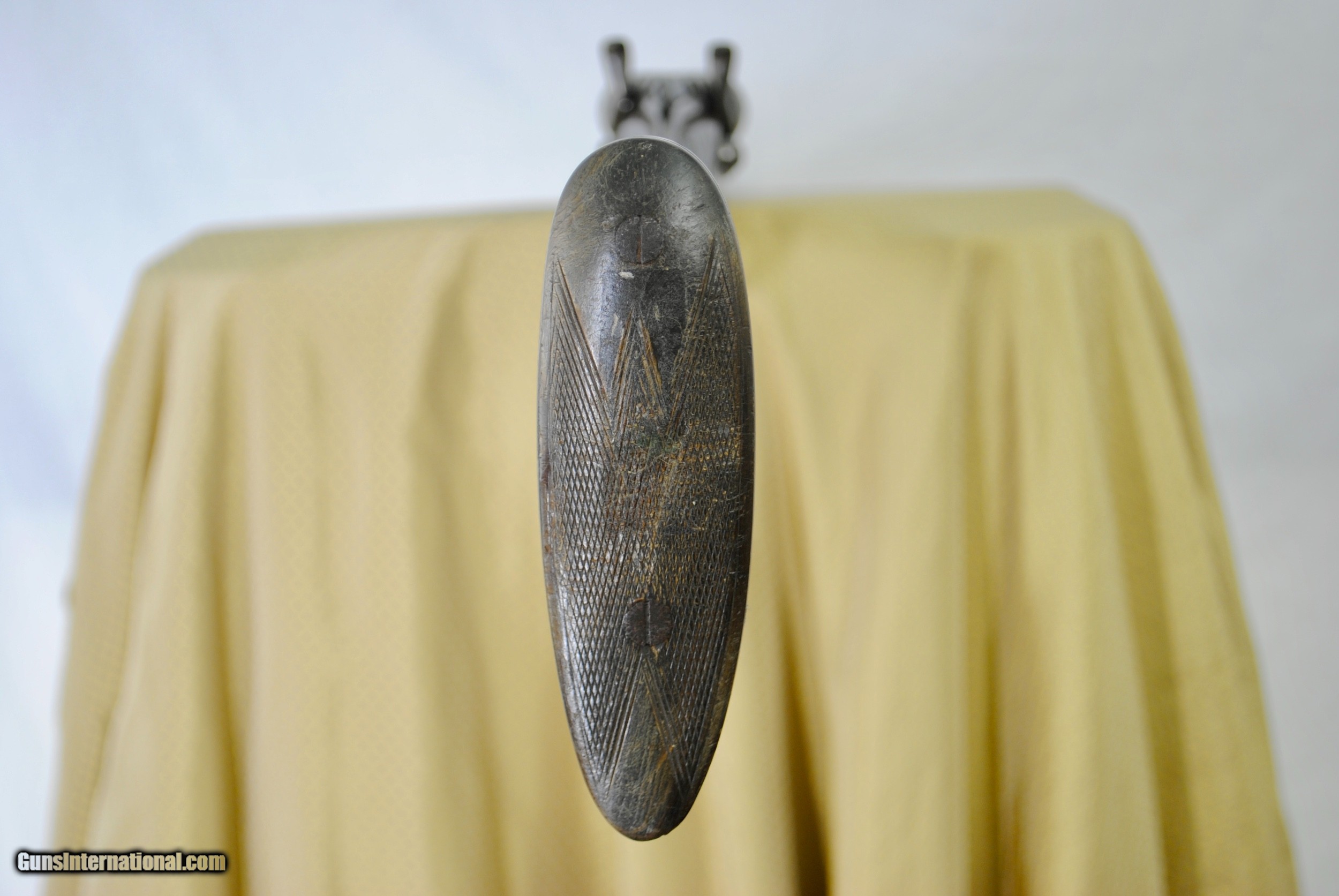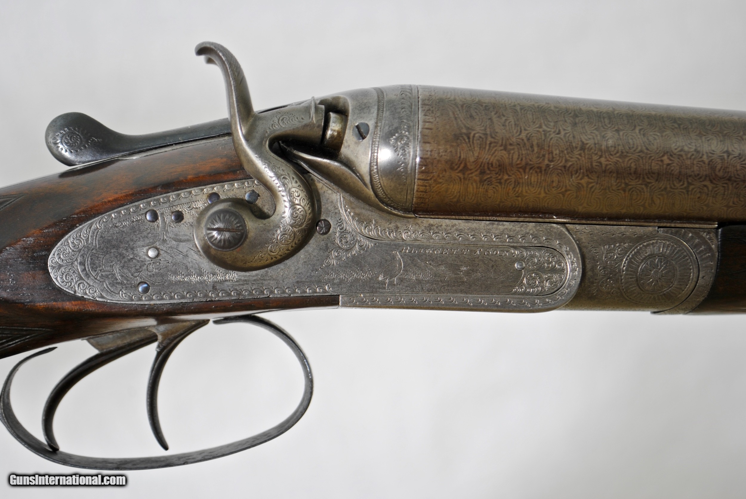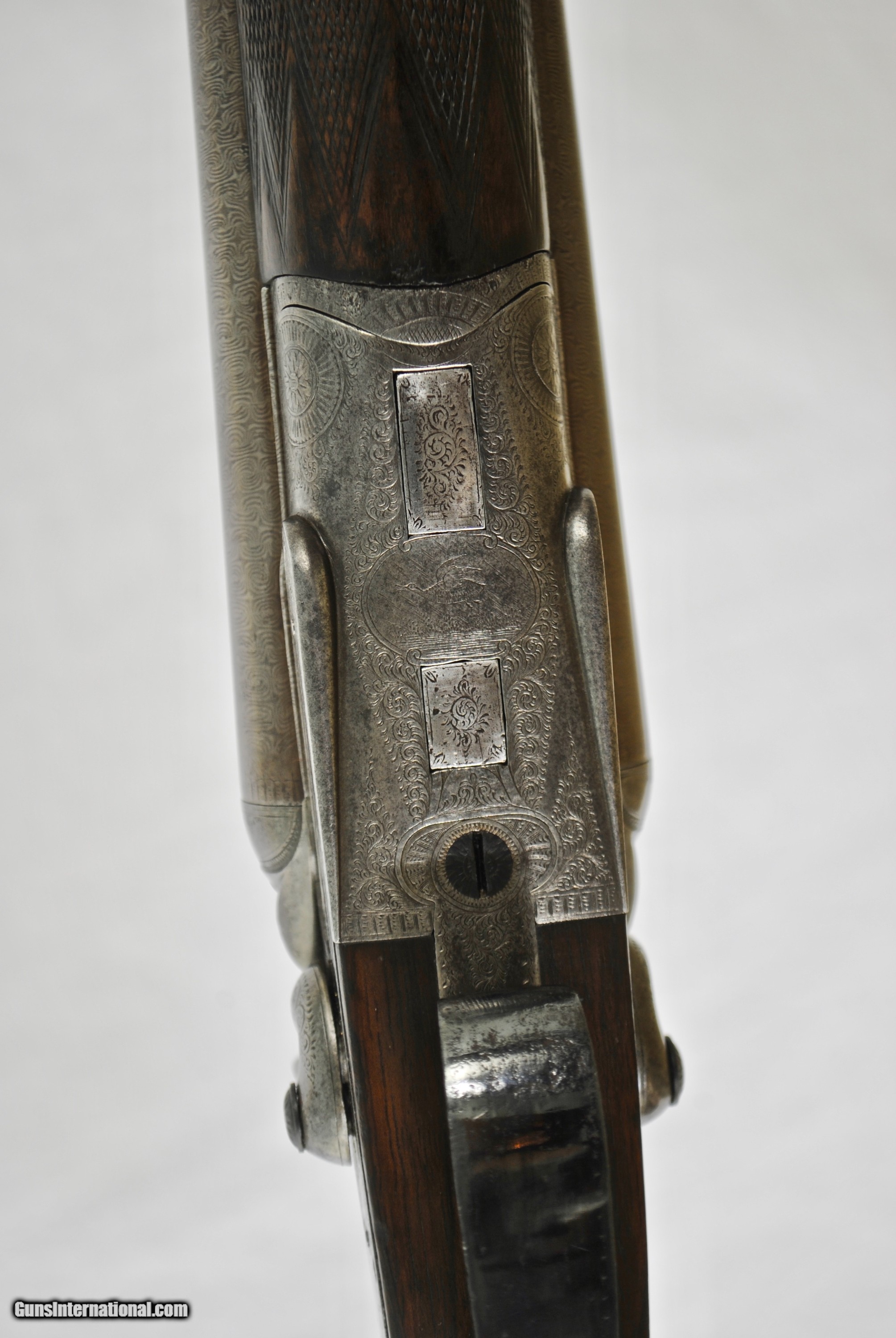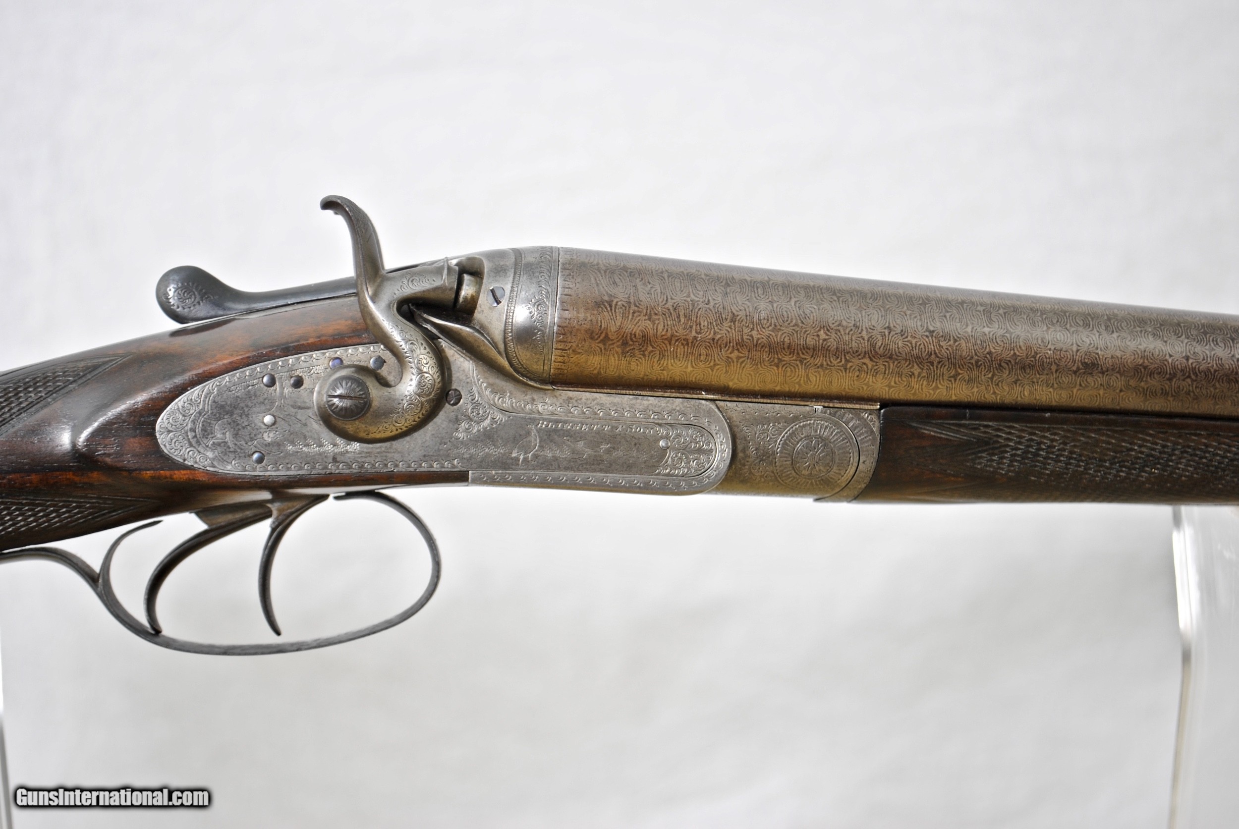 Description: Here is an John Blissett & Son 12 gauge London made hammer gun with fine game scene engraving. This antique piece features 30" Nitro Proofed Barrels with mirror bores. Completely restored in the UK and has 100% damascus finish on the barrels. Mirror bores with chambers measuring 2 3/4". Right barrel measures .740 with Light Mod Choke of 15/1000. Left barrel is .733 with Full Choke of 38/1000. Gun is very tight on face. No loose ribs. Clean breech face. Straight grip stock with long trigger guard tang and horn butt plate. Hammers are rebounding. Nicely carved clam shell fences. Weight is a "perfect" 6 LBS 6 1/2 OZ. Made in the 1860-1870s time period and as such would be classified as an antique and qualify to be shipped directly as local law allows (No NJ or NYC). Shipping is $40. Stock dimensions follow. LOP - 14 3/8" Drop at Comb - 1 9/16" Drop at Heel - 2 1/8" For inquiries please call Guy - 407-721-3748 SOLD |
