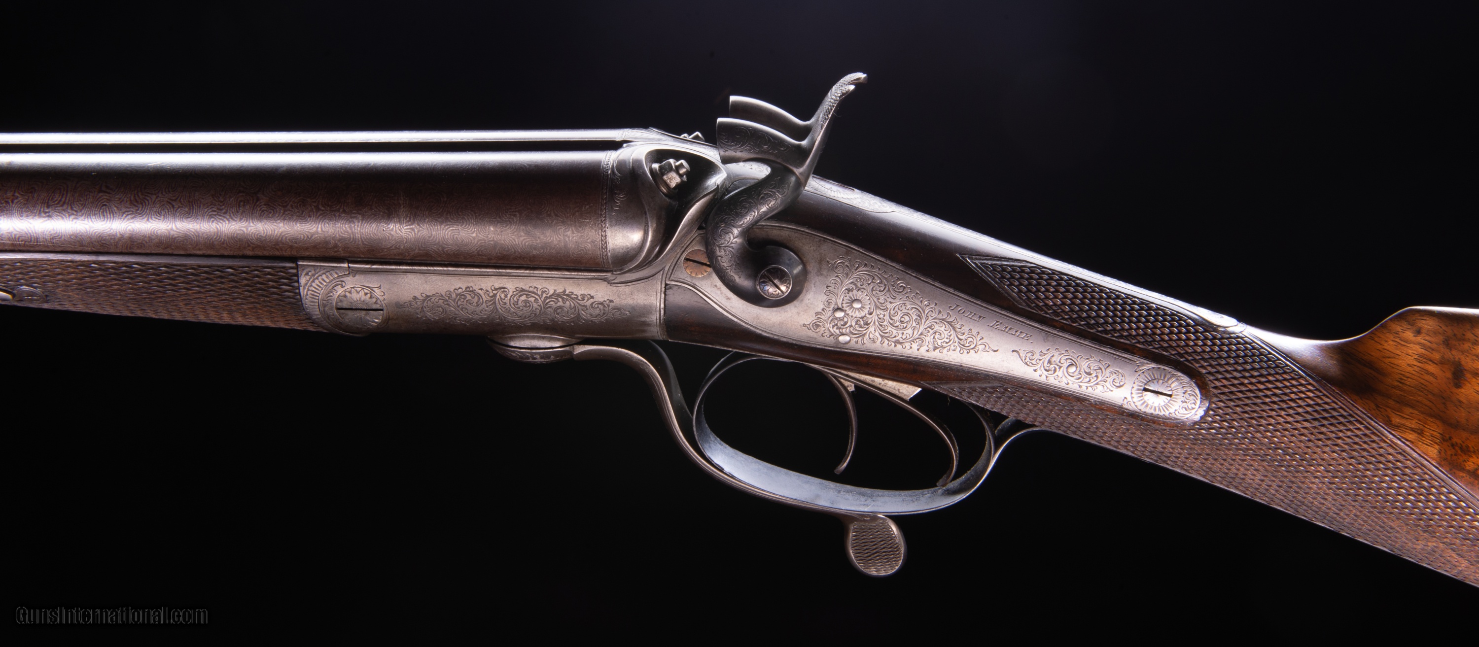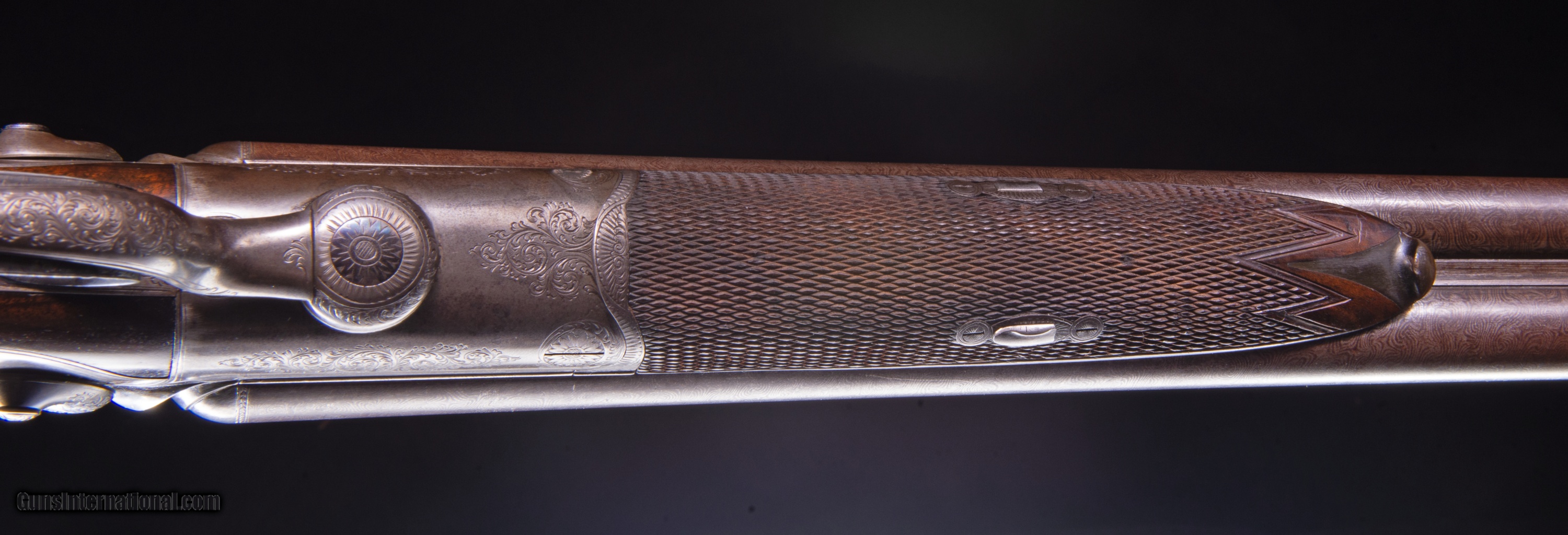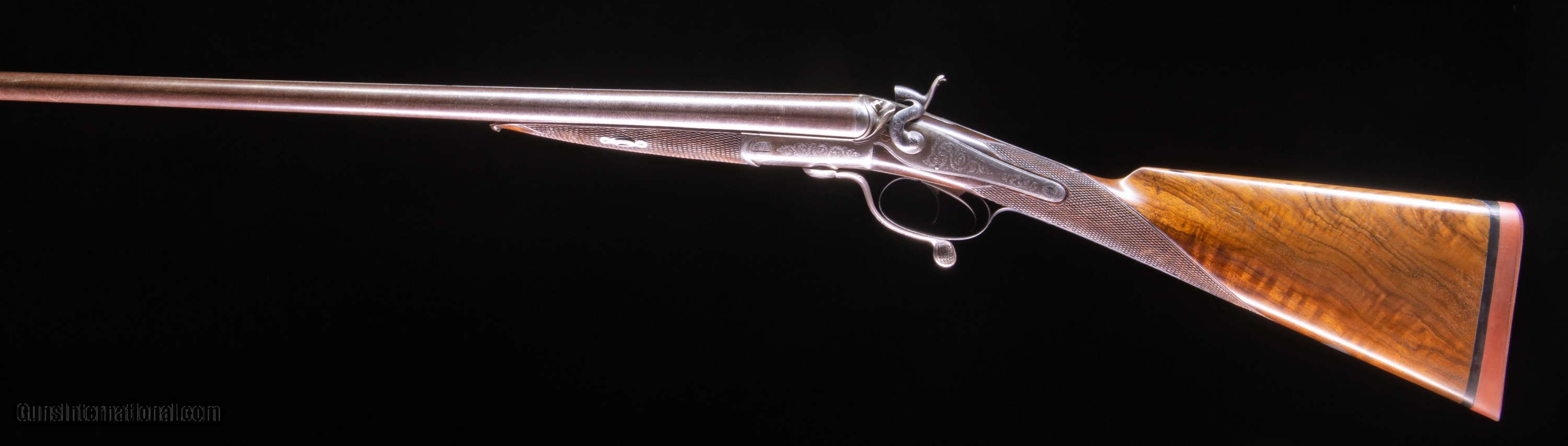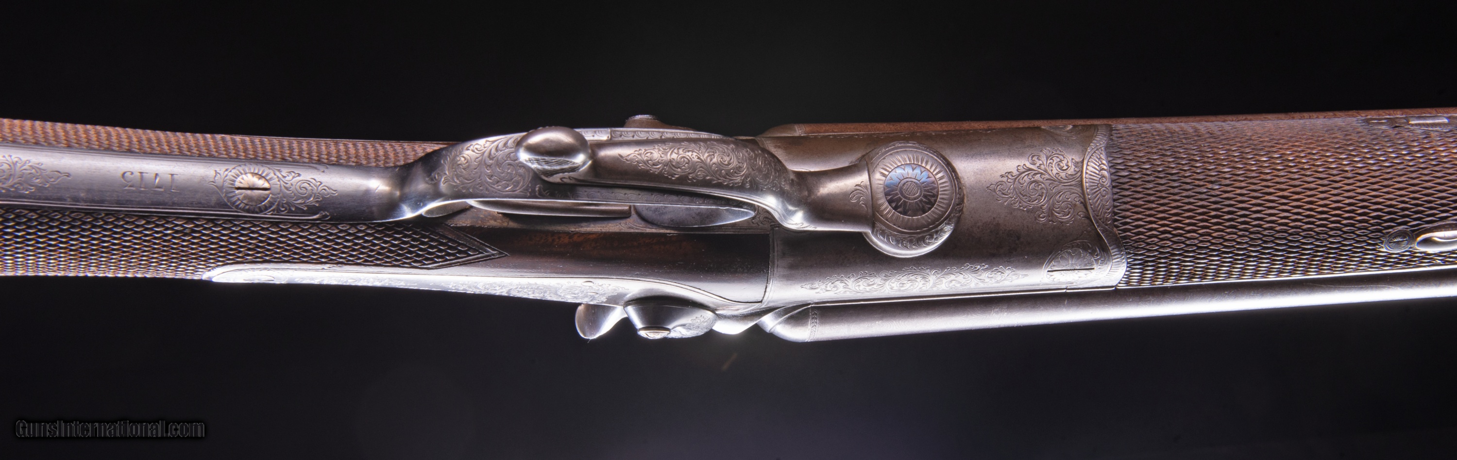 Description: Hammerguns - A heavier 16g. hammer gun with long 30" barrels that would be perfect for competition at a vintager type clay event. There is some light pitting in places in the bores but nothing serious. The bore diameters still measure exactly where they were when nitro proofed. *** Note: To see this gun with high resolution photos and a zoom-in feature, go to the vintagedoubles main site and search for the gun ID: 5320 or browse the main site to see our full gun collection. SOLD Manufacturer: John Emme 16g. British Hammer double and nitro proofed! Model: None Serial Number: 1713 Ejectors: No Barrels: 30 Barrel Type: Damascus Action: Underlever with non-rebounding hammers Gauge Info: 16 gauge Stock Comb: 1 9/16 Stock Heel: 2 1/8 Stock Cast: 1/8 LOP: 13 7/8" with pa Weight: 7 lb 1.5 ozs Choke Left: .001 Choke Right: .008 Proof:Nitro: 2 1/2 Minimum Wall Thickness Left: .028 Minimum Wall Thickness Right: .030 |