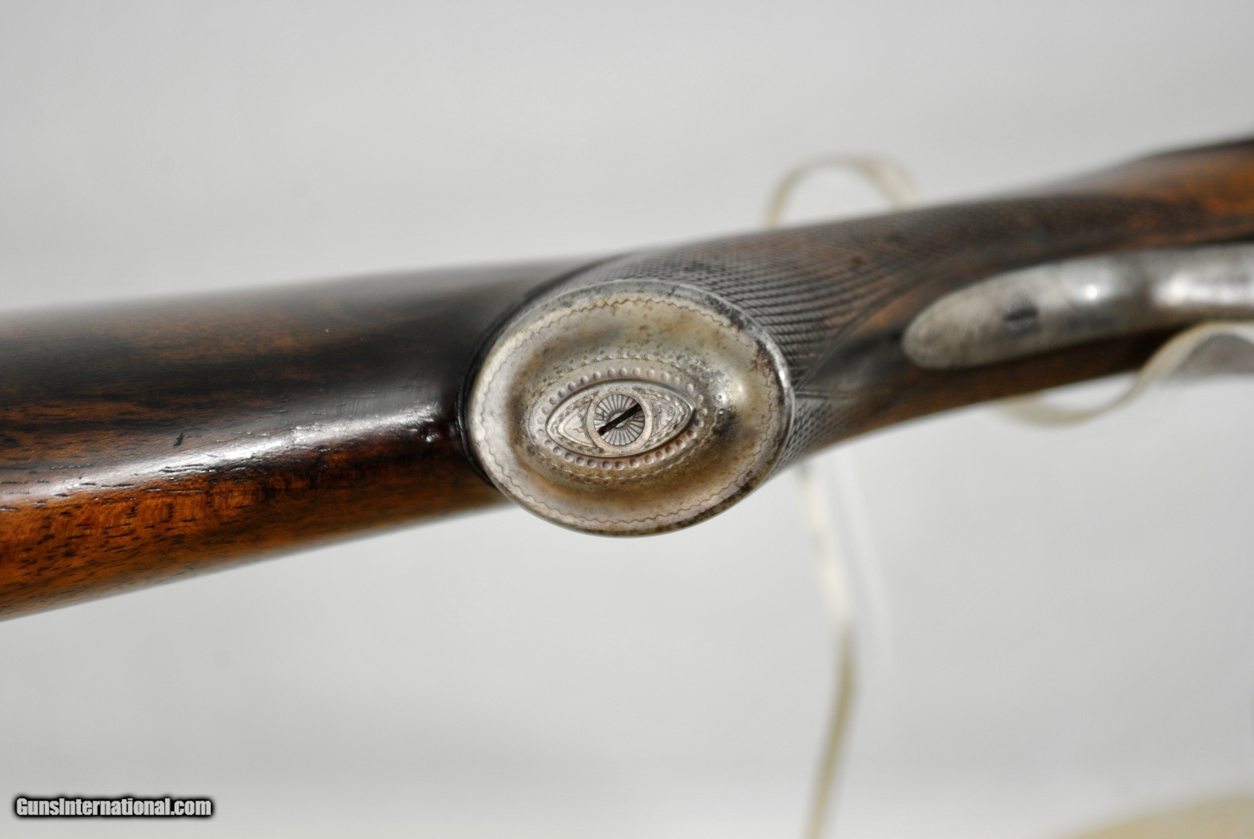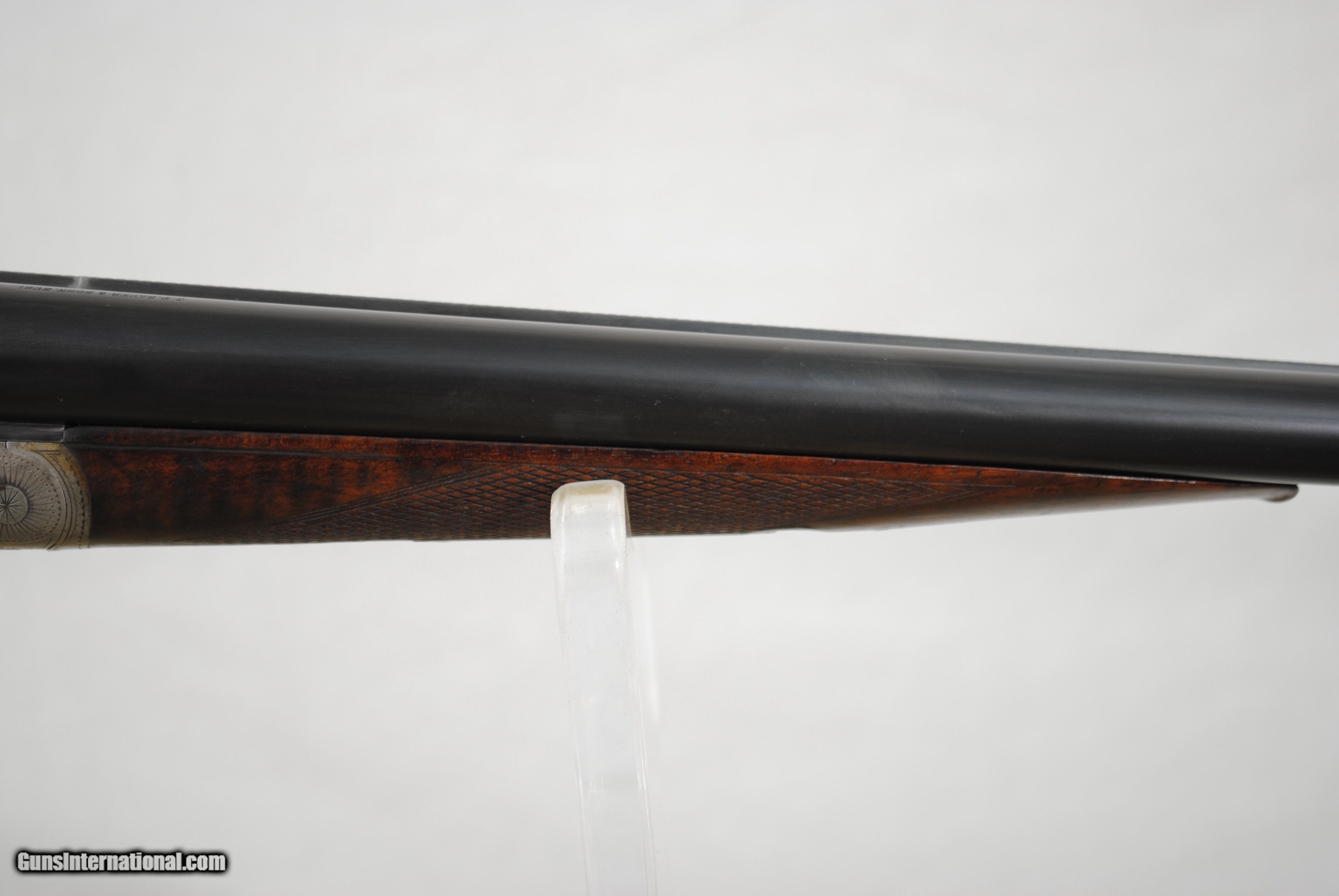 Description: SALE PENDING. Miller & Val Greiss 16 gauge Shotgun made by JP Sauer in 1896. Elegant round bar action. Tight on face. Excellent bores. Original stock finish with sharp flat top checkering. No cracks to wood. Screw slots prestine. Extractors. Chambers are 2 3/4". Right barrel measures .670 with 12/1000 choke (Mod). Left barrel is .672 with 24/1000 choke (Full). Excellent bores. Barrels are 28 3/4". Rebounding locks. Miller & Val Greiss was a designated "Hofbuchsenmacher" which losely translates to a "gunmaker to the royal court". Shipping is $50 and can be sent directly as local law allows. LOP is 13 15/16". Drop at Comb is 1 9/16". Drop at Heel at 2 5/16". SOLD Antique: Yes Shotgun Gauge: 16 Gauge |