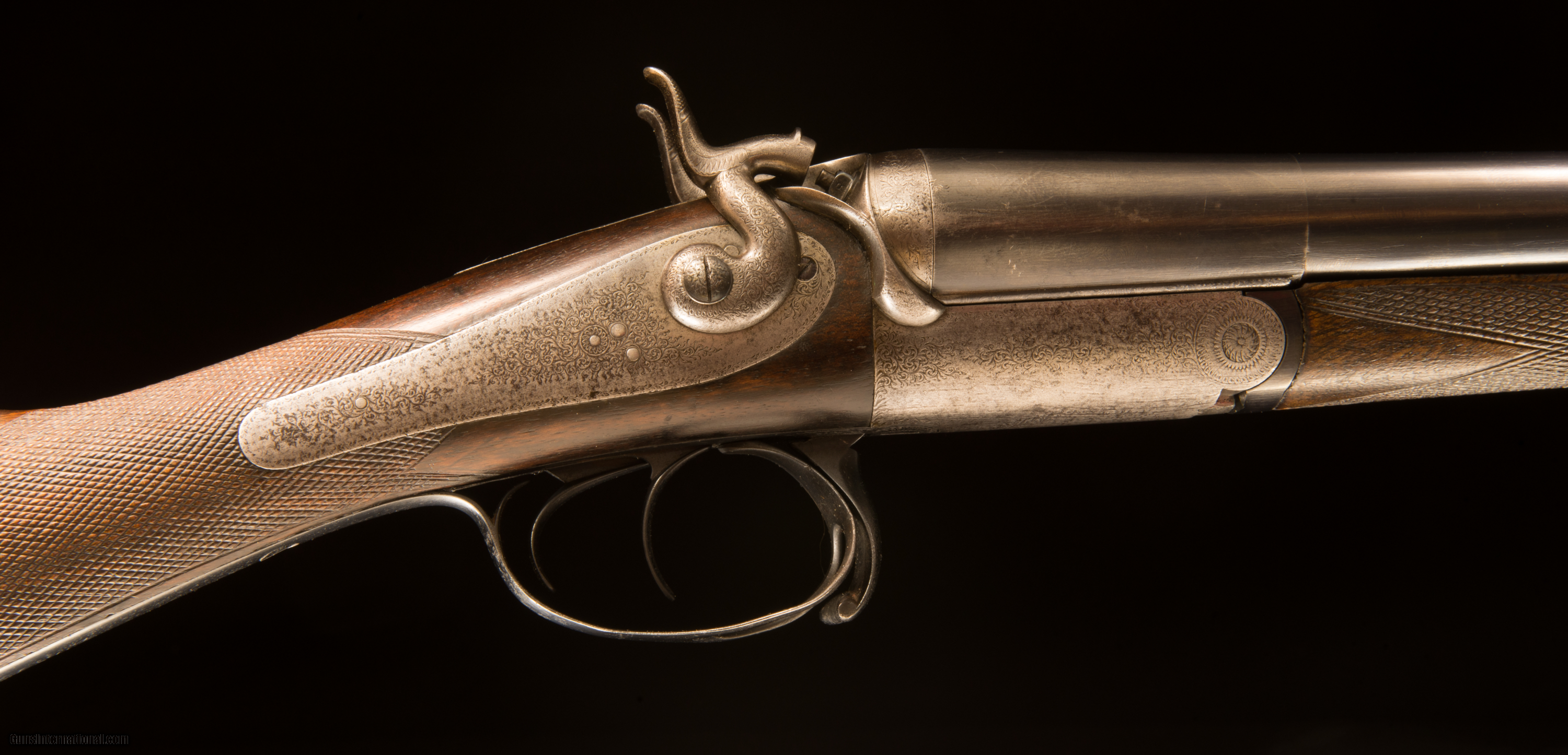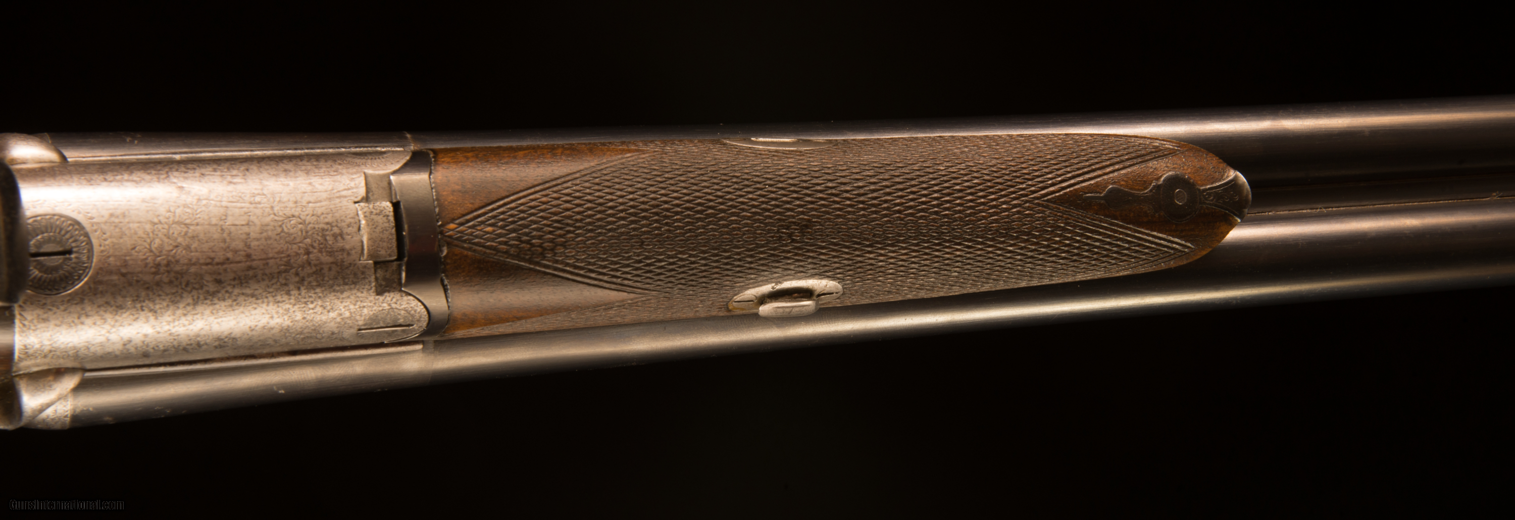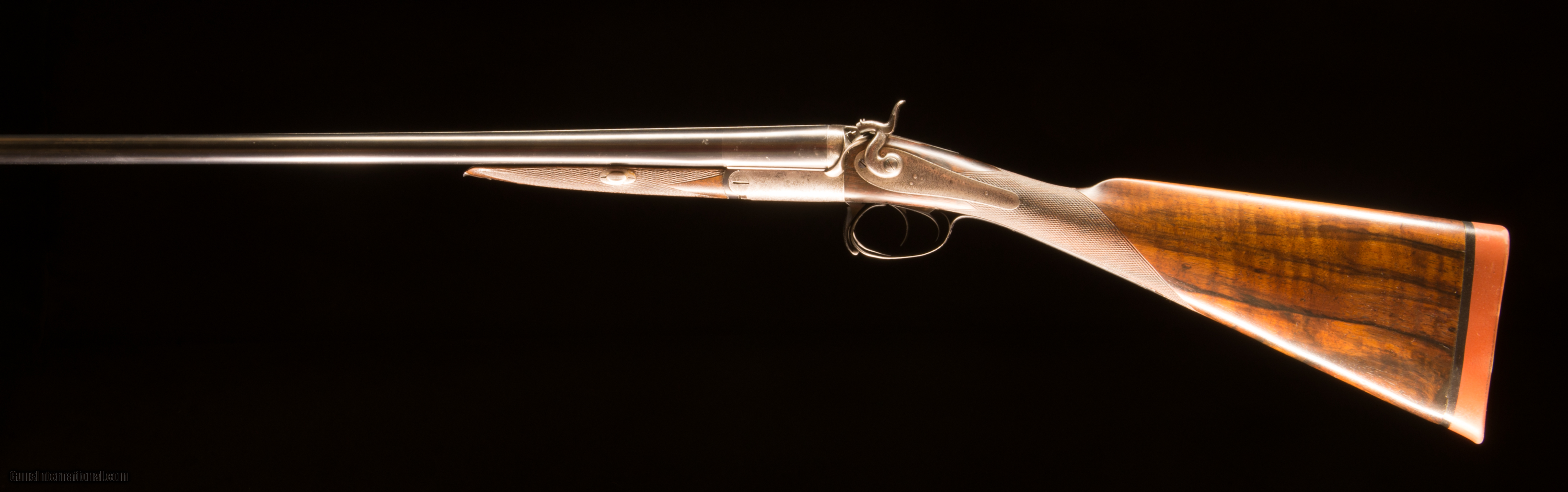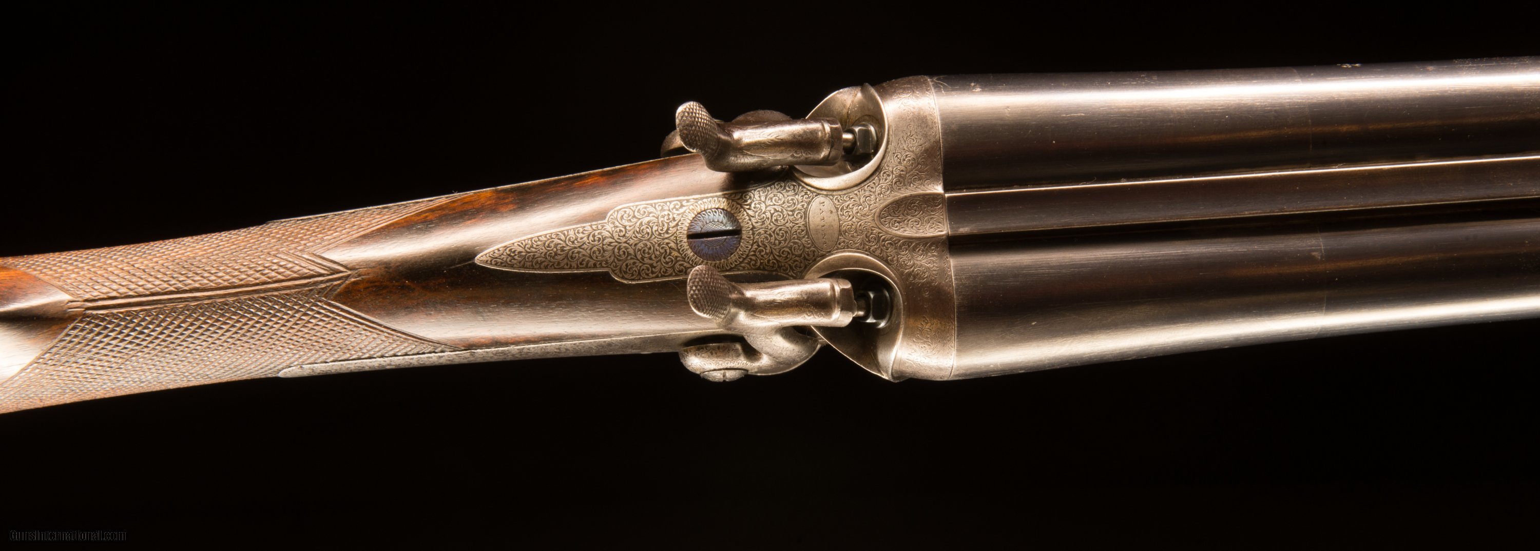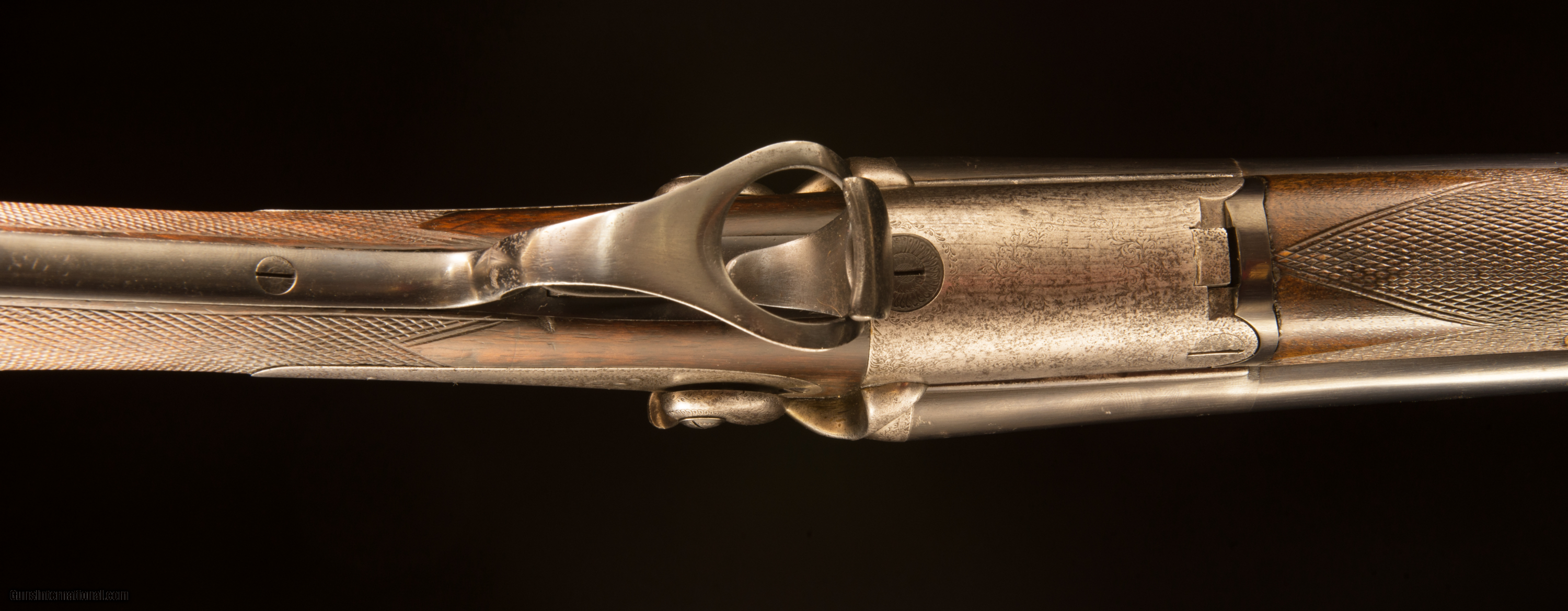 Description: This classic Purdey hammer double features true Island locks, a signature style of this renowned gunmaker. People often confuse back action locks with Island locks. True Island locks like on this Purdey have wood 100% surrounding the lock while a standard back action lock will have some (sometimes very little) of the metal touching some of the metal of the action. This Purdey has been sleeved with very solid barrels and nitro proofed.