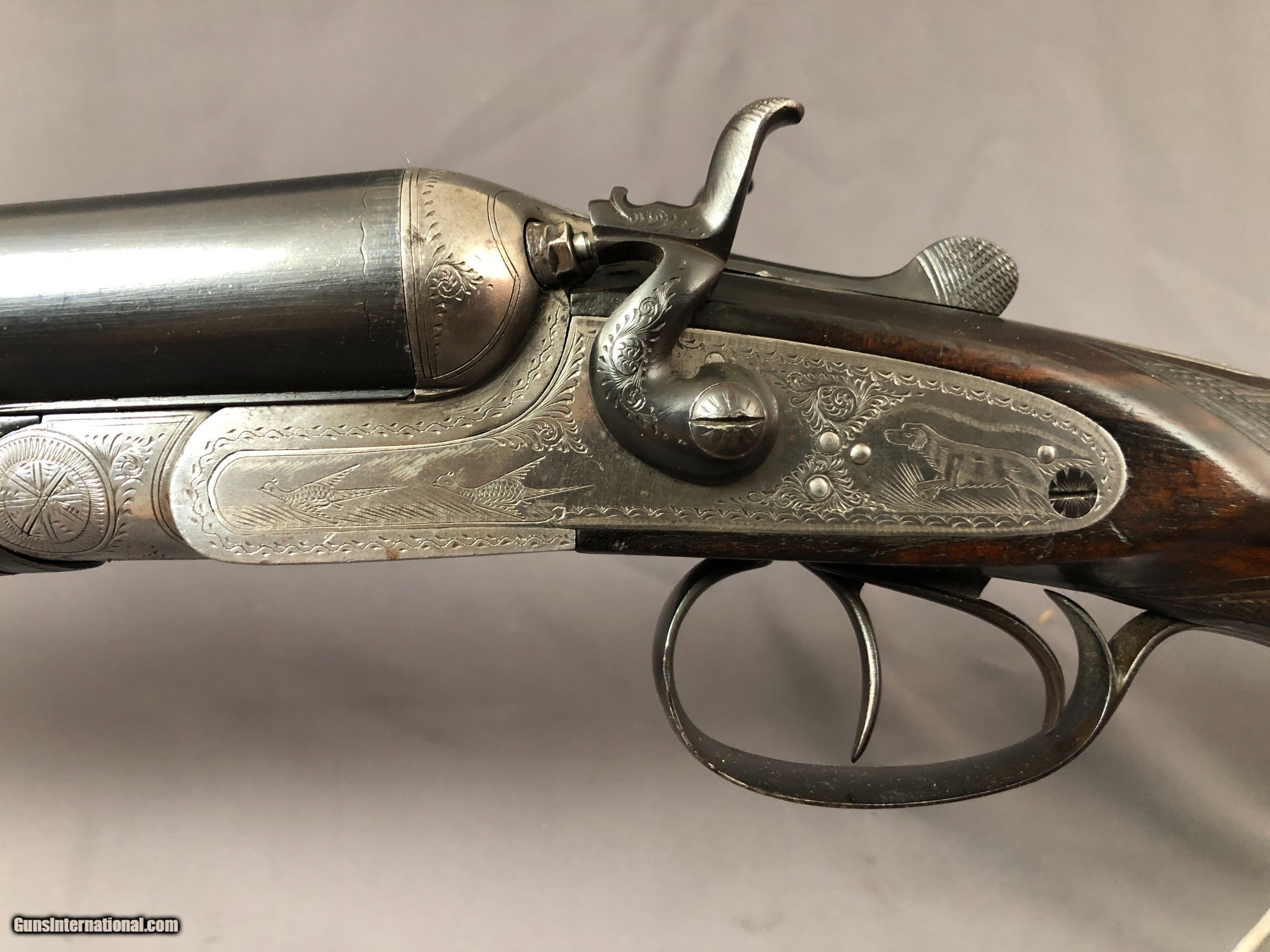 Description: SOLD!!!!A Very Nice British Hammer gun with hard to find game engraving and 2 3/4in nito proofed chambers. Locks up tight. Bright bores. Barrels ring. Stocked with nicely figured wood. Dolls head rib extention and hidden 3rd fastener. Solid bar action. Please call Mark 715-814-1295 Pack and ship $65 LAYAWAY: Layaway is available with 1/3 down of final total price including shipping/insurance within 7 days . Balance due in 45 days. Layaway Sales and guns modified at time of sale are FINAL with no refunds, no inspections, no returns. SOLD Curio/Relic: Yes Shotgun Gauge: 12 Gauge Manufacturer: MIDLAND Model: THE DEMON GUN Barrel Length: 30IN Bore: R .734 L.729 Chambers: 2 3/4IN Condition: NICE Bore Condition: BRIGHT Stock Comb: 1 9/16IN Stock Heel: 2 3/8IN Stock Cast: CAST OFF FOR RIGHT HAND SHOOTER Butt Pad: HORN LOP: 14 3/8IN Weight: 6LBS 11OZ Choke Left: SKT 2 .014 Choke Right: SKT 2 .014 Engraving: HAND GAME ENGRAVED Proof:Nitro: YES Minimum Wall Thickness Left: .030 Minimum Wall Thickness Right: .025 |