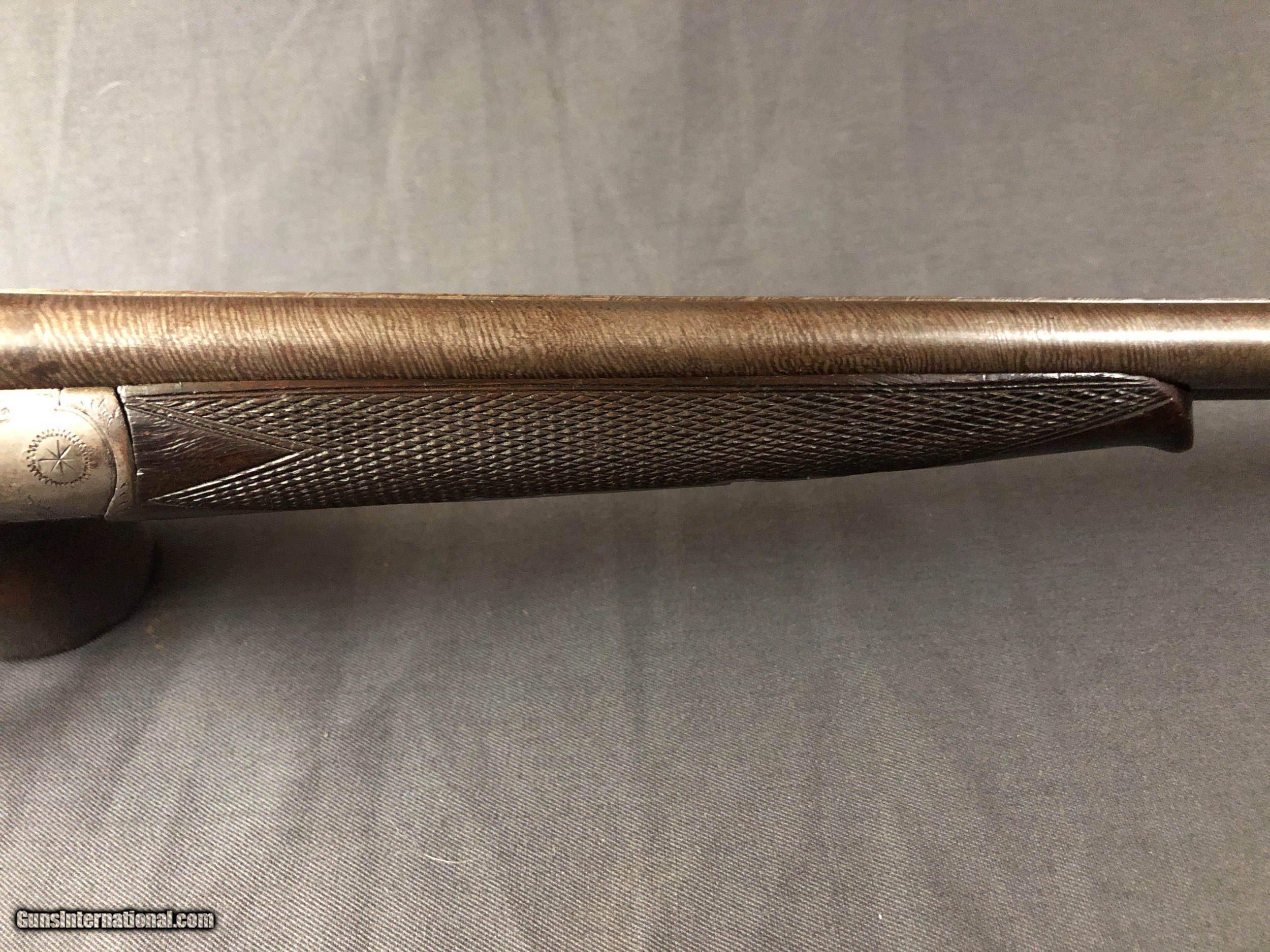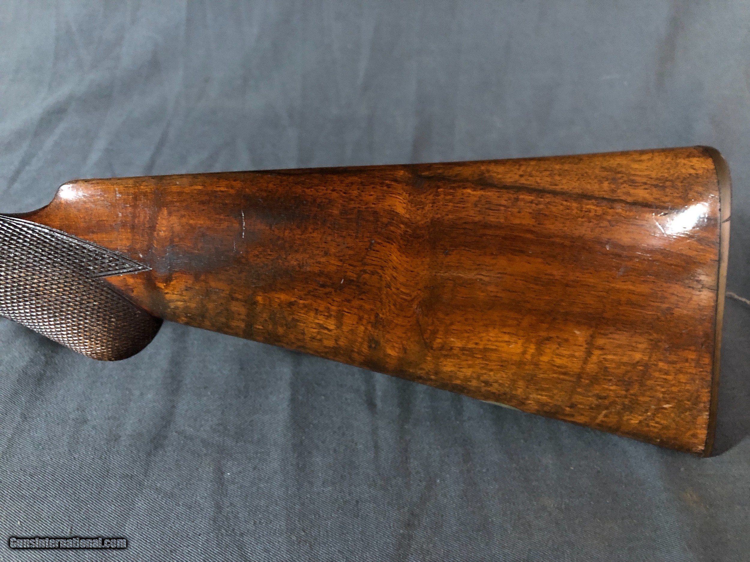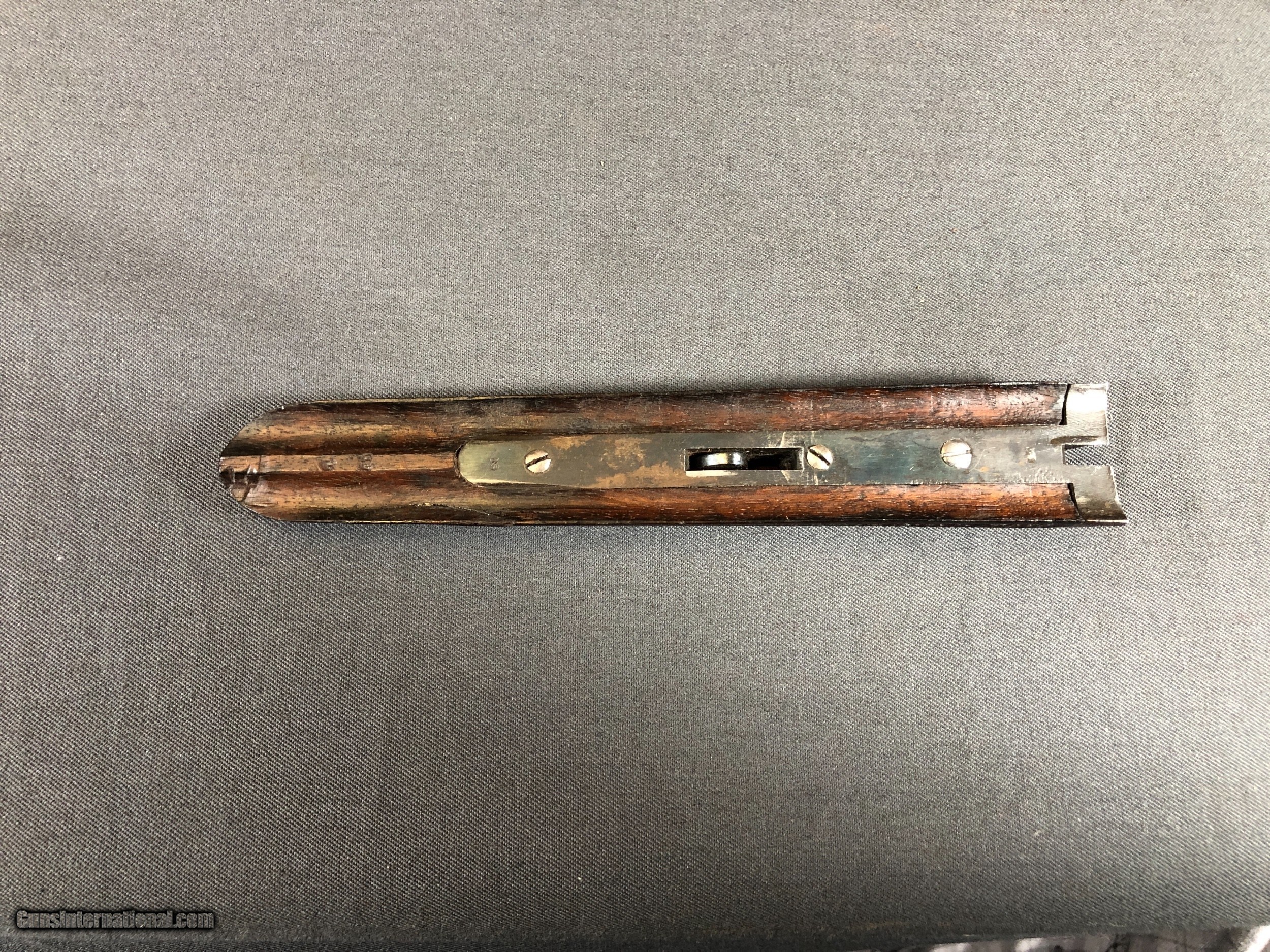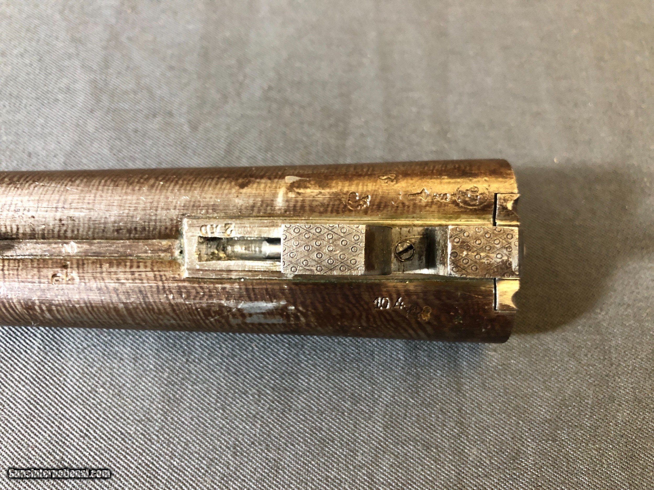 Description: SOLD !!! A wonderful unmolested 410 vintage hammergun. Not your average belgian hardware store gun. Front Action. Laminated barrels and rib. Finger latch fore end release. Bag grip. Game scene butt plate. Vacant stock oval. Horn fore end tip. Dolls head rib extention. Carved fences. Locks up tight. Barrels ring. Bright bores. No pits. No cracks. I had to shoot this gun so I ran some of RSTs shells through it and it is a hoot to shoot. Please call Mark 715-814-1295 Pack and ship $45 LAYAWAY: Layaway is available with 1/3 down of final total price including shipping/insurance within 7 days . Balance due in 45 days. Layaway Sales and guns modified at time of sale are FINAL with no refunds, no inspections, no returns. SOLD Antique: Yes Manufacturer: RICHARDS / FN Bore: R.413 L.412 Chambers: 2 1/2 IN Condition: VERY GOOD Metal Condition: VERY GOOD Wood Condition: VERY GOOD Bore Condition: BRIGHT Barrels: 24IN Barrel Type: LAMINATED STEEL Action: FRONT ACTION Gauge Info: .410 Stock Comb: 1 3/8IN Stock Heel: 2 1/4IN Butt Pad: GAME SCENE LOP: 13 1/4IN Rib: LAMINATED Weight: 3LBS 14OZ Choke Left: CYL Choke Right: CYL Minimum Wall Thickness Left: .045 Minimum Wall Thickness Right: .048 |