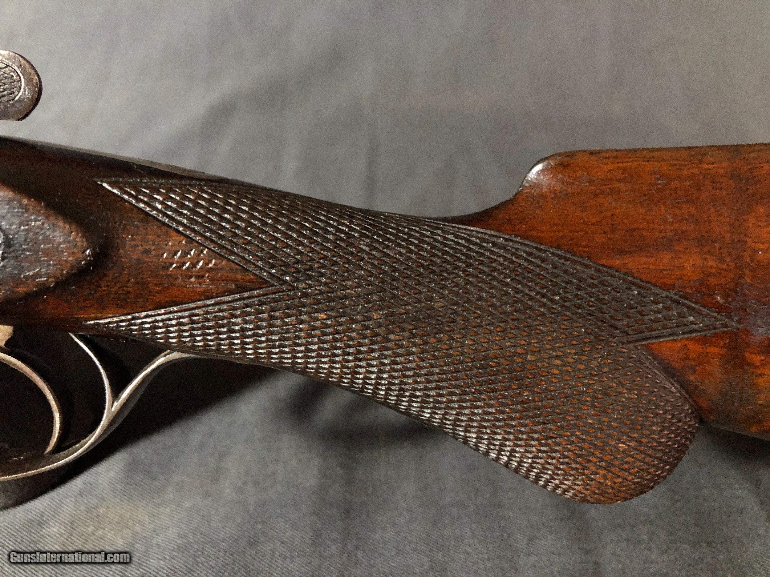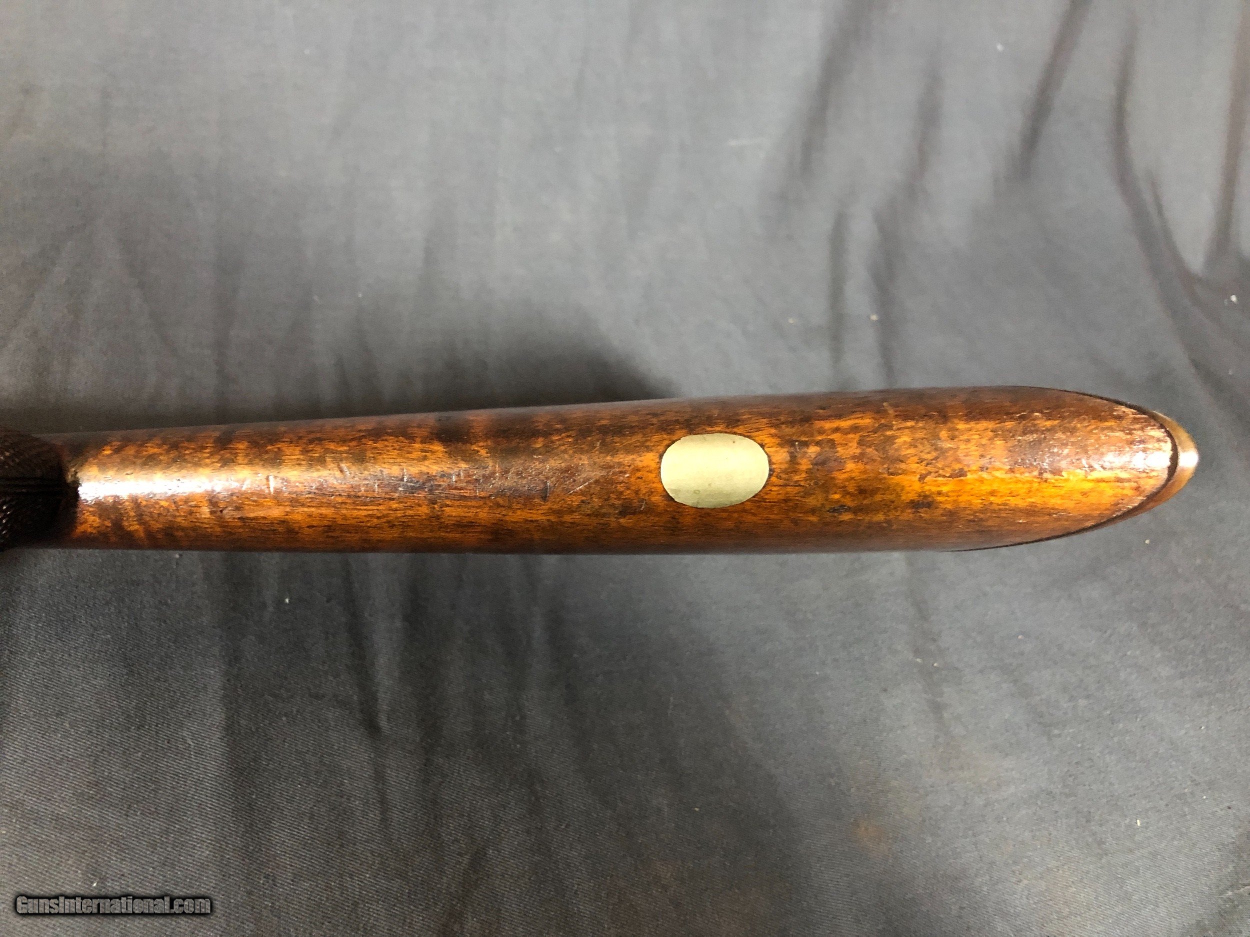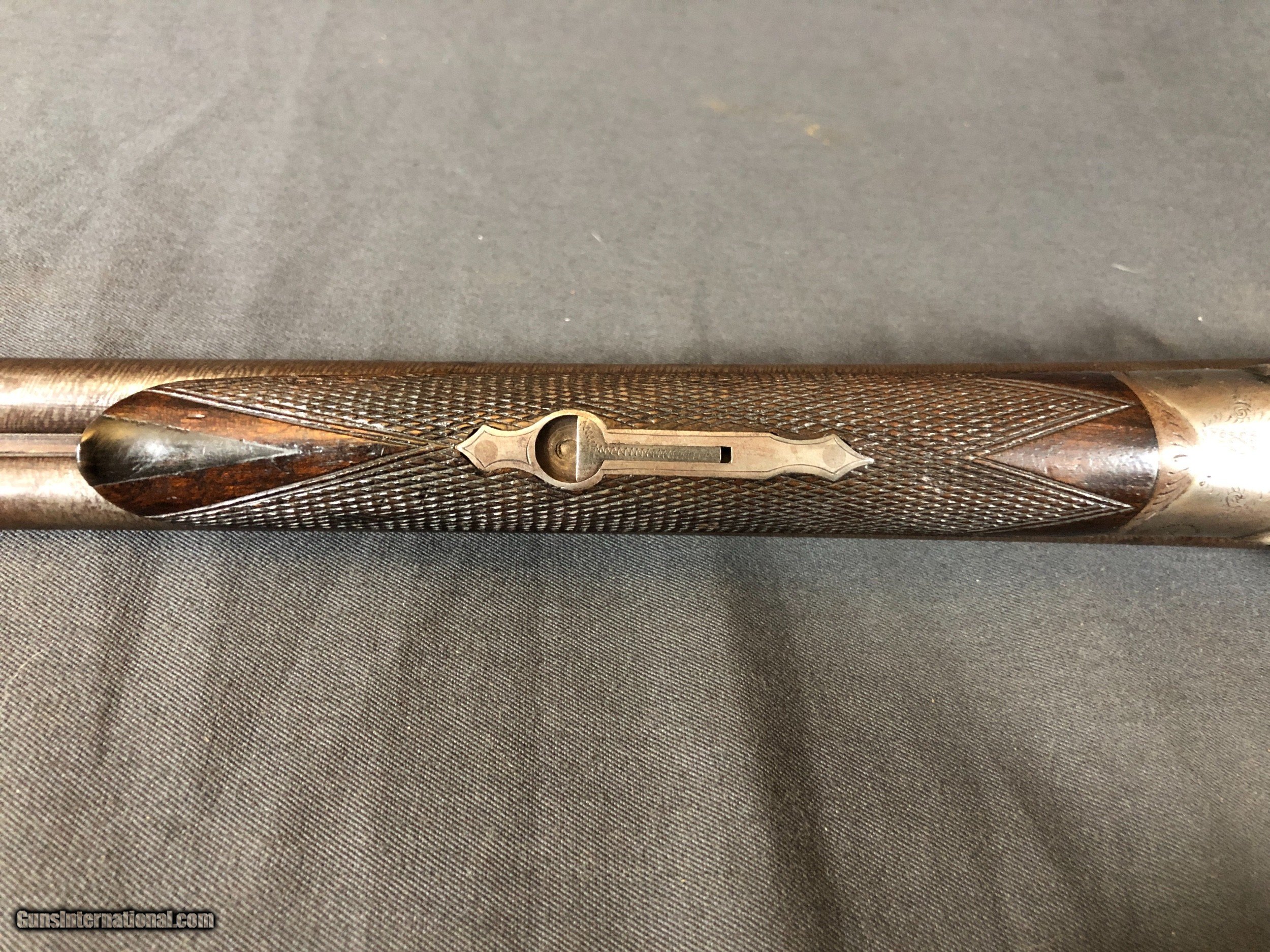Description: SOLD !!! A wonderful unmolested 410 vintage hammergun. Not your average belgian hardware store gun. Front Action. Laminated barrels and rib. Finger latch fore end release. Bag grip. Game scene butt plate. Vacant stock oval. Horn fore end tip. Dolls head rib extention. Carved fences. Locks up tight. Barrels ring. Bright bores. No pits. No cracks. I had to shoot this gun so I ran some of RSTs shells through it and it is a hoot to shoot. Please call Mark 715-814-1295 Pack and ship $45 LAYAWAY: Layaway is available with 1/3 down of final total price including shipping/insurance within 7 days . Balance due in 45 days. Layaway Sales and guns modified at time of sale are FINAL with no refunds, no inspections, no returns. SOLD Antique: Yes Manufacturer: RICHARDS / FN Bore: R.413 L.412 Chambers: 2 1/2 IN Condition: VERY GOOD Metal Condition: VERY GOOD Wood Condition: VERY GOOD Bore Condition: BRIGHT Barrels: 24IN Barrel Type: LAMINATED STEEL Action: FRONT ACTION Gauge Info: .410 Stock Comb: 1 3/8IN Stock Heel: 2 1/4IN Butt Pad: GAME SCENE LOP: 13 1/4IN Rib: LAMINATED Weight: 3LBS 14OZ Choke Left: CYL Choke Right: CYL Minimum Wall Thickness Left: .045 Minimum Wall Thickness Right: .048 |