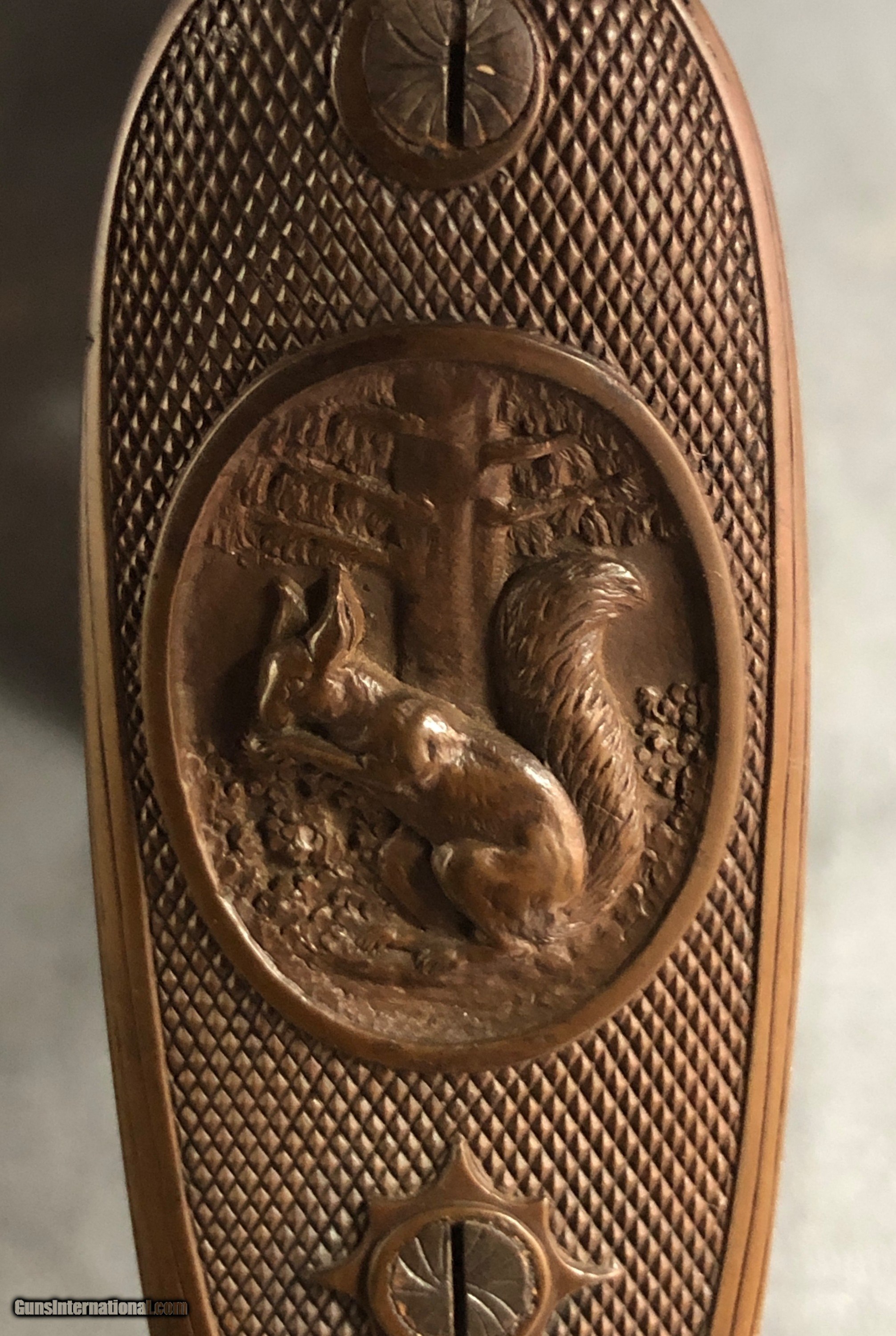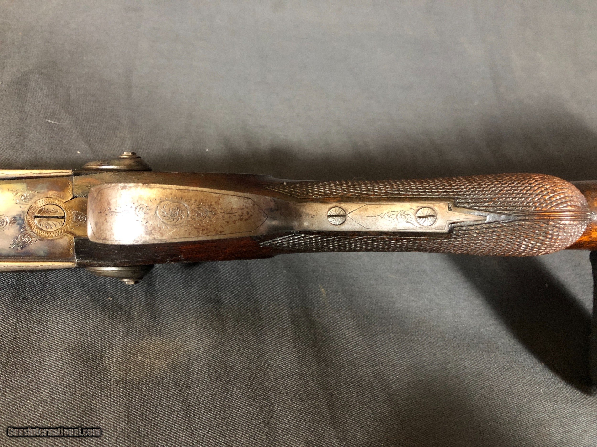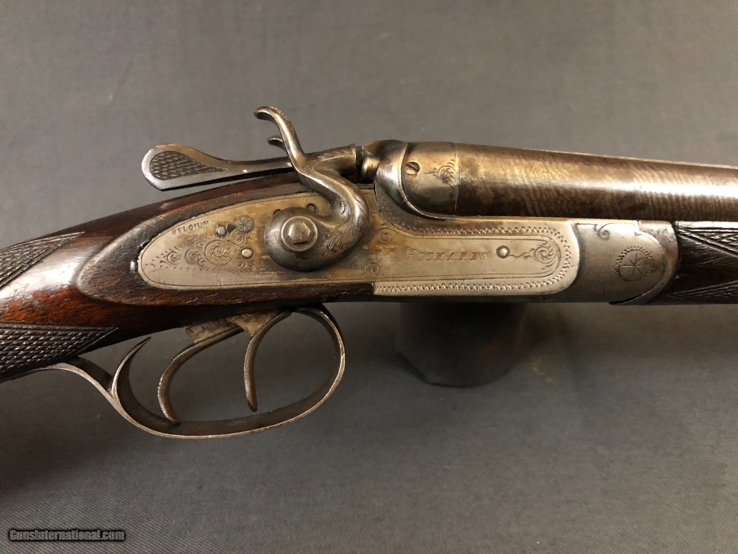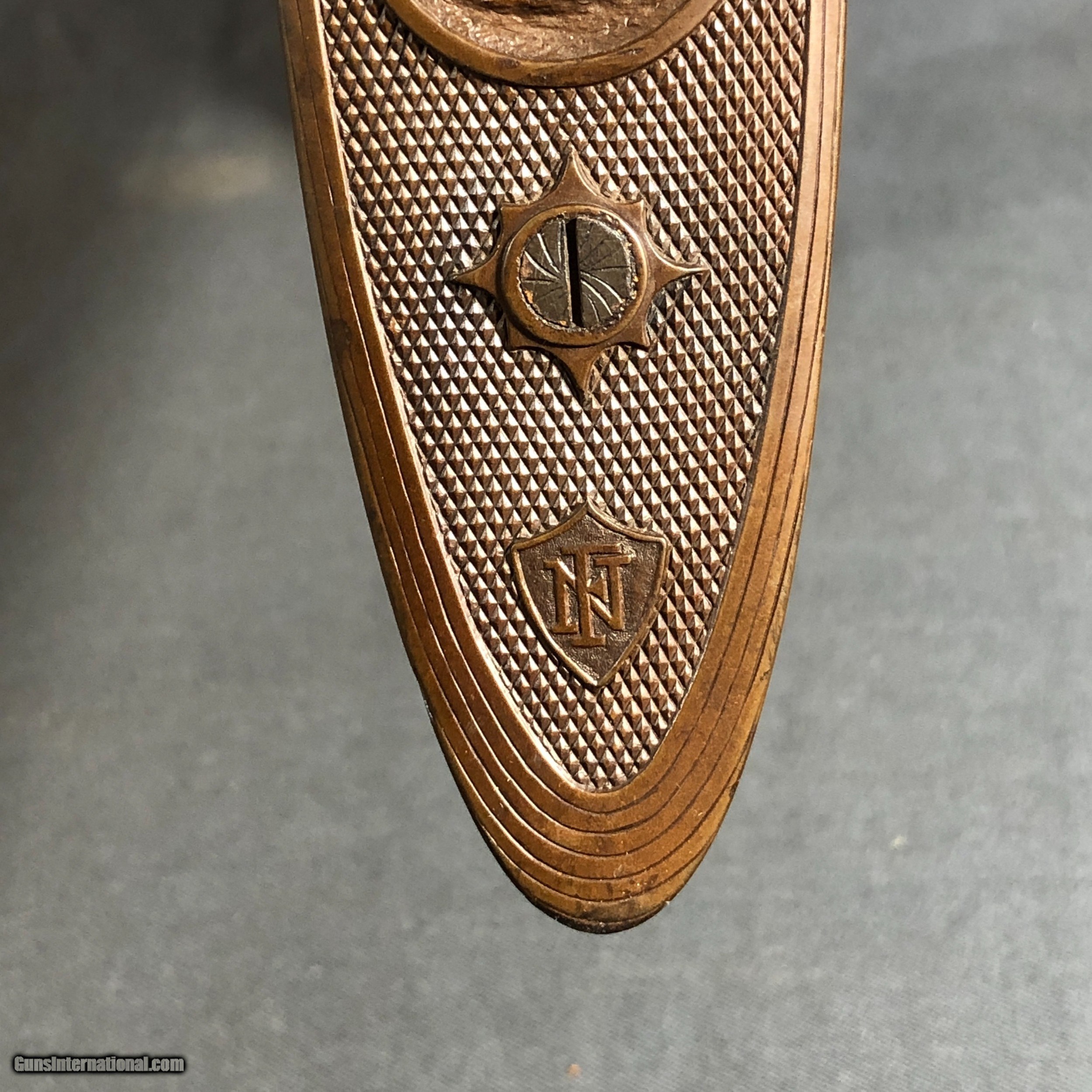 Description: SOLD !!! A wonderful unmolested 410 vintage hammergun. Not your average belgian hardware store gun. Front Action. Laminated barrels and rib. Finger latch fore end release. Bag grip. Game scene butt plate. Vacant stock oval. Horn fore end tip. Dolls head rib extention. Carved fences. Locks up tight. Barrels ring. Bright bores. No pits. No cracks. I had to shoot this gun so I ran some of RSTs shells through it and it is a hoot to shoot. Please call Mark 715-814-1295 Pack and ship $45 LAYAWAY: Layaway is available with 1/3 down of final total price including shipping/insurance within 7 days . Balance due in 45 days. Layaway Sales and guns modified at time of sale are FINAL with no refunds, no inspections, no returns. SOLD Antique: Yes Manufacturer: RICHARDS / FN Bore: R.413 L.412 Chambers: 2 1/2 IN Condition: VERY GOOD Metal Condition: VERY GOOD Wood Condition: VERY GOOD Bore Condition: BRIGHT Barrels: 24IN Barrel Type: LAMINATED STEEL Action: FRONT ACTION Gauge Info: .410 Stock Comb: 1 3/8IN Stock Heel: 2 1/4IN Butt Pad: GAME SCENE LOP: 13 1/4IN Rib: LAMINATED Weight: 3LBS 14OZ Choke Left: CYL Choke Right: CYL Minimum Wall Thickness Left: .045 Minimum Wall Thickness Right: .048 |
