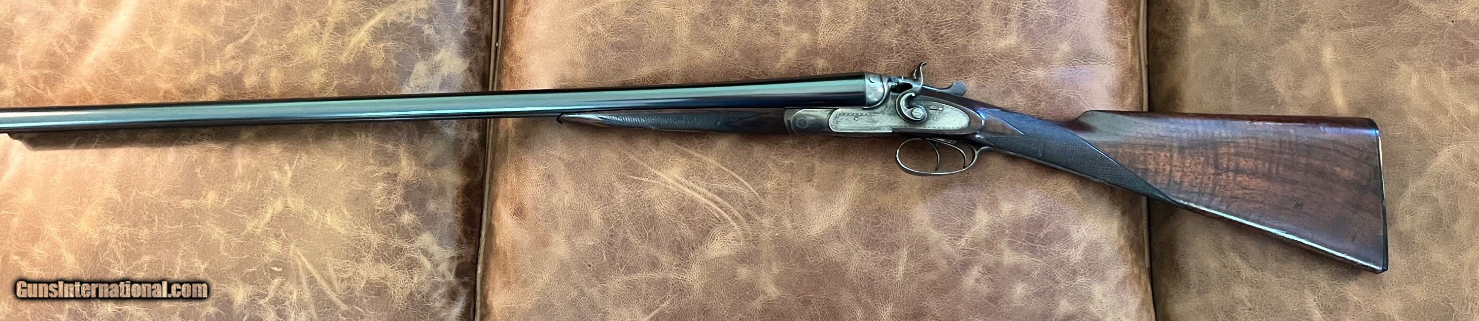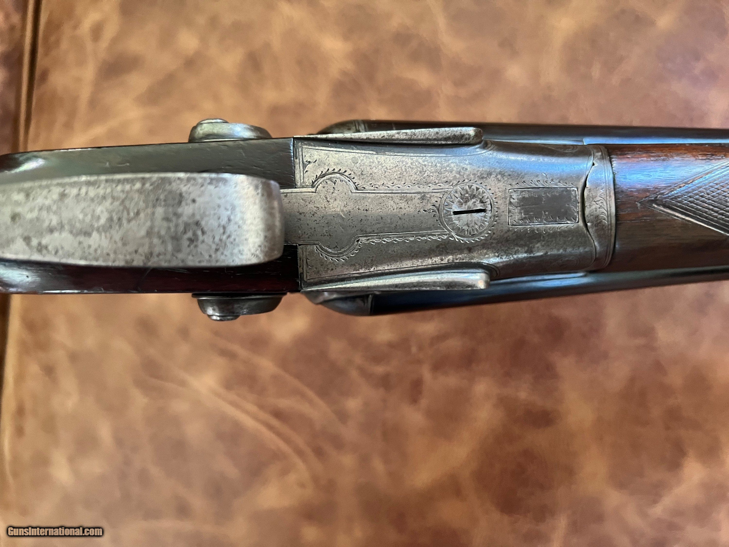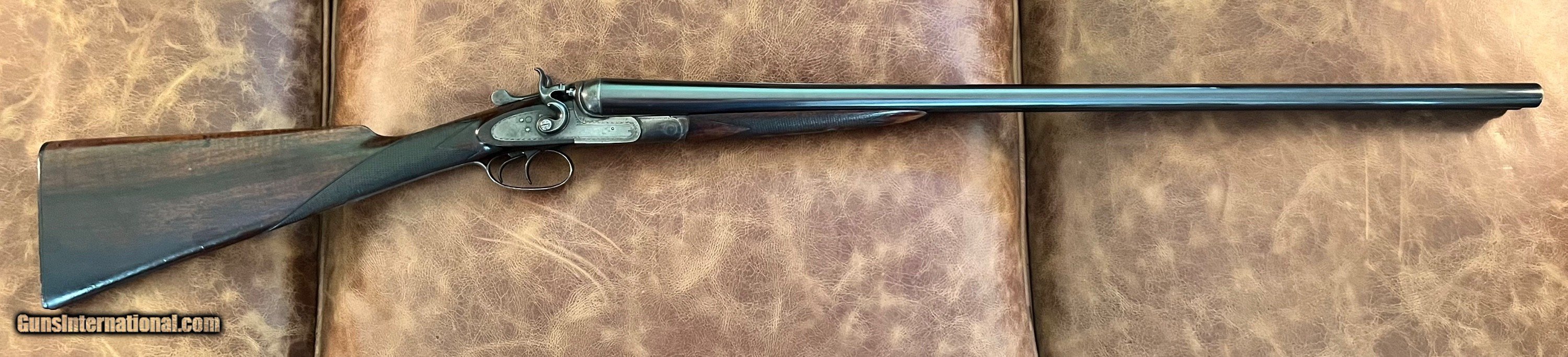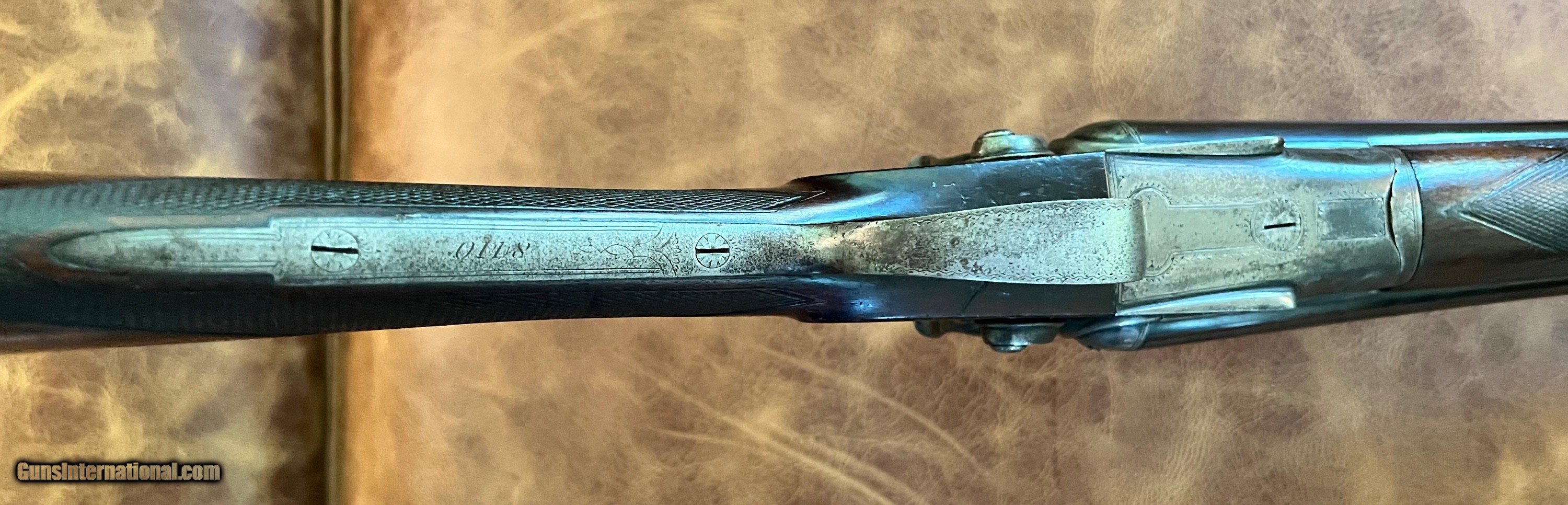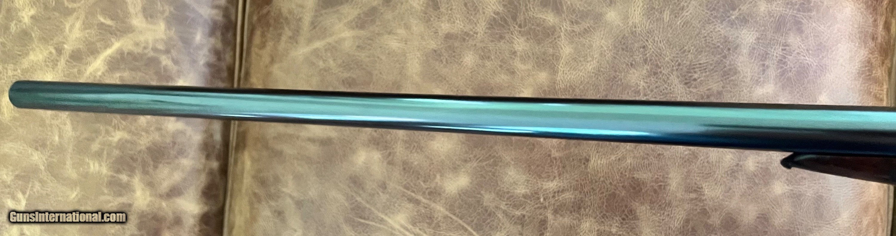 Description: T Wild Whittall street Birmingham England 12ga 30" non ejector barrels with wide flat matted rib 3" chambers Excellent bores Lockup is tight Treble grip action Original 3" 1 1/2oz proof with 12-76 1200 bar reproof Minimum wall thickness: R: 24/1000 L: 25/1000 Bores: .732/.732 proofed at .732/.732 Chokes: IM/F .029/.032 LOP 14 1/4 over original buttplate (15" with 1" pad) DAC 1 1/2 DAH 2 1/8 Cast off 3/8" 7lbs 7oz Carved fences and nicely shaped hammers. Border engraved action and screws with some remaining case color. Built in 1915 Nice original condition heavy proof bar action hammergun, Great weight and stock dimensions for clays or game and with the reproof you can safely shoot modern ammo up to 3" 1 1/2oz. SOLD Curio/Relic: Yes Shotgun Gauge: 12 Gauge |