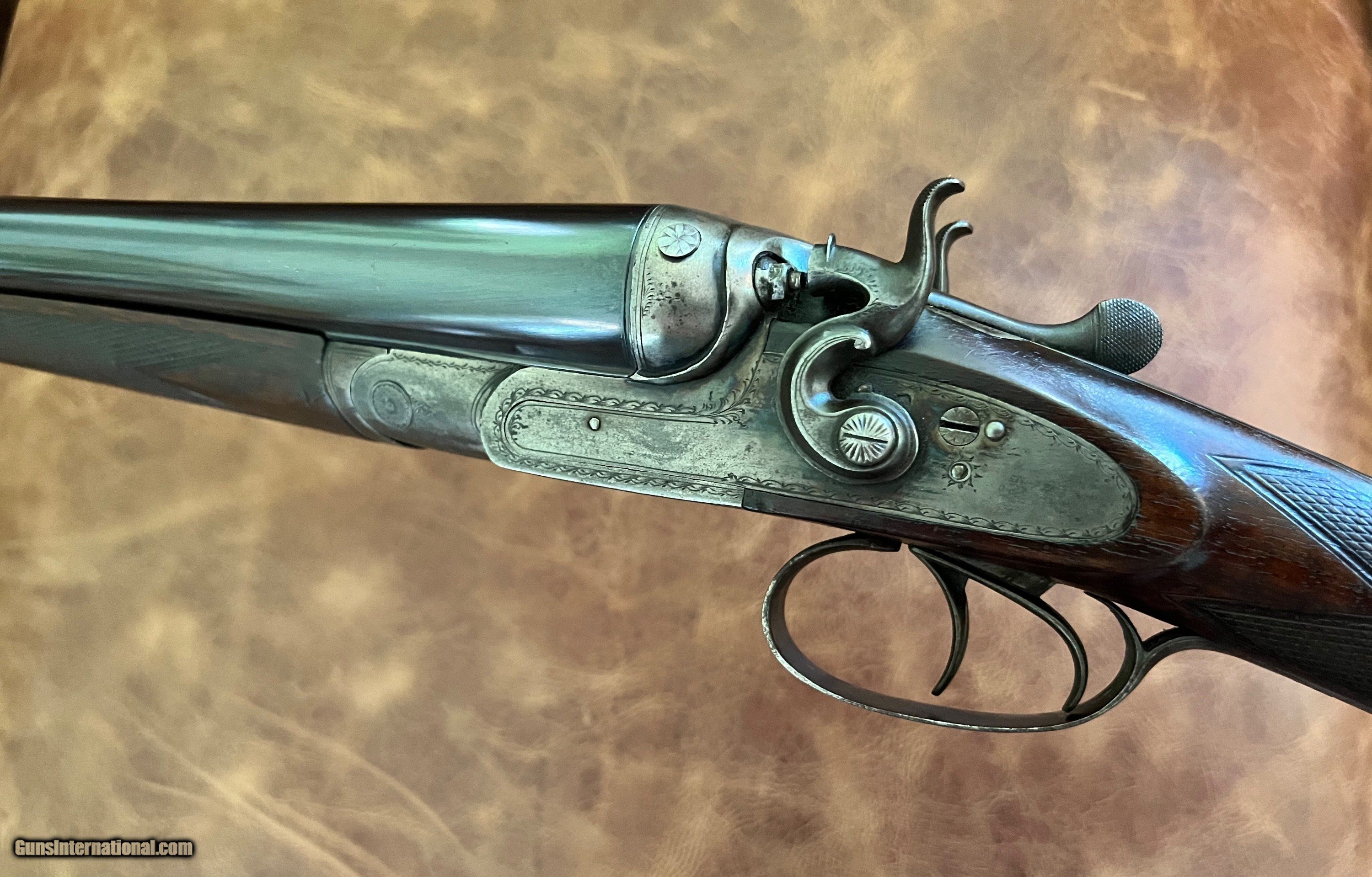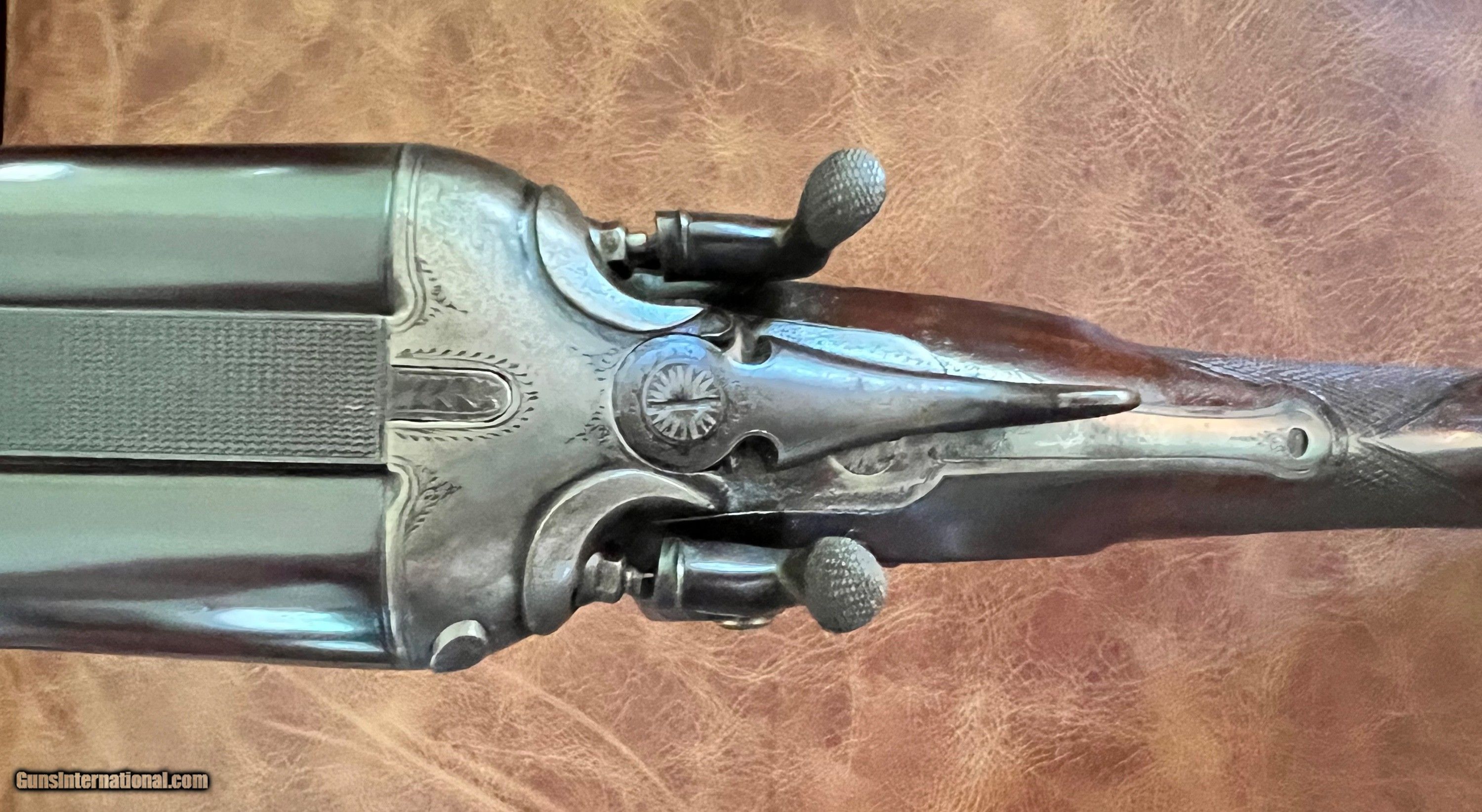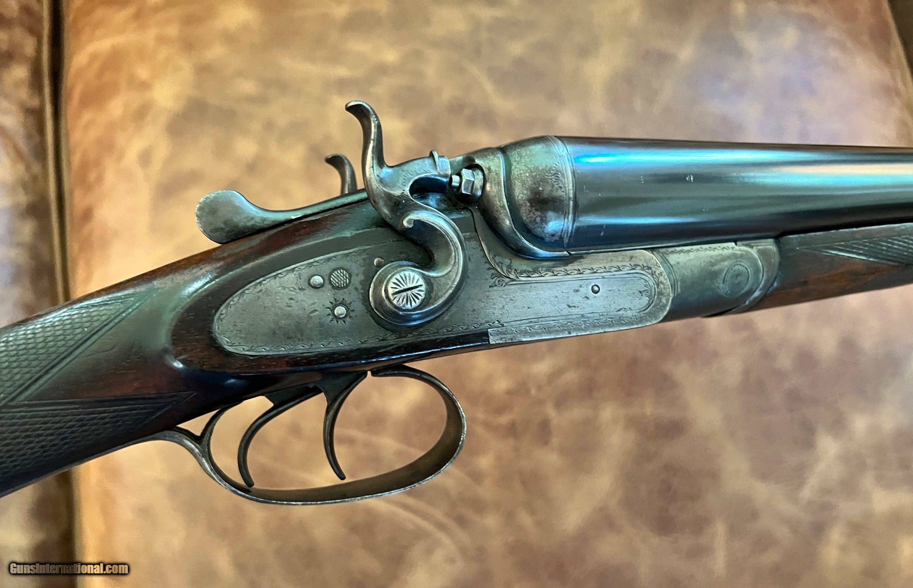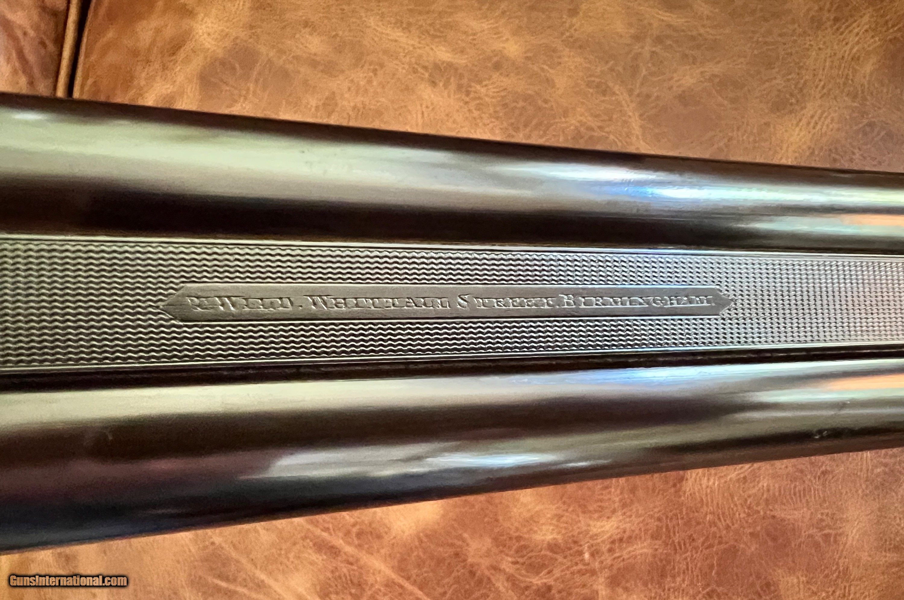 Description: T Wild Whittall street Birmingham England 12ga 30" non ejector barrels with wide flat matted rib 3" chambers Excellent bores Lockup is tight Treble grip action Original 3" 1 1/2oz proof with 12-76 1200 bar reproof Minimum wall thickness: R: 24/1000 L: 25/1000 Bores: .732/.732 proofed at .732/.732 Chokes: IM/F .029/.032 LOP 14 1/4 over original buttplate (15" with 1" pad) DAC 1 1/2 DAH 2 1/8 Cast off 3/8" 7lbs 7oz Carved fences and nicely shaped hammers. Border engraved action and screws with some remaining case color. Built in 1915 Nice original condition heavy proof bar action hammergun, Great weight and stock dimensions for clays or game and with the reproof you can safely shoot modern ammo up to 3" 1 1/2oz. SOLD Curio/Relic: Yes Shotgun Gauge: 12 Gauge |