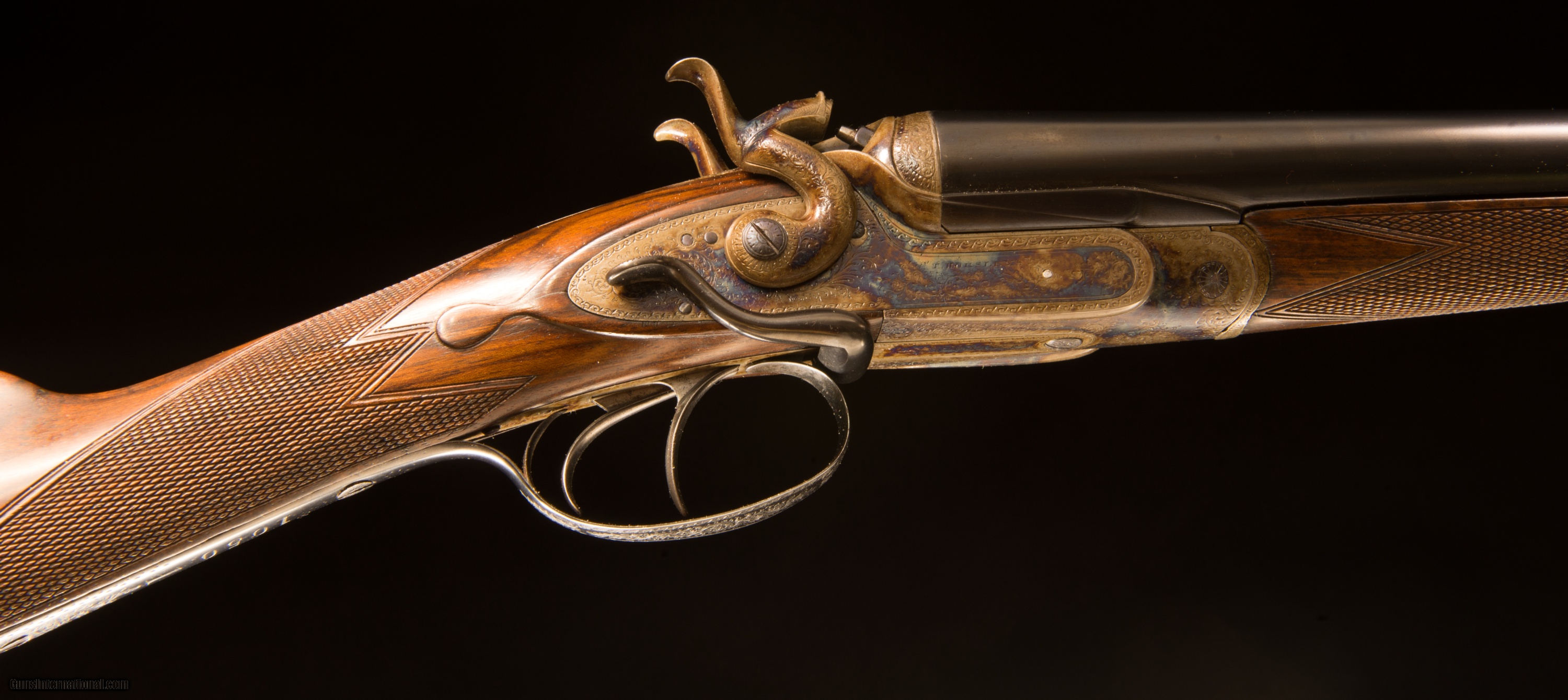 Description: Hammerguns - Thomas Horsley had the esteemed reputation among English gunmakers to be "A gun makers gun maker." Horsley was respected for innovation and attention to quality both of which show in this example. This gun is extremely sound and one that will bring years of wonderful service. As far as we can see it needs nothing but a good home to get her afield. This gun is nicely cased with cleaning rod, jags, oil bottle, and snap caps. *** Note: To see this gun with high resolution photos and a zoom-in feature, go to the vintagedoubles main site and search for the gun ID: 4037 or browse the main site to see our full gun collection. |