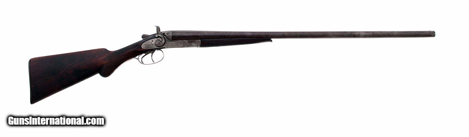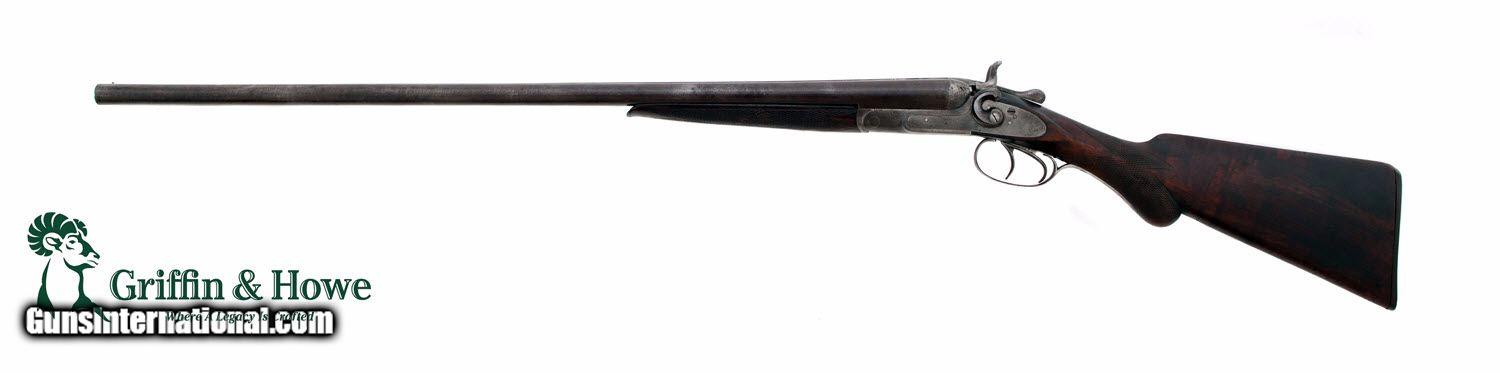 Description: Union Machine - Damascus Hammergun - 20 ga - Item Number: UNI90417 Shotgun type: SxS Action: Hammer Ejectors: No Trigger: Double Grip: Rounded Pistol Grip Forend: Checkered Lop: 12 3/4 " Pad thickness: 0.25 " Type of butt: Factory Drop comb: 1 7/8 " Drop heel: 2 7/8 " Cast amount: 1/8 " Cast: Off Weight: 6 lbs, oz Manufactured in: Belgium Manufacture Year: Finish: Brush Overall condition: Fair Stock condition: Fair Metal condition: Fair Stock: Original finish Metal: Original finish Type of Case: none Extra barrels: 0 Barrel info: Gauge: 20 ga Chamber: 2 3/4 " Length: 28 " Rib type: Concave Comments : Barrels have some pitting and a few small dents. SG-51 SOLD |