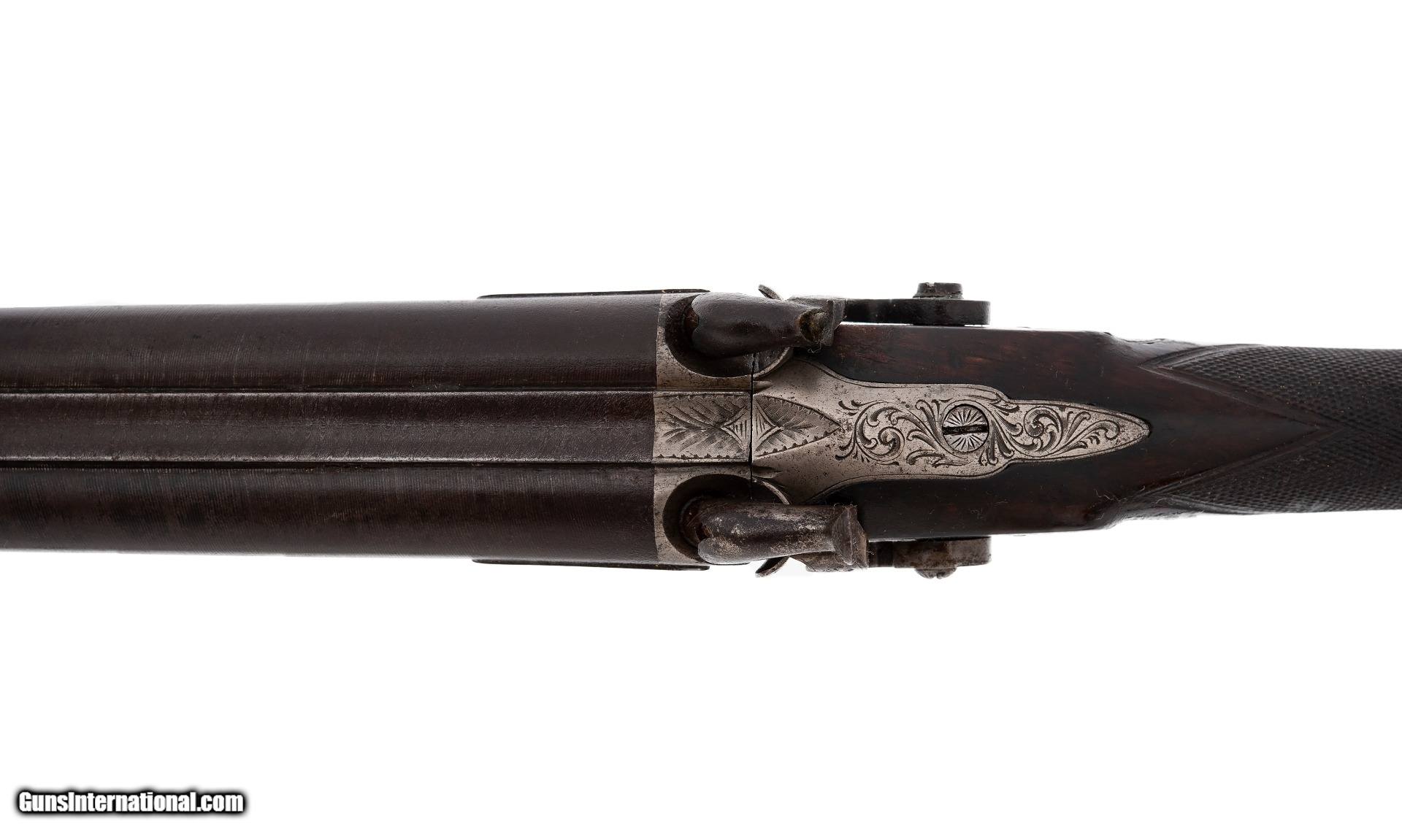 Description: The top of one hammer is broken off. SOLD Antique: Yes Manufacturer: Unknown Model: Damascus Hammergun Caliber Info: 12 Gauge Condition: Preowned Metal Condition: Fair Barrels: 27 Action: Hammer Triggers: Double Gauge Info: 12 Gauge Stock Comb: 1 1/2 Stock Heel: 2 3/4 Fore End: Not Checkered LOP: 13 3/4 Rib: Concave Weight: 6.750000 Chokes: Cyl/Cyl Case: No |