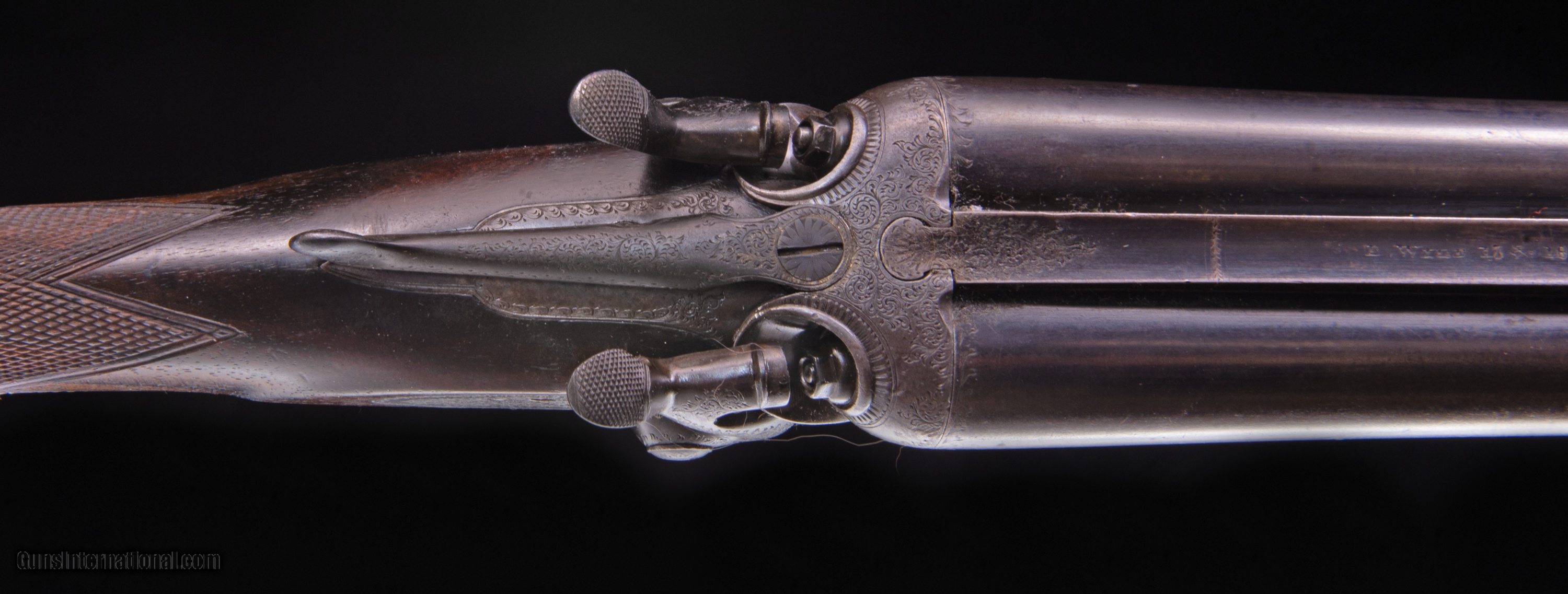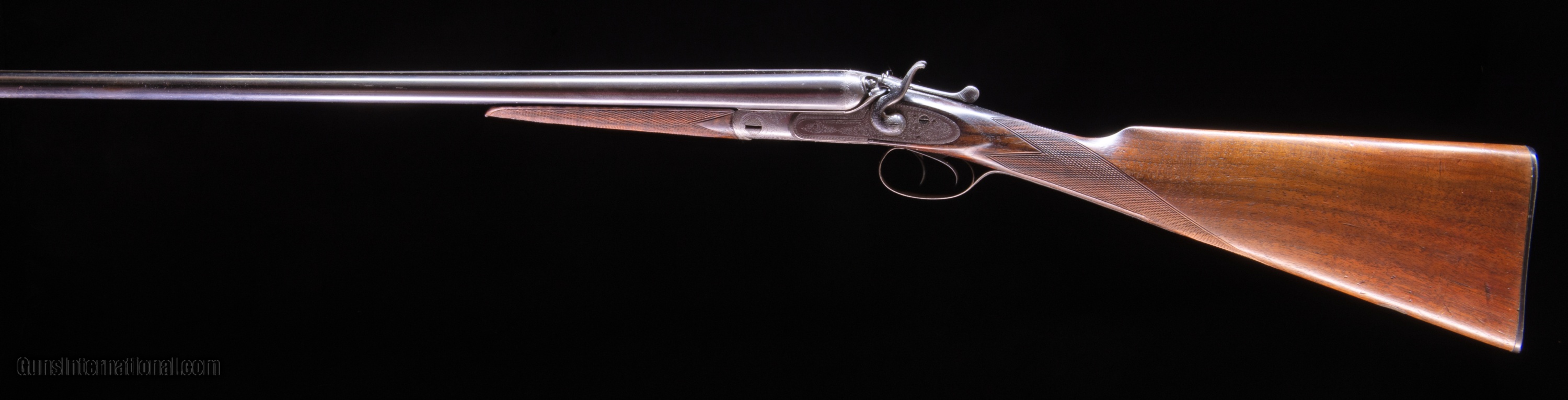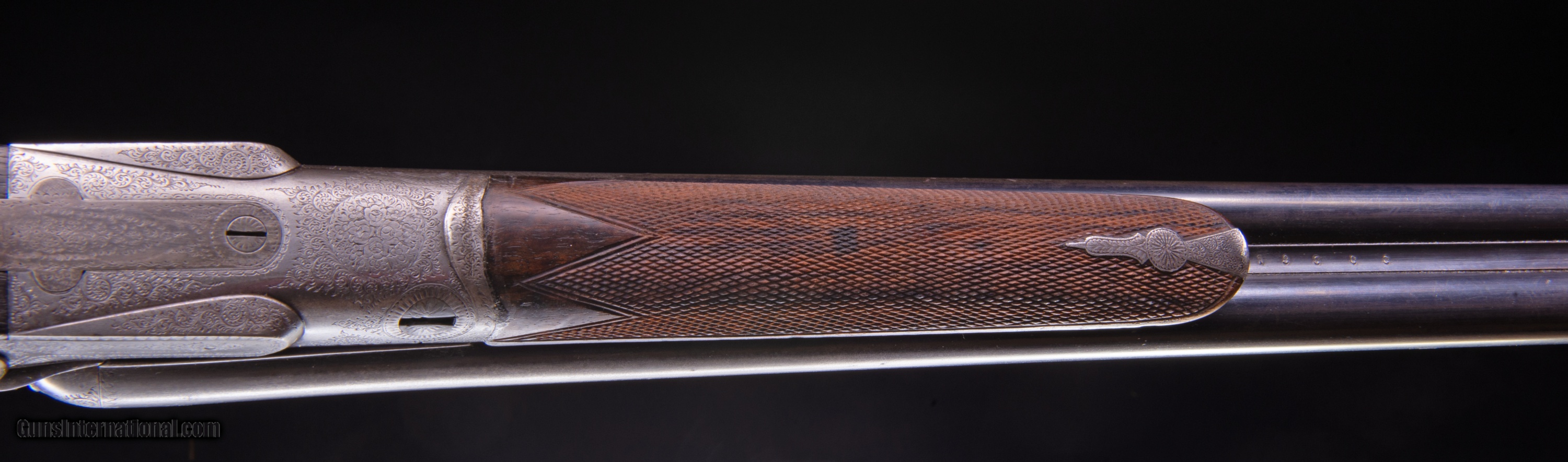 Description: Hammerguns - What a great little 20g. hammer double which is so rare and hard to find in the UK. Note the modern dimensions and the very long elegant 30" steel barrels. *** Note: To see this gun with high resolution photos and a zoom-in feature, go to the vintagedoubles main site and search for the gun ID: 4730 or browse the main site to see our full gun collection. SOLD Manufacturer: Watson & Hancock 20g. top lever hammer gun ready to go! ! Note the 30" barrels and excellent choking to place birds close and far in the bag Model: None Serial Number: 15028 Ejectors: No Barrels: 30 Barrel Type: Steel Action: Sidelock Gauge Info: 20 gauge Stock Comb: 1 3/8 Stock Heel: 1 7/8 Stock Cast: 1/4 LOP: 14 1/2" with ho Weight: 5lbs 15ozs Choke Left: .017 Choke Right: Cyl. Proof:Nitro: 2 1/2 Minimum Wall Thickness Left: .034 Minimum Wall Thickness Right: .034 |
