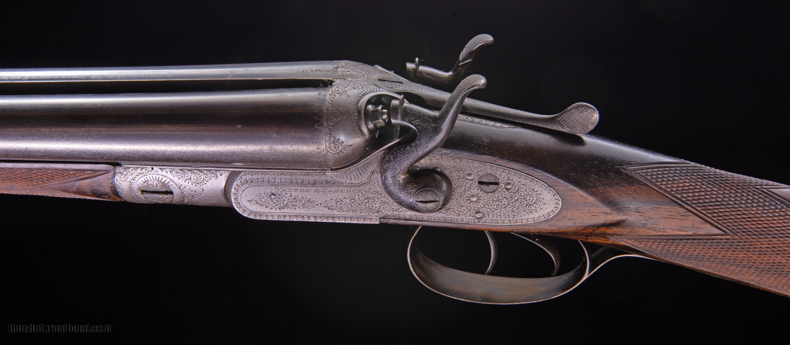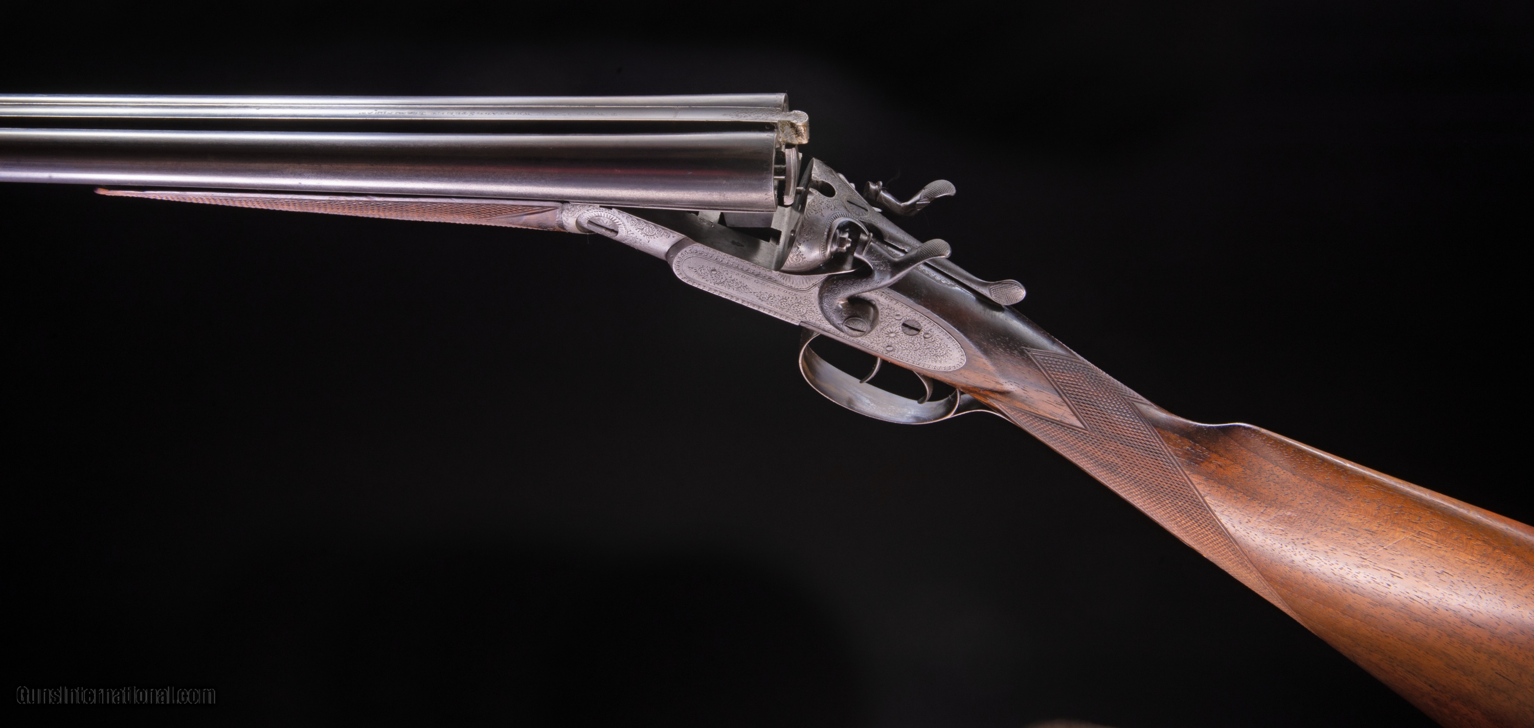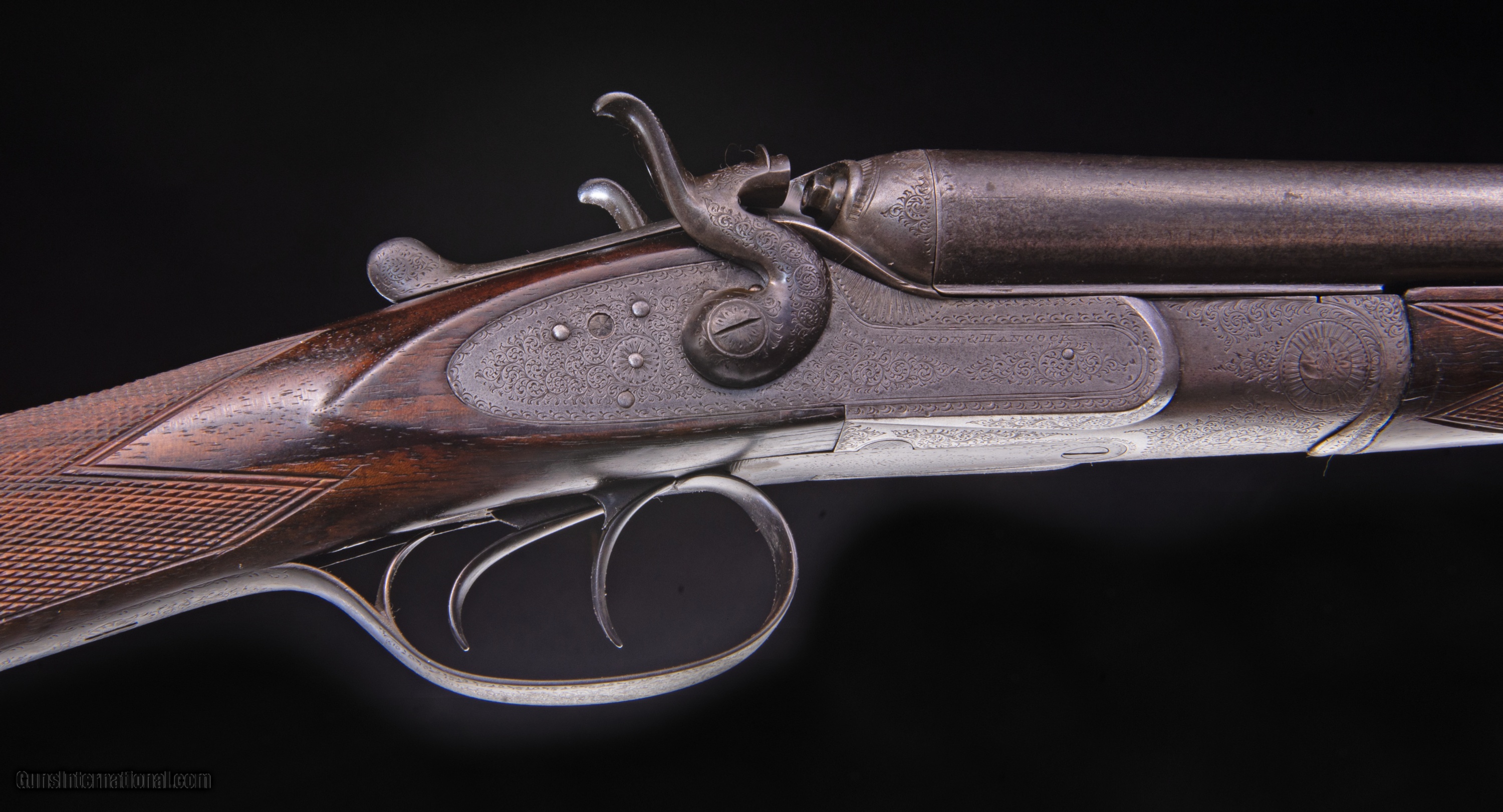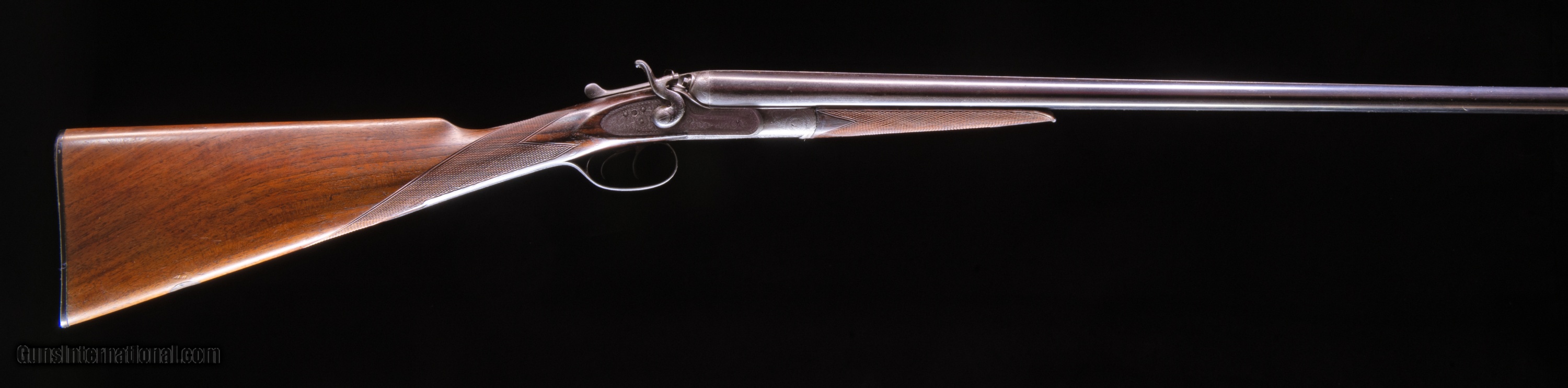 Description: Hammerguns - What a great little 20g. hammer double which is so rare and hard to find in the UK. Note the modern dimensions and the very long elegant 30" steel barrels. *** Note: To see this gun with high resolution photos and a zoom-in feature, go to the vintagedoubles main site and search for the gun ID: 4730 or browse the main site to see our full gun collection. SOLD Manufacturer: Watson & Hancock 20g. top lever hammer gun ready to go! ! Note the 30" barrels and excellent choking to place birds close and far in the bag Model: None Serial Number: 15028 Ejectors: No Barrels: 30 Barrel Type: Steel Action: Sidelock Gauge Info: 20 gauge Stock Comb: 1 3/8 Stock Heel: 1 7/8 Stock Cast: 1/4 LOP: 14 1/2" with ho Weight: 5lbs 15ozs Choke Left: .017 Choke Right: Cyl. Proof:Nitro: 2 1/2 Minimum Wall Thickness Left: .034 Minimum Wall Thickness Right: .034 |