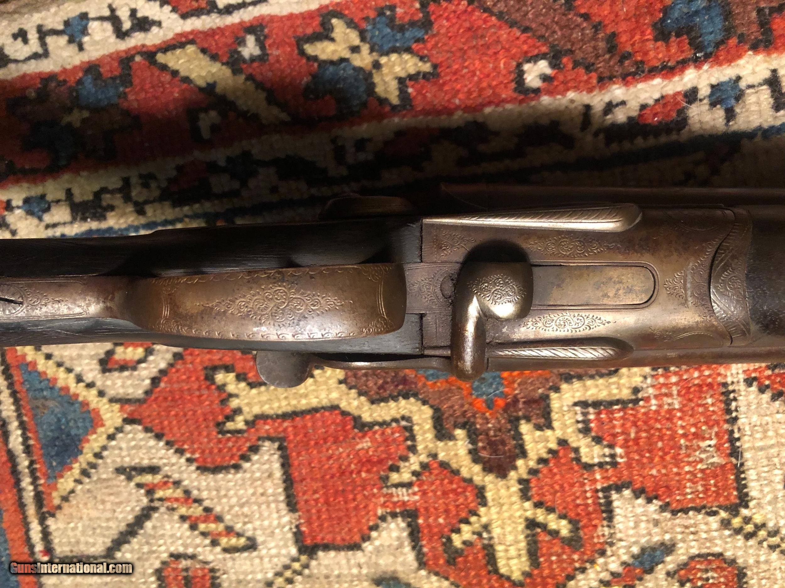 Description: Huge 10 gauge, 10.5 pounds, 30 inch barrels. In perfect shape. No pits. Nice finish. Engraved. Side lever. SOLD |