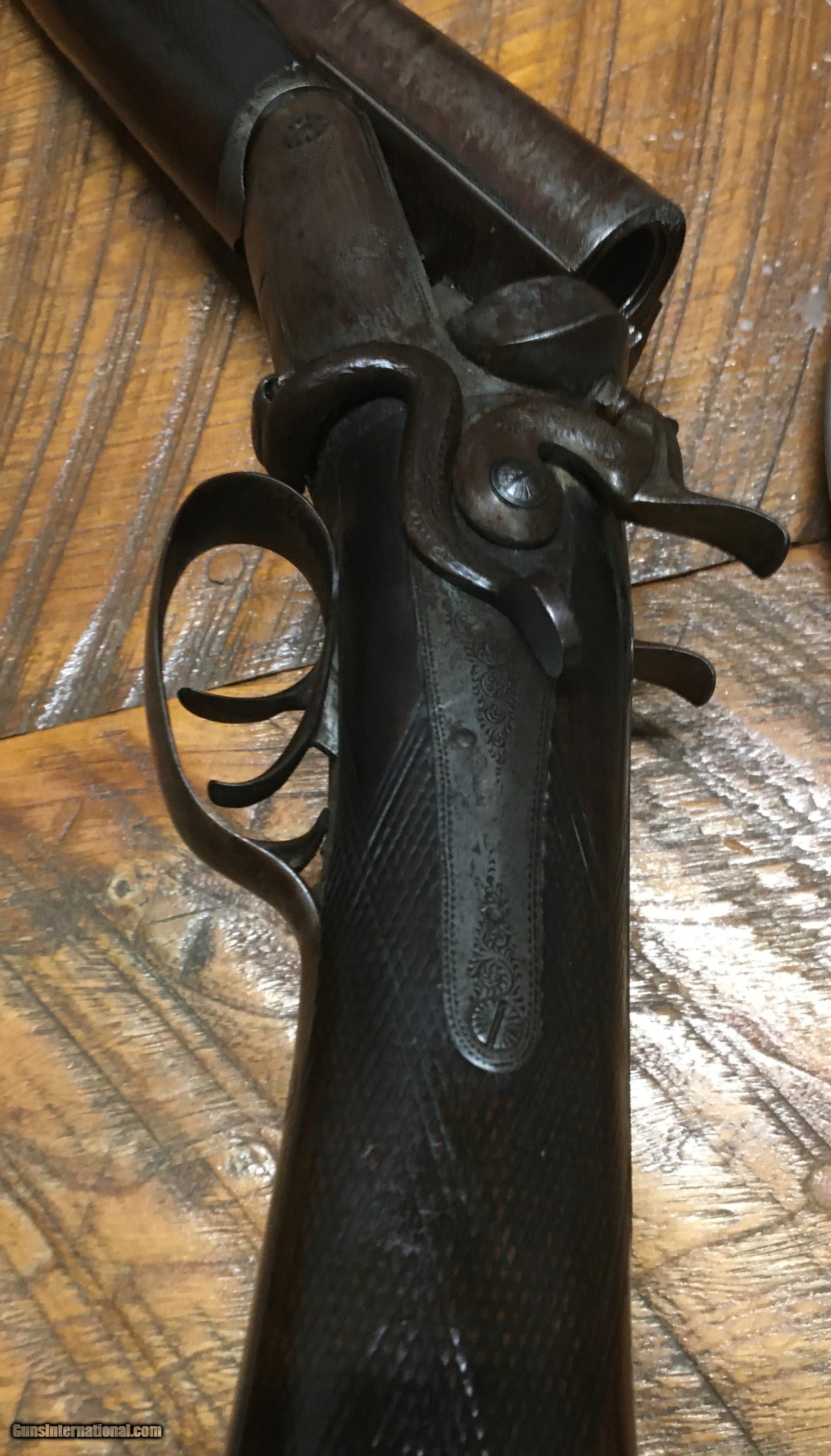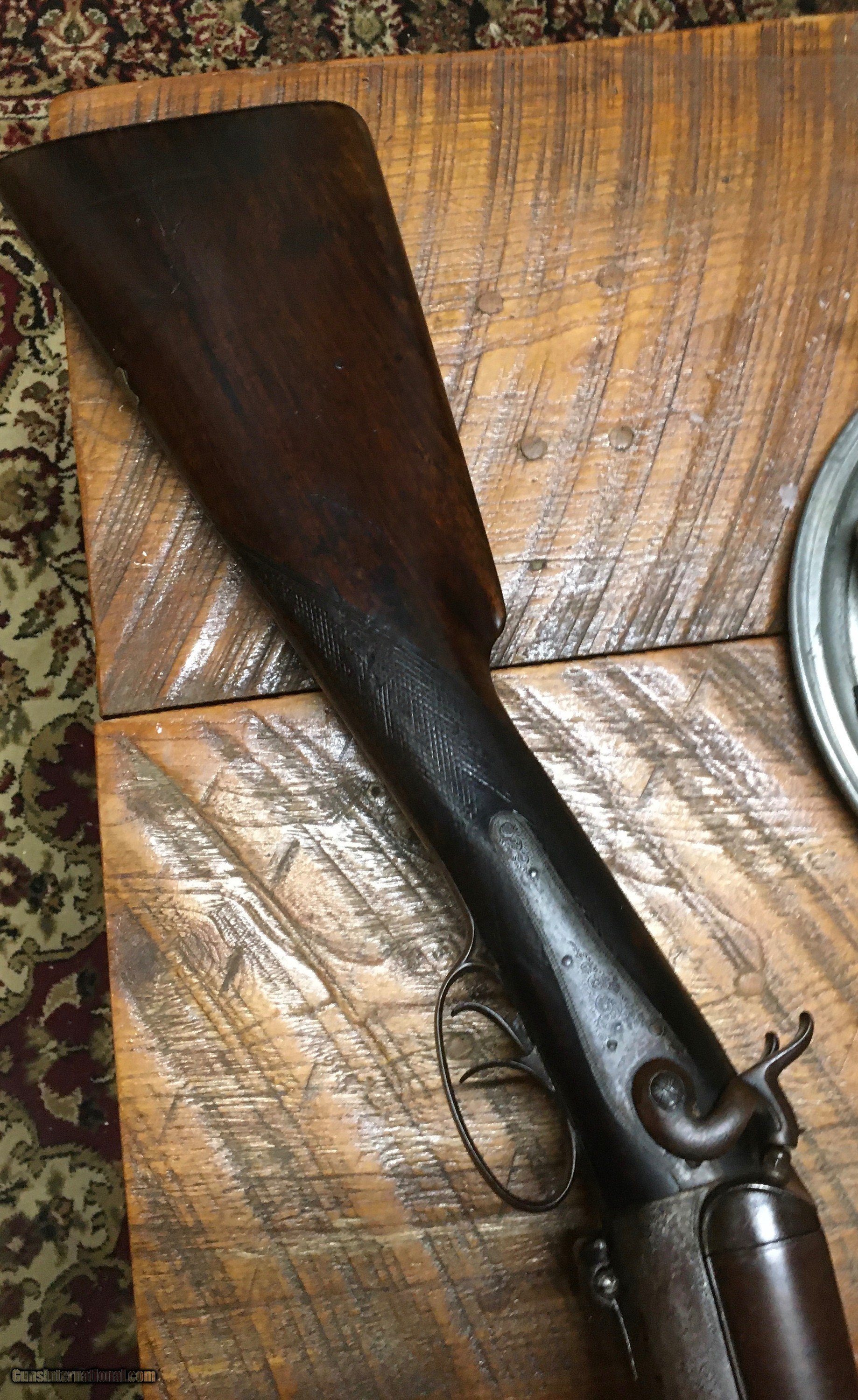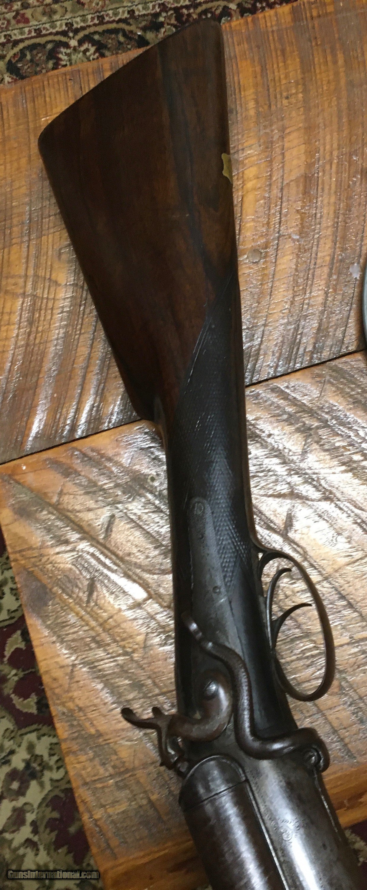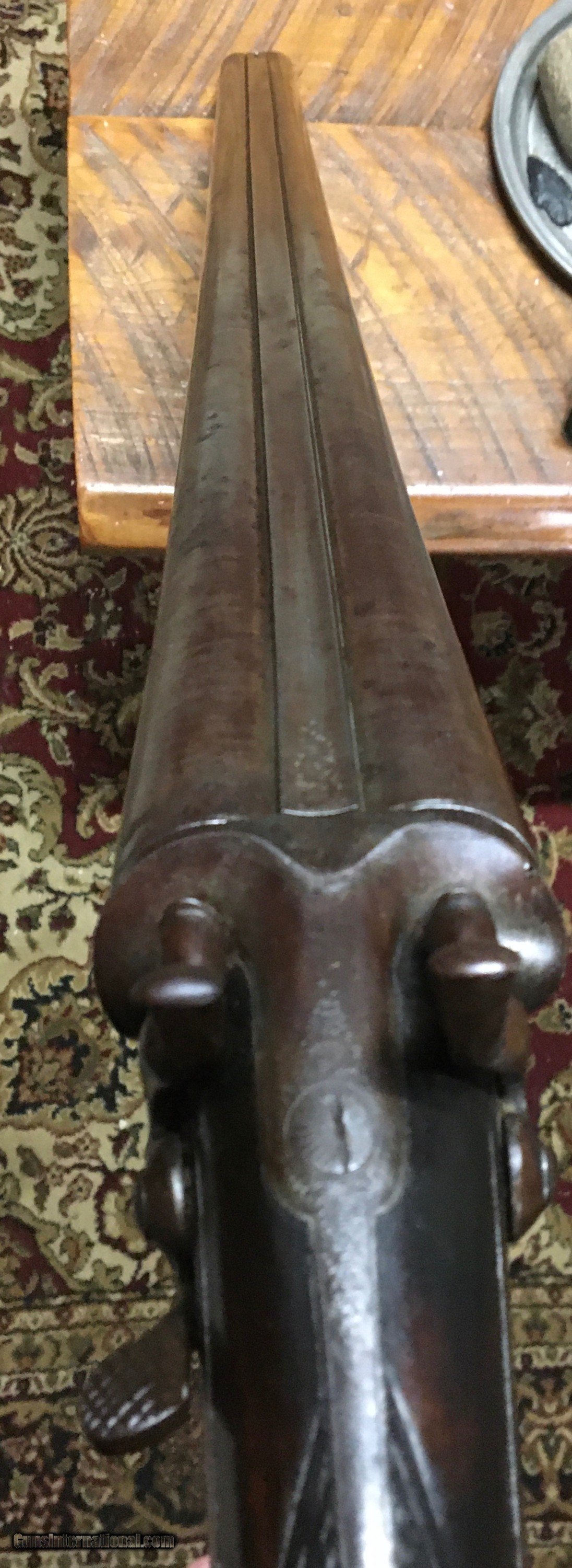 Description: A sturdy heavy extremely tight old English 10 gauge hammer gun. Boys have scattered light padding throughout. The gun features 34 inch barrels. A really cool heavy tight hammer gun. Would be great for black powder turkey hunting. No ffl.This gun is an antique will ship directly to your house. Will need proof of age. The gun shows a lot of handling marks age marks throughout. It does feature an English start. $45. Shipping in USA. SOLD Antique: Yes Shotgun Gauge: 10 Gauge Manufacturer: Wm moore Model: Sxs Condition: Good Metal Condition: Goog Wood Condition: Good Bore Condition: Good Barrel Type: London twist Triggers: 2 Stock: English stop Butt Pad: Steel Engraving: Light engraving throughout. Item Location: Wv |