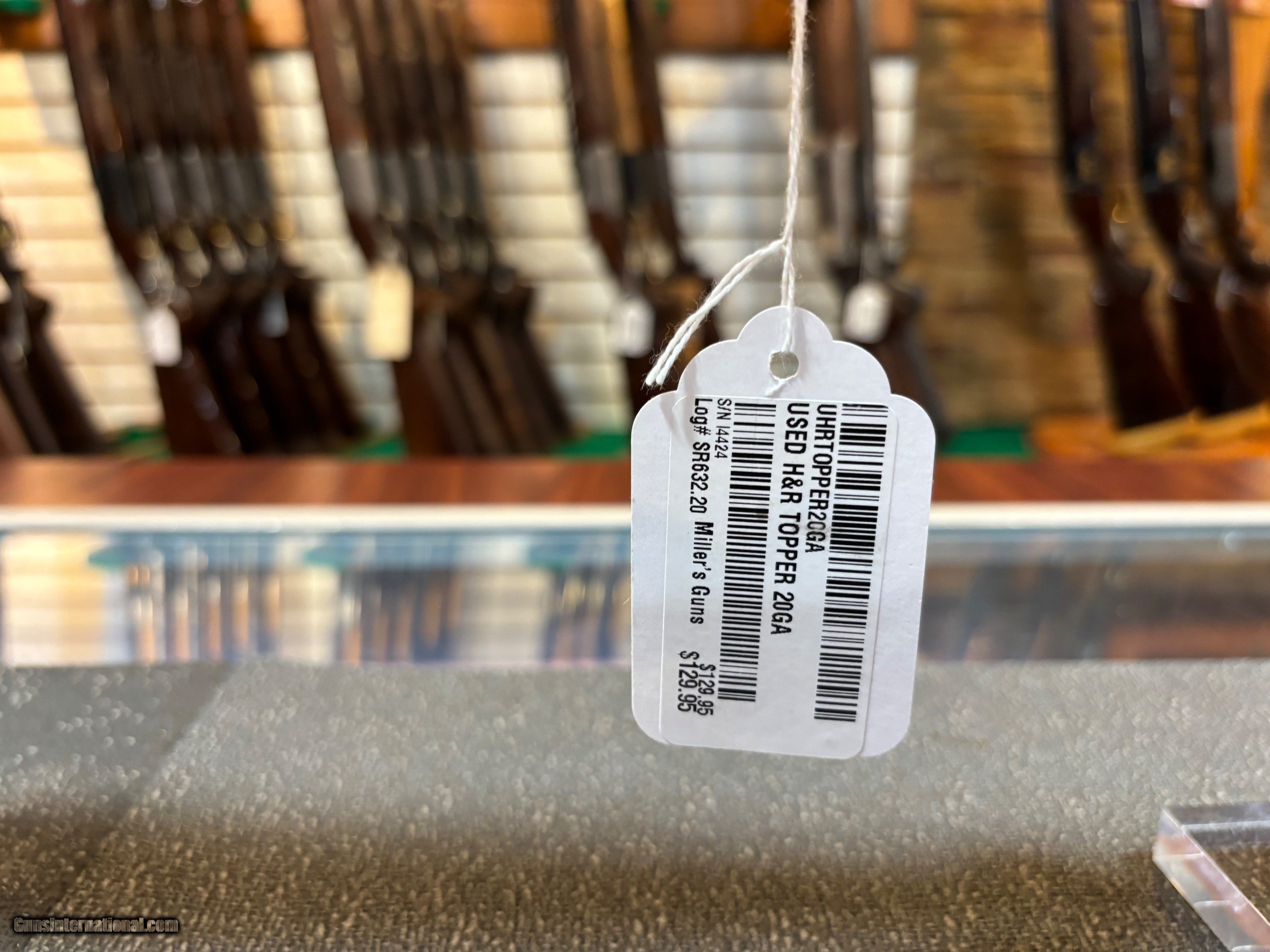 Description: H&R Topper M48 20 ga Single shot Break action 30" barrel SOLD Shotgun Gauge: 20 Gauge Manufacturer: H&R Model: Topper M48 Serial Number: I4424 Condition: Fair/Poor |
