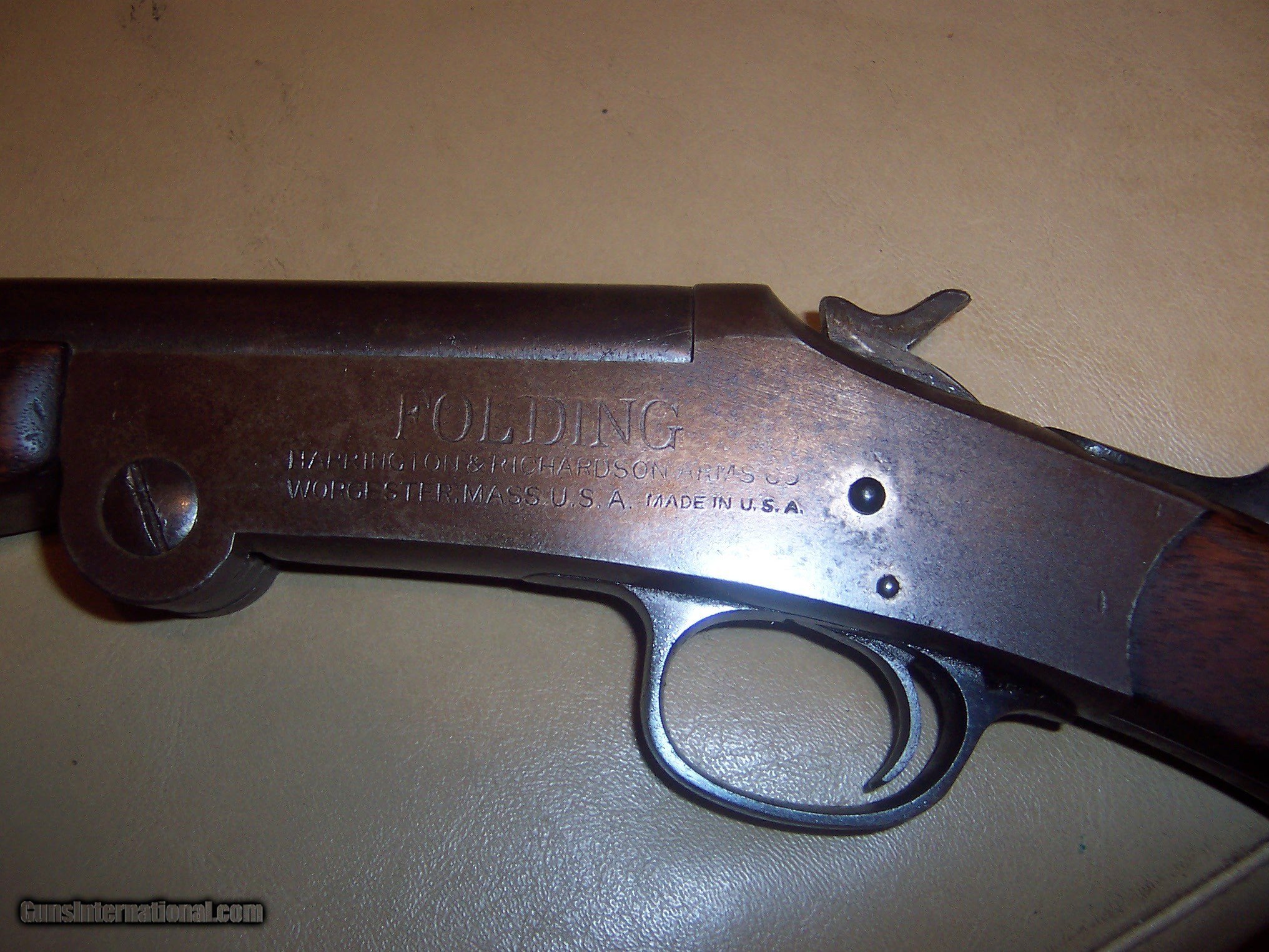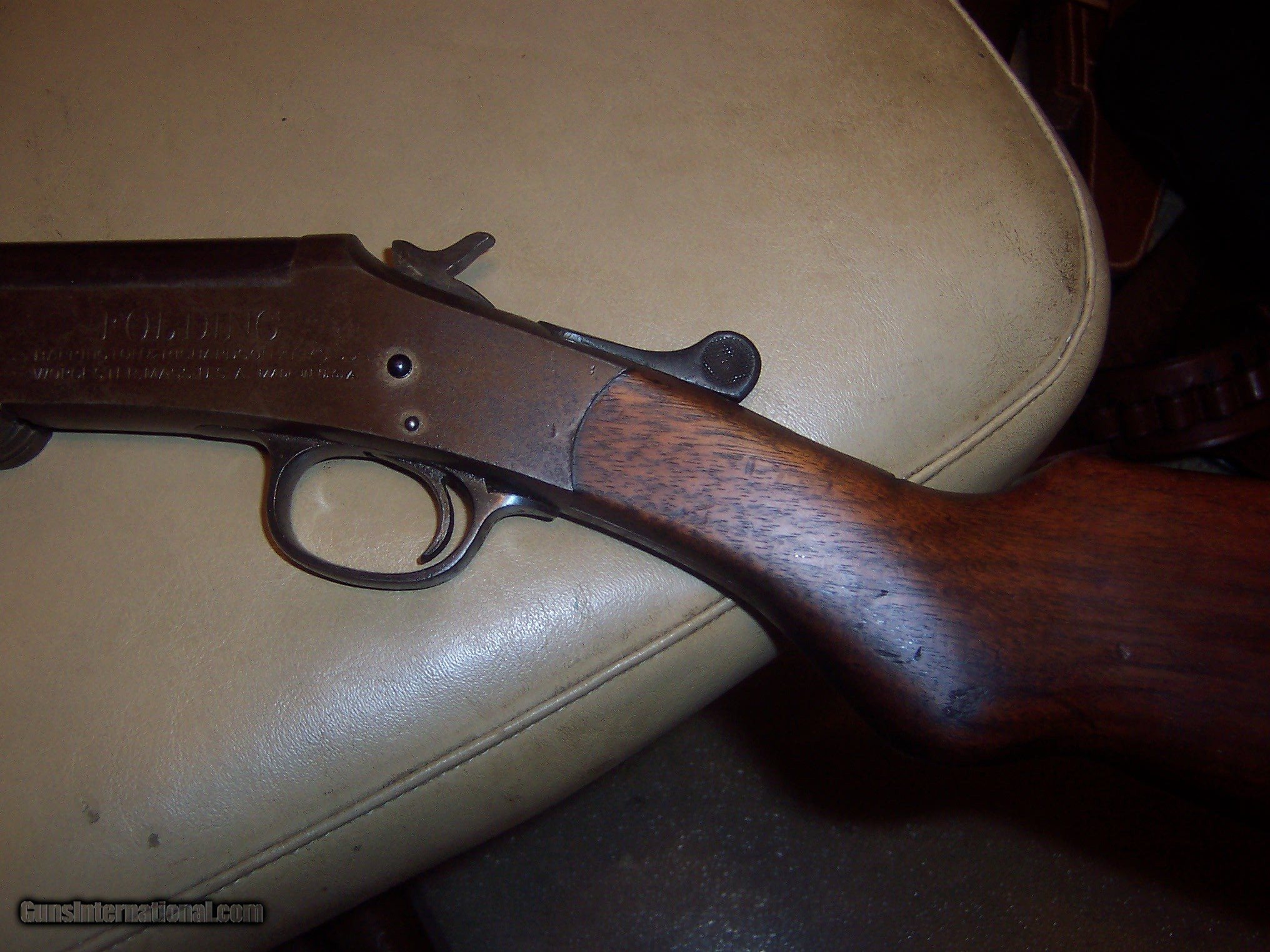 Description: gun in vg patina condition:::::: original blue under forearm , fine bore ; stock shows normal use for age no pitting on gun ,, all original parts works fine in dry fire;;;;; c&r or ffl SOLD Curio/Relic: Yes Manufacturer: harrington & richardson Model: folding Bore: fine Condition: vg Metal Condition: vg |